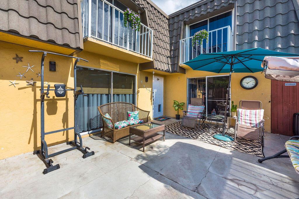 Cozy and renovated townhouse with private courtyard! Open floor plan with granite countertops in the kitchen, tile and laminate floors, and freshly painted walls. Upstairs, spacious bedrooms with balconies. Roof replaced in 2022, and a brand new fence is coming soon! New AC, new waterheater and new appliences! Includes two storage units and two assigned parking spaces. Pet-friendly community near highways, beaches, dining, and shopping. Great schools and no leasing first 2 years. Don't miss this gem!