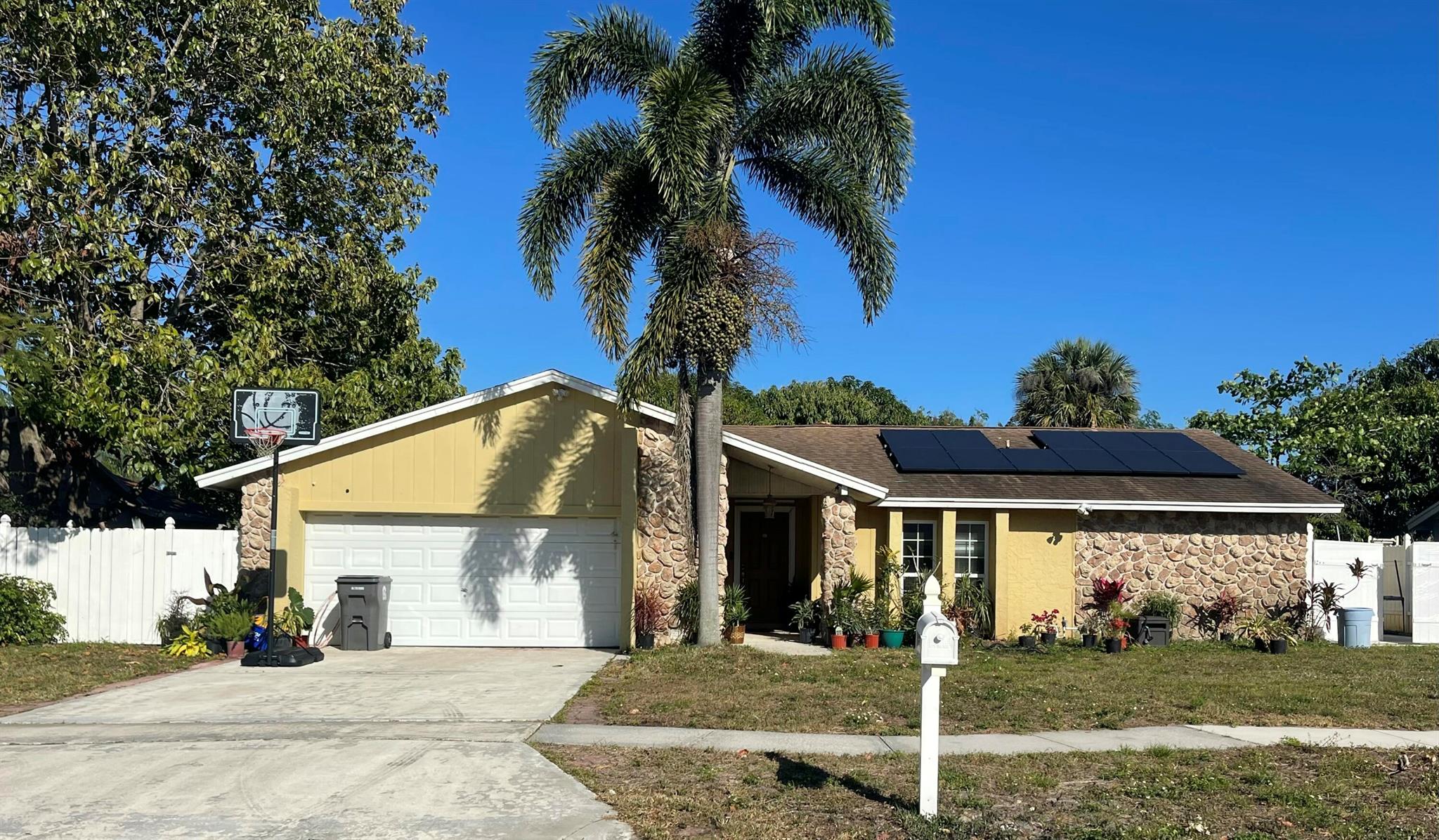 You'll appreciate the convenience of this prime location. It's just a short drive to major highways like the Florida Turnpike, making commutes a breeze. For travelers, Palm Beach International Airport (PBI) is approximately 7 miles away. Enjoy easy access to an abundance of shopping, dining, and entertainment options within a 4-mile radius, including popular centers like the Palm Beach Outlets. This home offers the perfect blend of suburban tranquility and urban accessibility.charming 3-bedroom, 2.5 -bath home in West Palm Beach offers comfortable living with NO HOA! Enjoy a private inground pool and a screened patio perfect for outdoor entertaining. Thanks to the existing solar panels, your electricity bills are already lower, helping you save money each month.