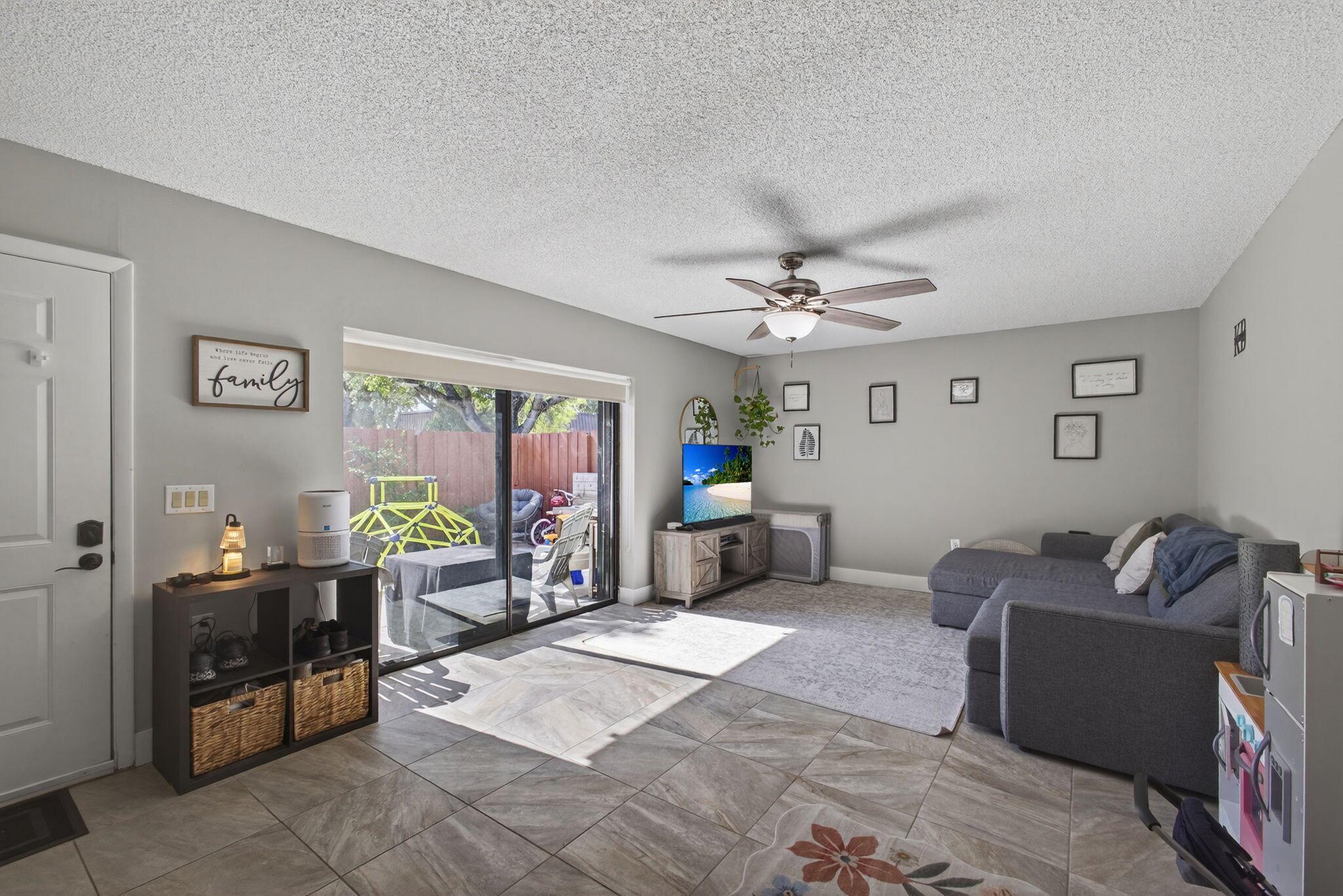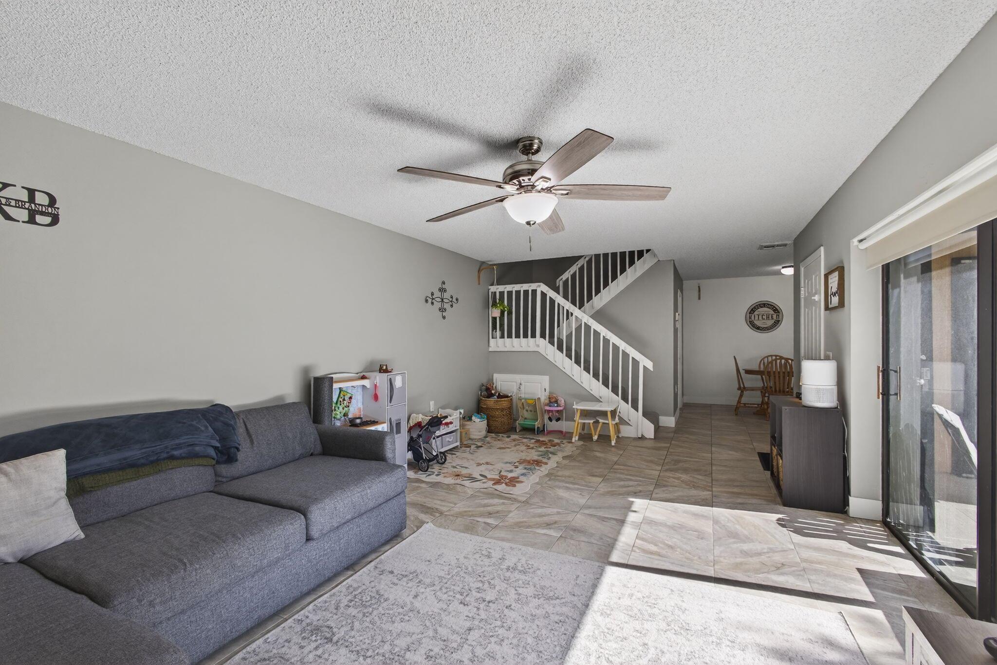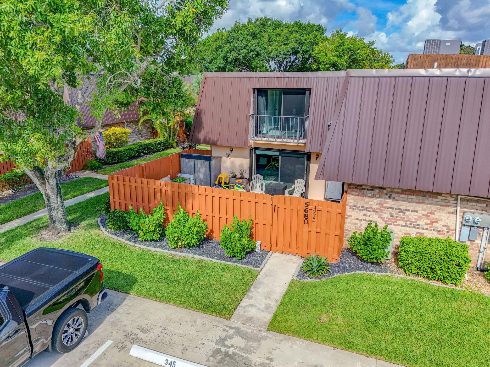 Welcome to 5680 SE Windsong Ln #345, a beautifully maintained 2-bedroom, 2-bath townhome offering 1,288 sq ft of stylish living space in the gated community of Emerald Lakes. This home features a private fenced courtyard, perfect for outdoor dining, entertaining, or play.Step inside to find a light and bright open-concept living and dining area with neutral tile flooring, fresh paint, and sliding glass doors that fill the home with natural light. The kitchen offers ample cabinet space, a breakfast nook, and a pass-through to the living area. A convenient indoor laundry room is located off the downstairs half bath.Upstairs, both spacious bedrooms feature sliding doors to private balconies, offering peaceful views and fresh air. The primary suite includes dual closets and access