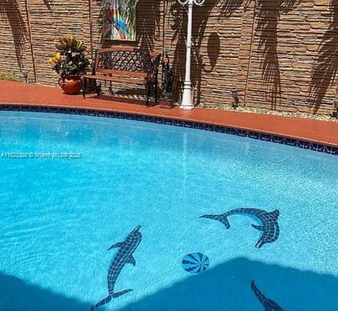 This beautifully well maintained 4-beds, 4-baths home in Miami, 2,826 sqft of living space, featuring wood flooring upstairs, matching custom kitchen cabinets & porcelain finishes throughout. New fridge & stove (2024), complemented by a washer & dryer also updated in 2024. The home includes custom made doors in all the property, including French doors, walk-in closets with cedar wood in the master bed, & two attics, 1 in the garage & another in the master bedroom. Includes a dual-sink bath, a garage with an extra closet, & a backyard oasis featuring a pool with a waterfall, jacuzzi, BBQ area, & wall fence for added privacy. Equipped with shutters & a 2021 AC system, room with full bath & walking closet, home office, utility closet in the garage, wall throughout the property, gate entrance