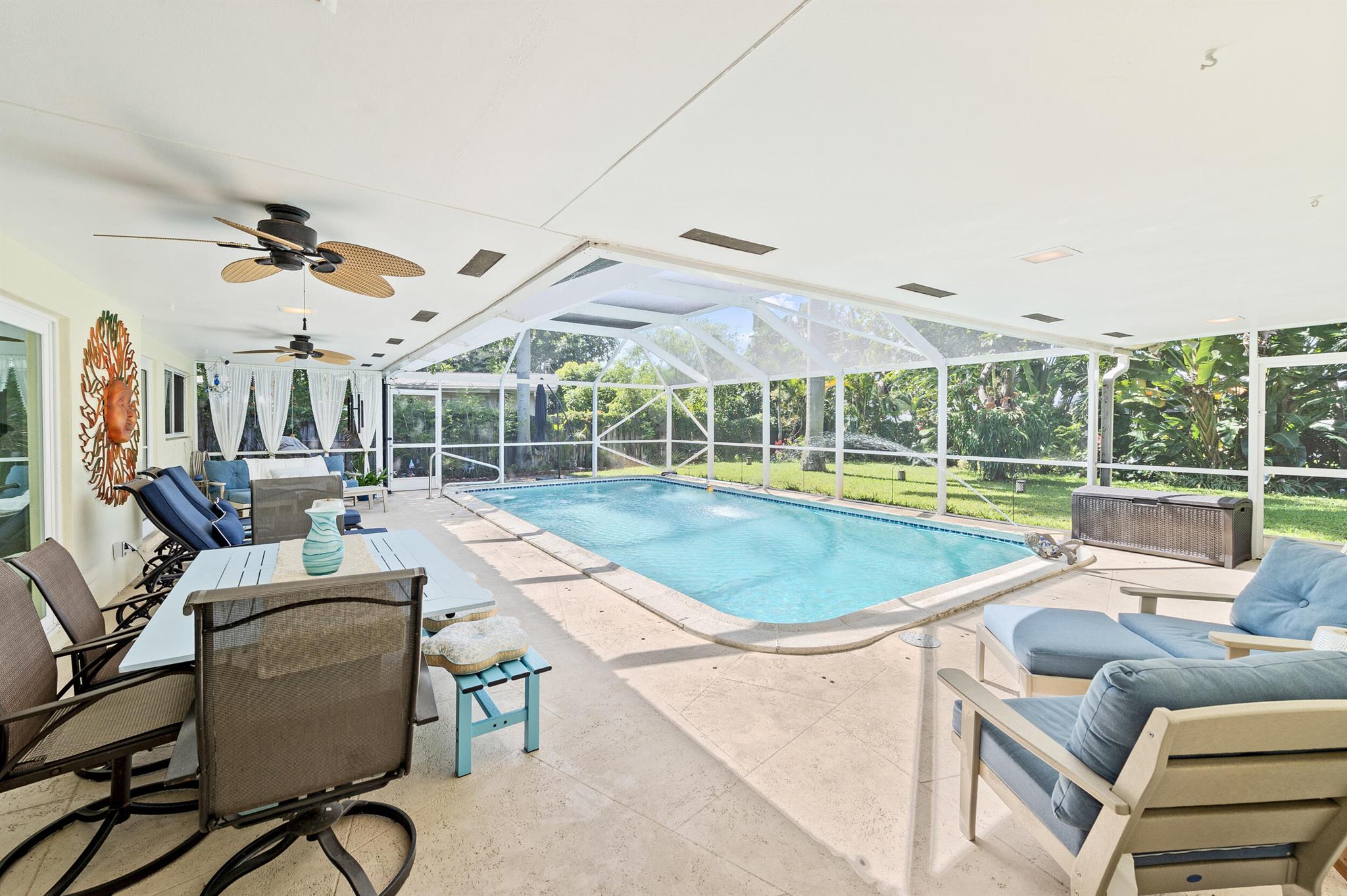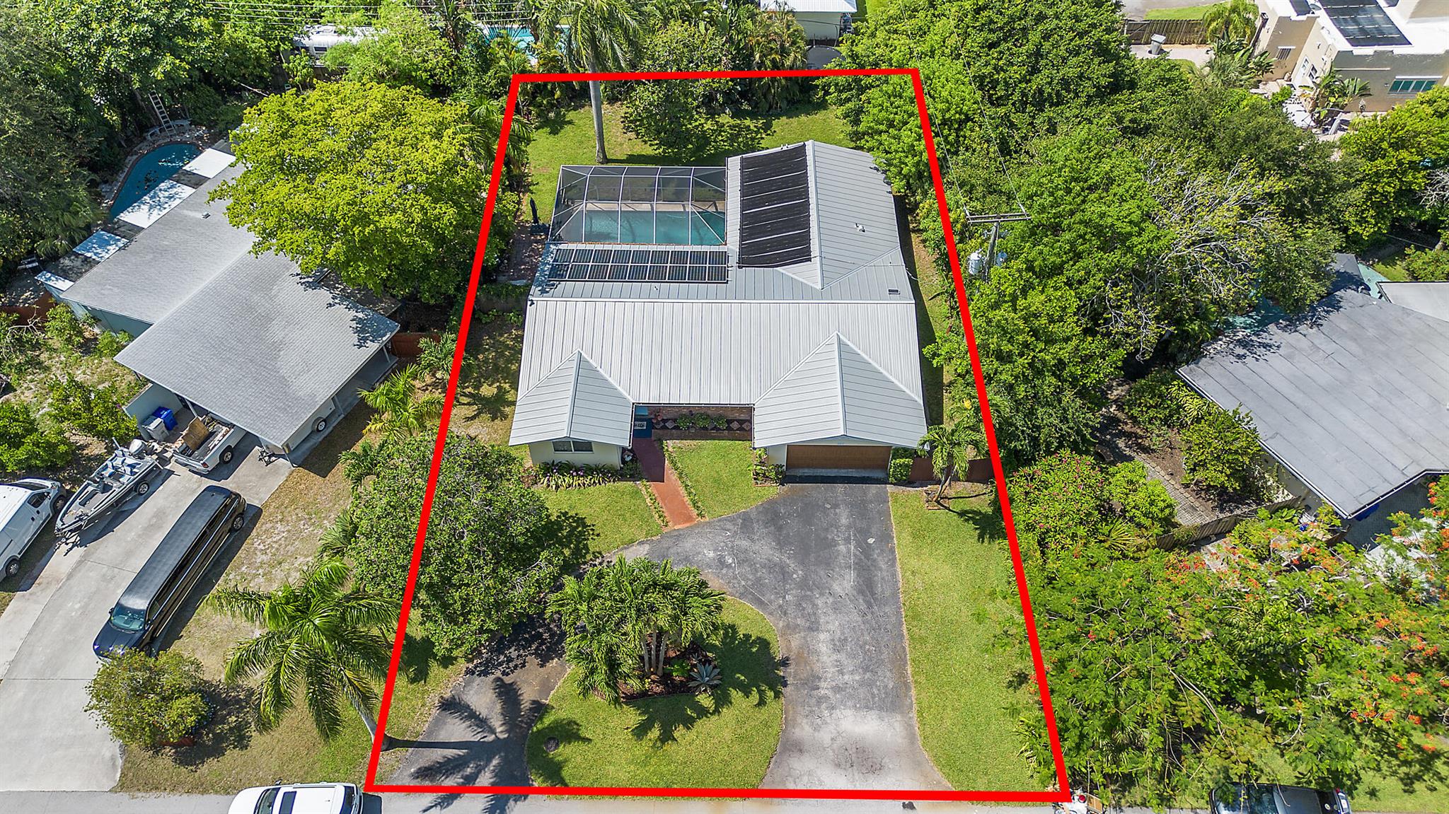 Discover this gem in the heart of Old Pompano, nestled in a beautiful neighborhood with no HOA! This Home features a new standing seam metal roof, impact windows and doors, and solar electric for energy efficiency. Enjoy year-round fun in the saltwater pool, complete with a solar pool heater and a new screened enclosure (2021).The spacious driveway and large backyard are ideal for entertaining, and you'll love the mature avocado and mango trees. Additional upgrades include attic insulation (30''), front and rear landscape lighting (2022), a whole-house water filtration system, and a reverse osmosis system --both with a 25-year lifespan. The home is also freshly painted and located in a no flood zone for added peace of mind.Perfectly situated near beach