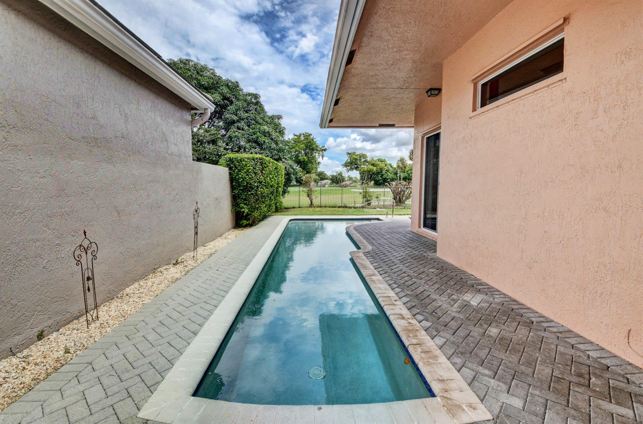 Sparkling clean in central Boca don't miss this move-in-ready, 1-story, POOL home with volume ceilings and neutral tile throughout. 3 bedrooms, 2.5 bathrooms, and a 2-car, side-load garage with paver driveway. NEW 2025 Roof! The fenced yard has fresh sod, tranquil golf views, and a paver pool deck. The kitchen features granite counters, 42'' cabinets & stainless-steel appliances (brand new refrigerator). Convenient for commuters: 5-minutes to the turnpike, 15 minutes to I95. Boca Raton's best shopping, dining, entertainment, beaches, and parks are all a short drive from this fabulous home. A-rated schools and premium medical facilities are also nearby. Oxford Estates is a gated community featuring a lakeside clubhouse, fitness center & community pool.