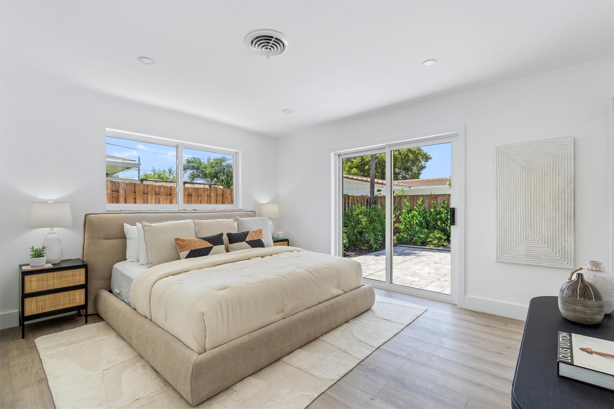 A thoughtfully renovated mid-century modern home with a bright, breezy South Florida aesthetic. This stunning property offers exceptional curb appeal and a professionally designed interior. The spacious, open-concept kitchen was expanded to include a large island and custom cabinetry—ideal for entertaining. Beautiful new impact sliding doors lead to a generous back patio and landscaped yard. Enjoy peace of mind with a new roof, new A/C systems, and all-new impact windows and doors. Every inch of this home has been carefully reimagined for comfort, style, and everyday living. Highly Rated Public & Private Schools - Minutes To Restaurants, Beach, Shopping, & Hospitals.