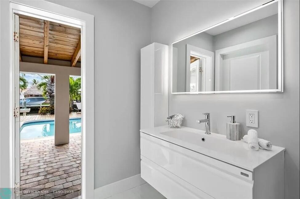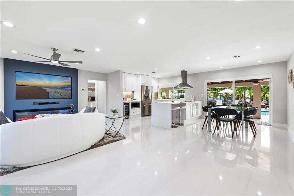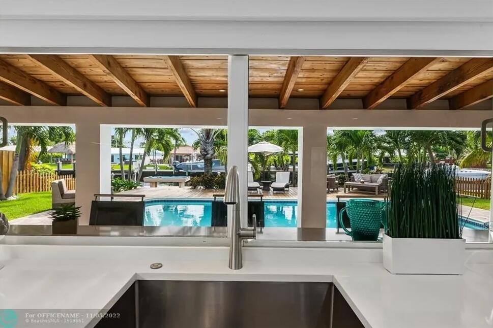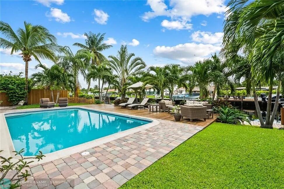 ACCEPTING ONE FORMAL BACKUP! Incredible island location on a private cul-de-sac just off Lake Santa Barbara, 15 min to Hillsboro Inlet! This beautifully remodeled 3BR/2.5BA Cypress Island home offers a split floor plan, 2-car garage, circular paver drive, and southern exposure. Features include impact windows/doors, light and airy flow with Southern exposure. 30x60 white porcelain flooring, striking fireplace wall, open kitchen w/ LG appliances & breakfast bar. Two spacious primary suites with walk-in closets overlook the updated pool and cabana bath, featuring a wood-detailed lanai. All baths updated. 3rd bedroom office or gym, new AC ducts, plumbing, Washer/dryer. Huge deck & 60FT dock. 5 min to beach & dining! Incredible 5 minutes from it all! Pomano Beach offers all-new infrastructure