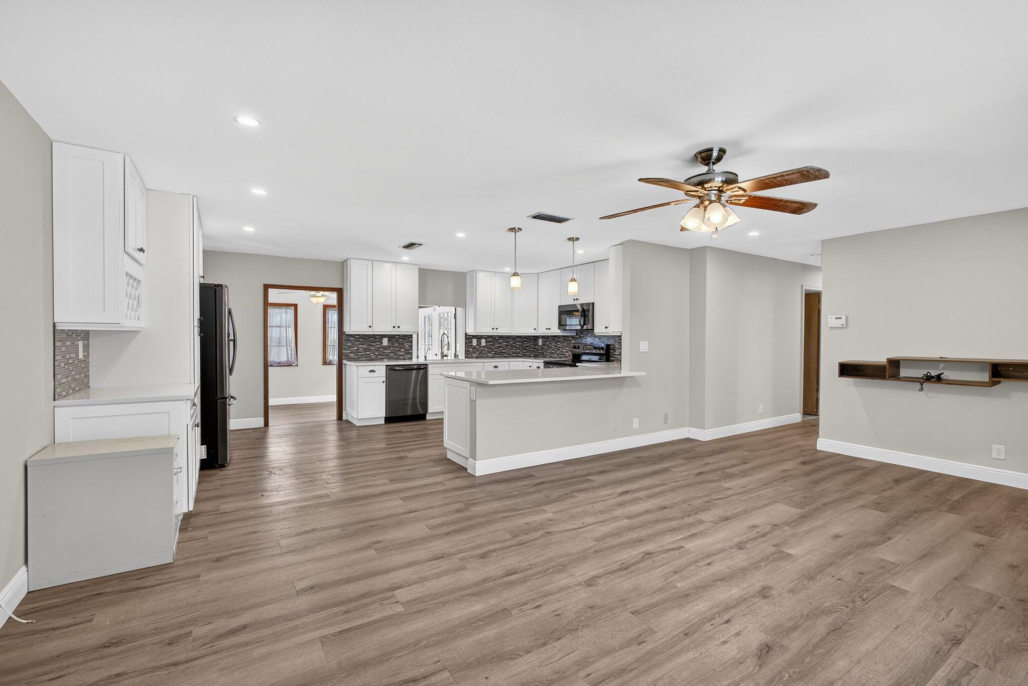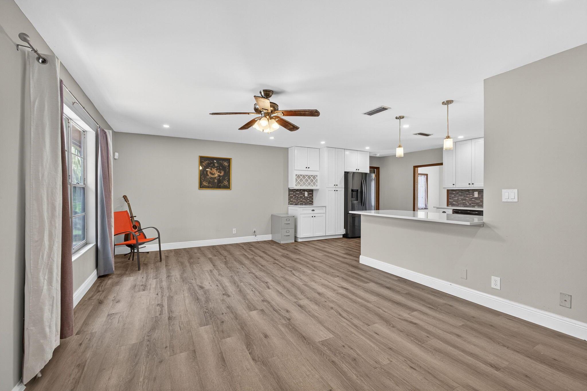 Welcome to this beautifully remodeled 3-bedroom, 2-bathroom home that blends modern design with comfort and functionality. The spacious open kitchen is a showstopper, featuring sleek quartz countertops and a layout perfect for both everyday living and entertaining. Both bathrooms have been thoughtfully updated with stylish finishes, creating a fresh, spa-like feel. Enjoy peace of mind with a brand new 2024 roof, a 2019 AC, whole-house osmosis system, and a tankless water heater installed in 2025. Step outside to your expansive property, unwind by the tranquil pond, or entertain in the gazebo--complete with power for a TV and fridge. The home also includes a 1-car garage and room for your boat, RV and more. This one is truly move-in ready--schedule your tour today!