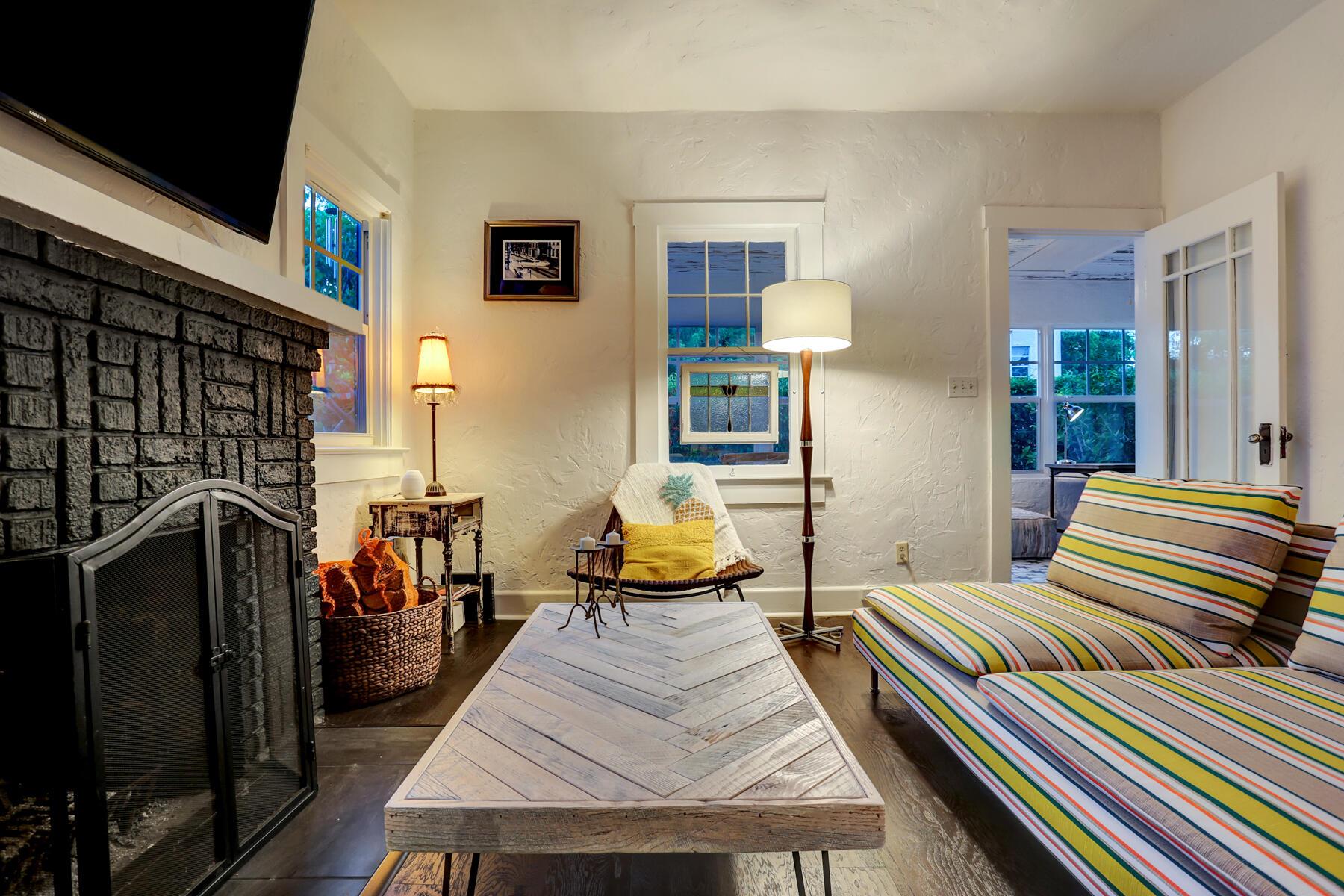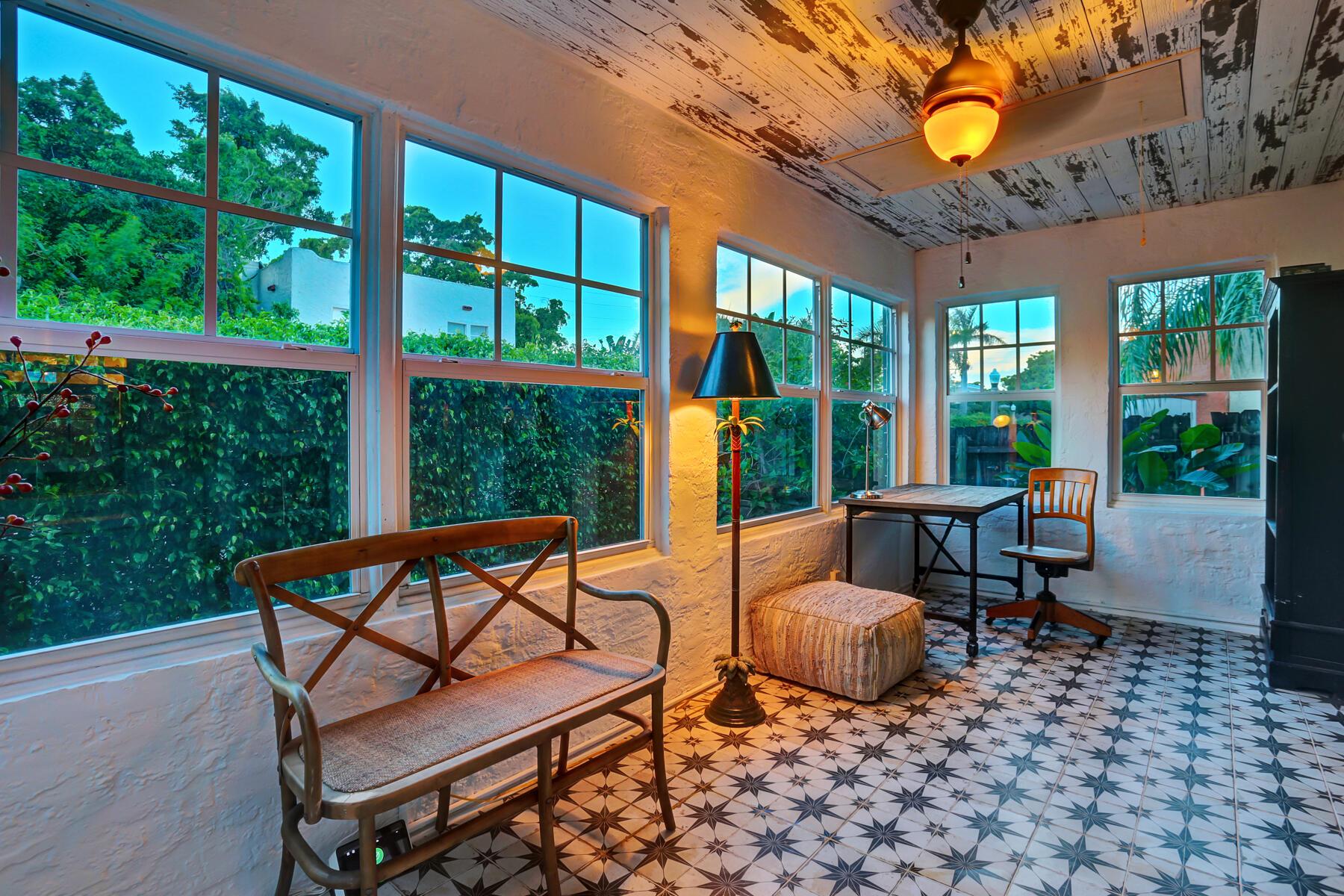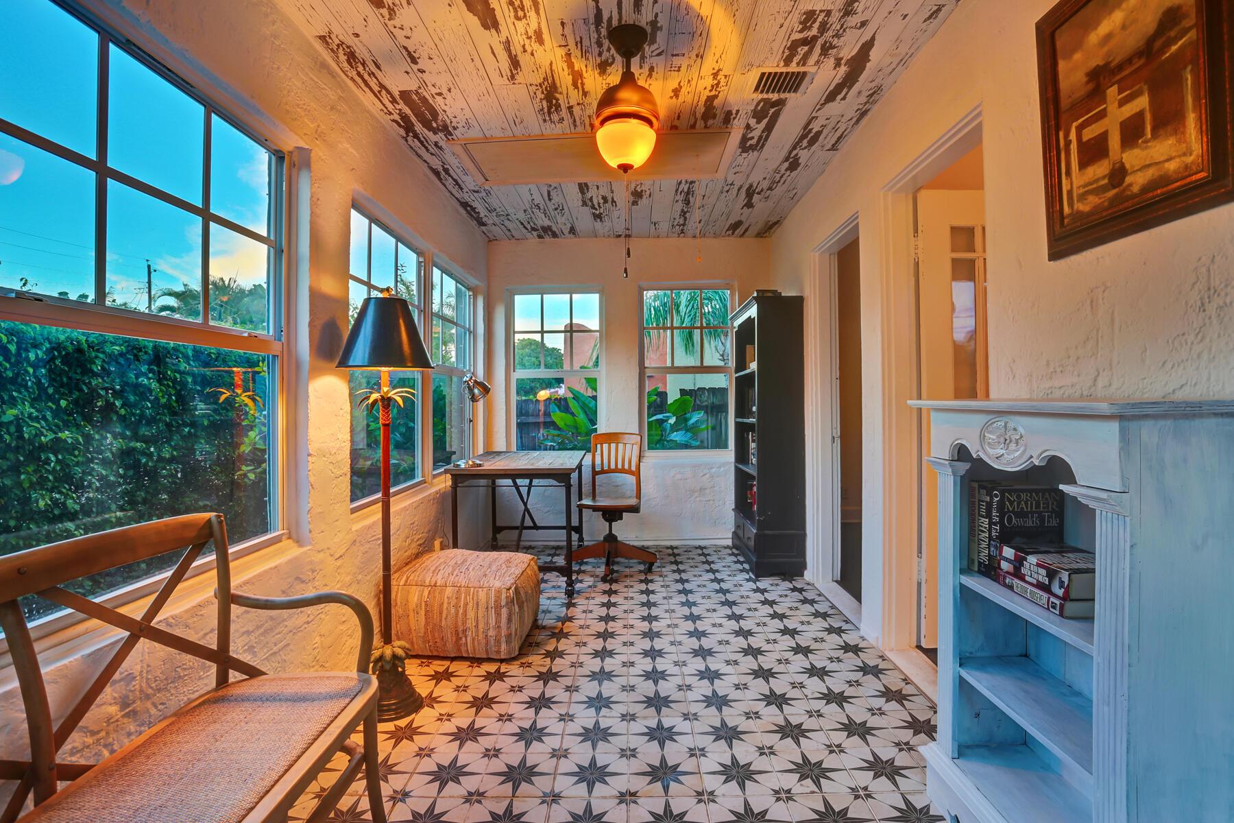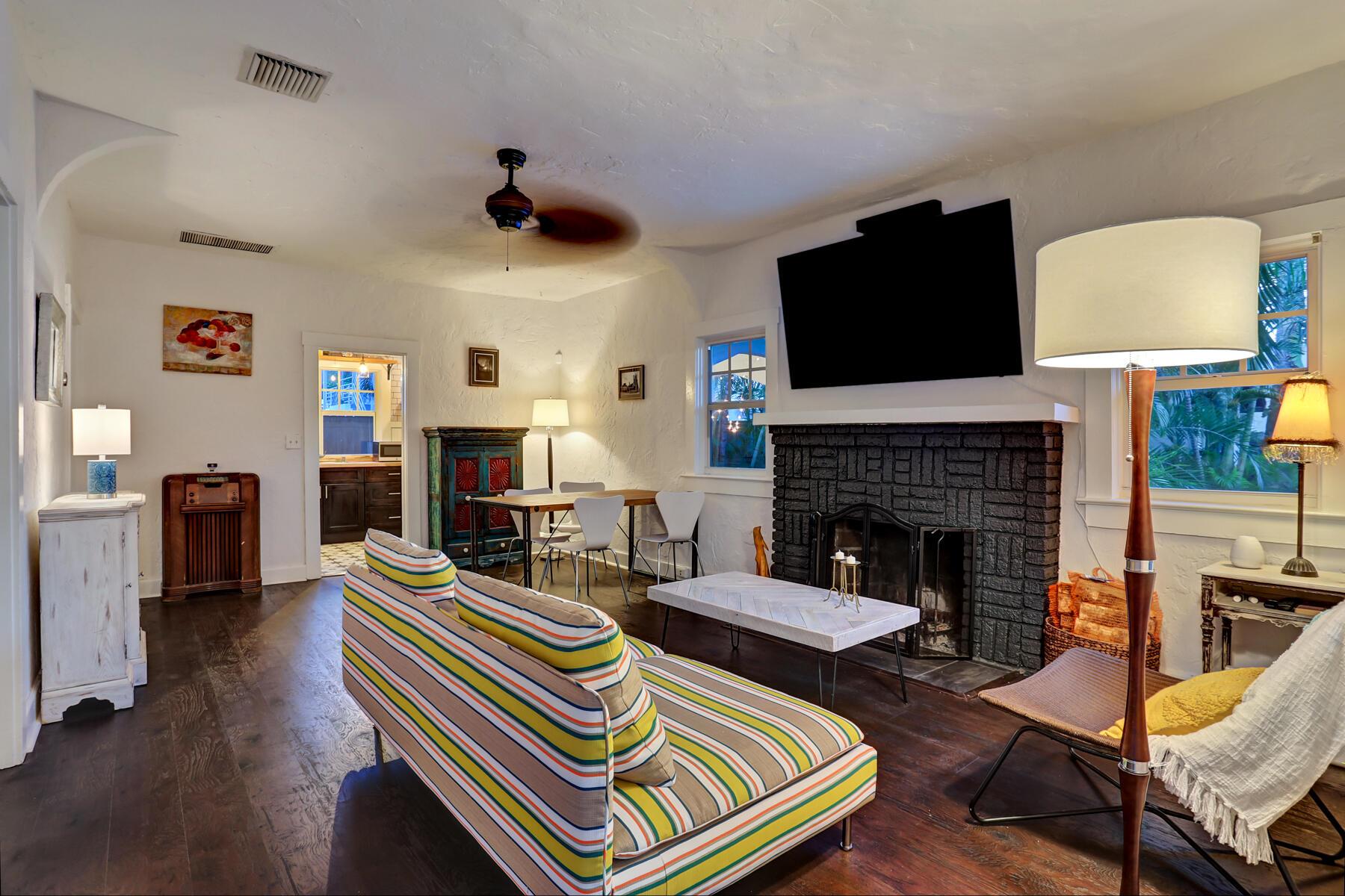Ideal INVESTMENT opportunity to Scoop Up this Enchantingly Renovated Two Bedroom, One Bath 1926 Spanish Mission Style charmer with detached garage in the desirable Central Park South, West Palm Beach neighborhood! Looking for a stellar income producing rental property or charming Florida retreat to call your own? This is it! Boasting 9-ft ceilings in the main living areas, a prominent brick wood-burning fireplace, spacious and bright Florida Room and updated dark luxury vinyl wood-like flooring. Bathroom beautifully renovated with subway tiles, a walk-in shower and classical console bathroom sink. Newer stainless steel appliances in kitchen with soft-close dark wood cabinetry and subway tiles. Roof in 2020 with hurricane strappings, AC 2021, (more)