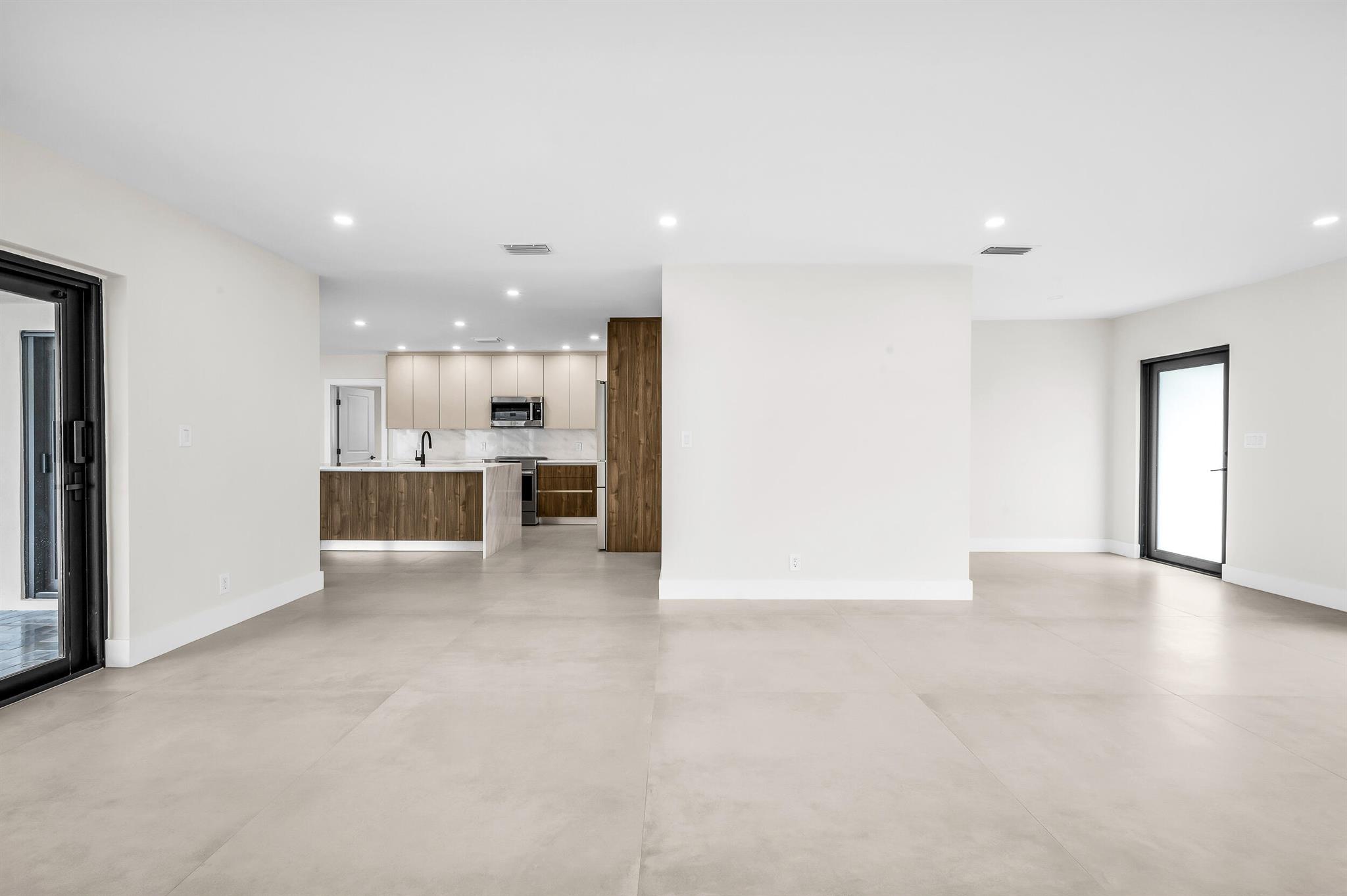BRAND NEW and Completely Renovated, Never Lived In this stunning home in the desirable East Boca Raton community of Boca Square. This fully upgraded three bedroom, two full bathroom residence boasts 2,602 total square feet. An abundance of natural light flows through this open floor plan. The entire home has been upgraded. Brand new roof, new hurricane impact windows and doors throughout, new air conditioning with brand new AC ducts throughout, new PVC drainage (No Cast Iron), new insulated hot and cold water lines, new electrical throughout, new sod and irrigation system. Upgraded Porcelain 48X48 tile floors throughout, brand new Italian kitchen cabinetry with new Bosch kitchen appliances and match booked marble stone countertops with a large kitchen island with waterfall edge. All