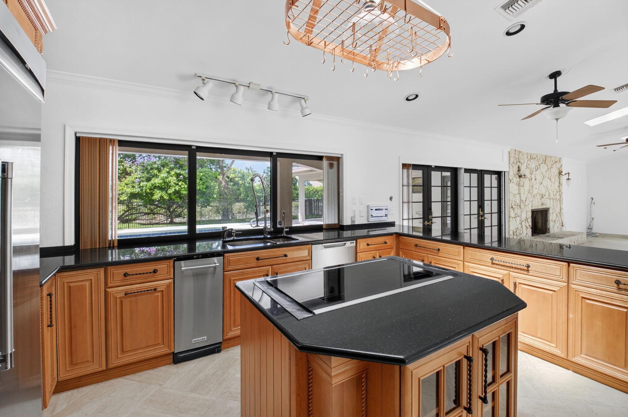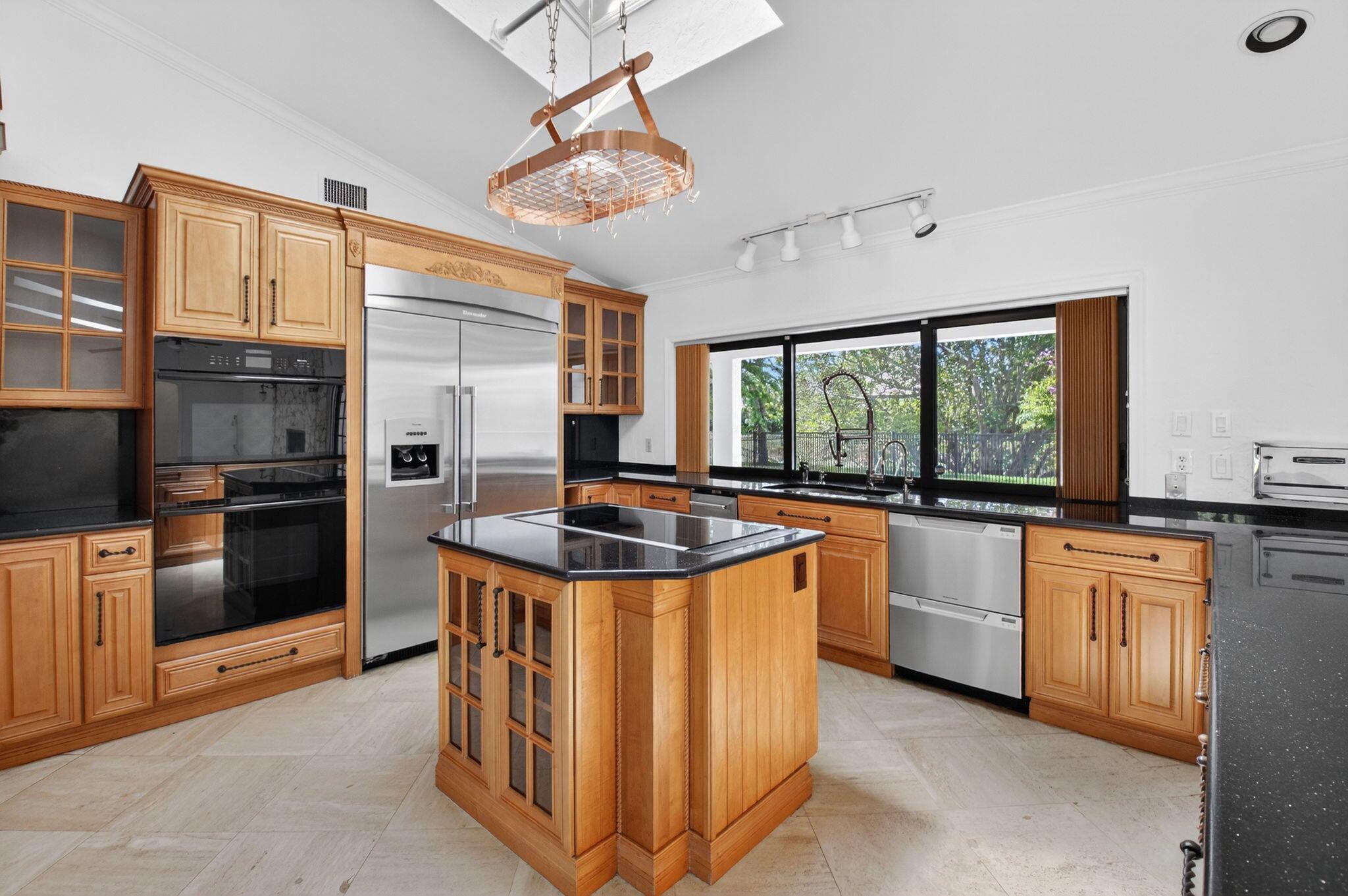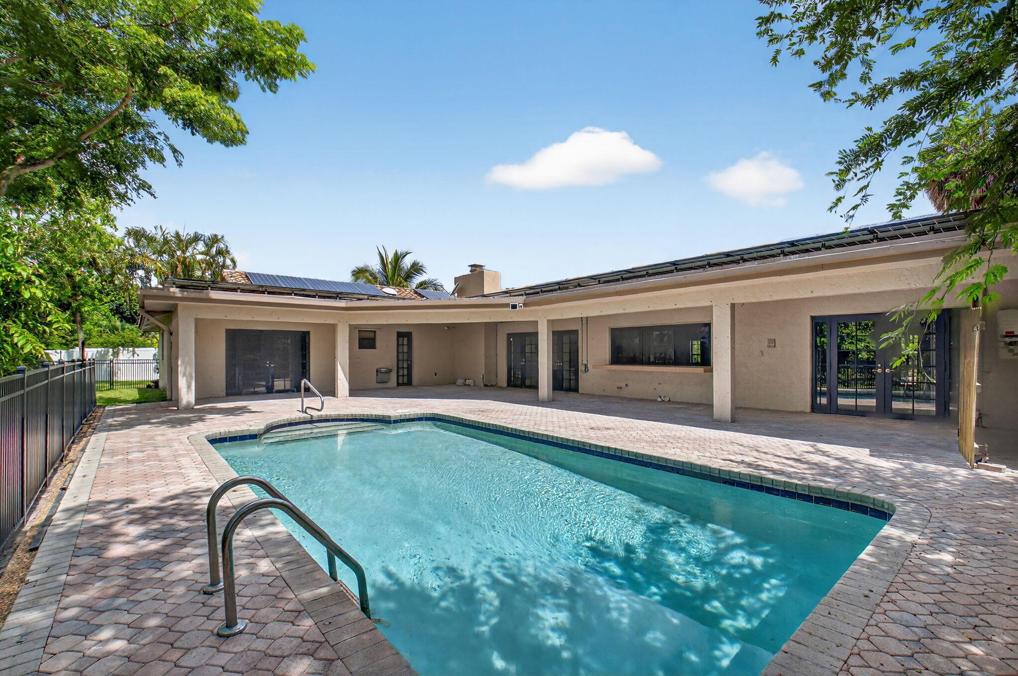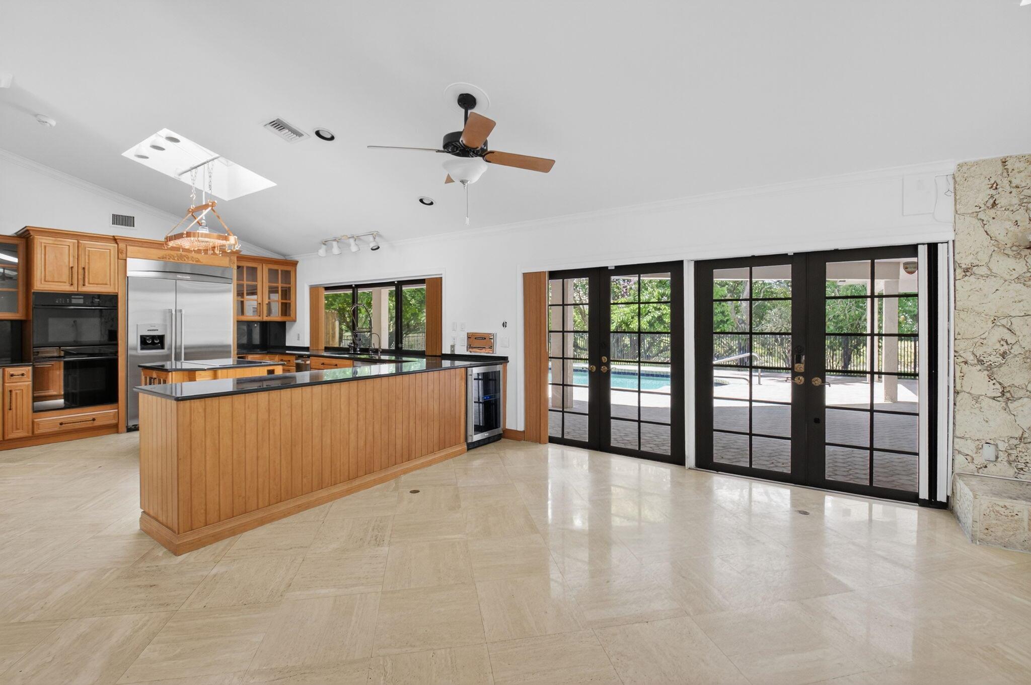 Spacious and updated 5-bedroom, 4-bathroom home located in highly desirable Estancia West. Situated on a private lot over 1/3 acre, this property features an open floor plan with high ceilings, abundant natural light, and skylights throughout. The split layout includes a large primary suite on one side and four additional bedrooms with three full bathrooms on the other. Gourmet kitchen includes luxury appliances: built-in Thermador refrigerator, Thermador double ovens, and Fisher & Paykel double dishwasher. The home also offers over 700 sq ft of covered patio space, a private pool, and a large backyard -- perfect for entertaining or relaxing. Additional features include: Full impact glass and doors, a Whole-house generator and A Full solar panel system. Located within walking distance to