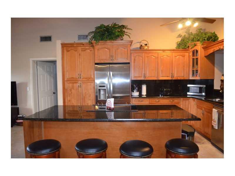 Huge freeform pool, accordion hurricane shutters, stone fireplace, wood beamed ceiling in social areas, open floor plan all featured in this updated one story. Neutral paint, neutral tiled social areas, carpeted bedrms. Kitchen w/raised cabinet drs, SS ap pl, granite counters & backsplash, center island with stove top. Huge family rm w/French doors, formal LR & DR. Master w/adj bath. Large private lot. New A/C 2014.