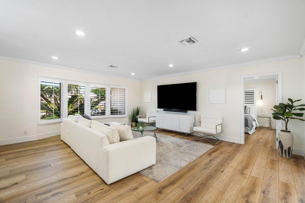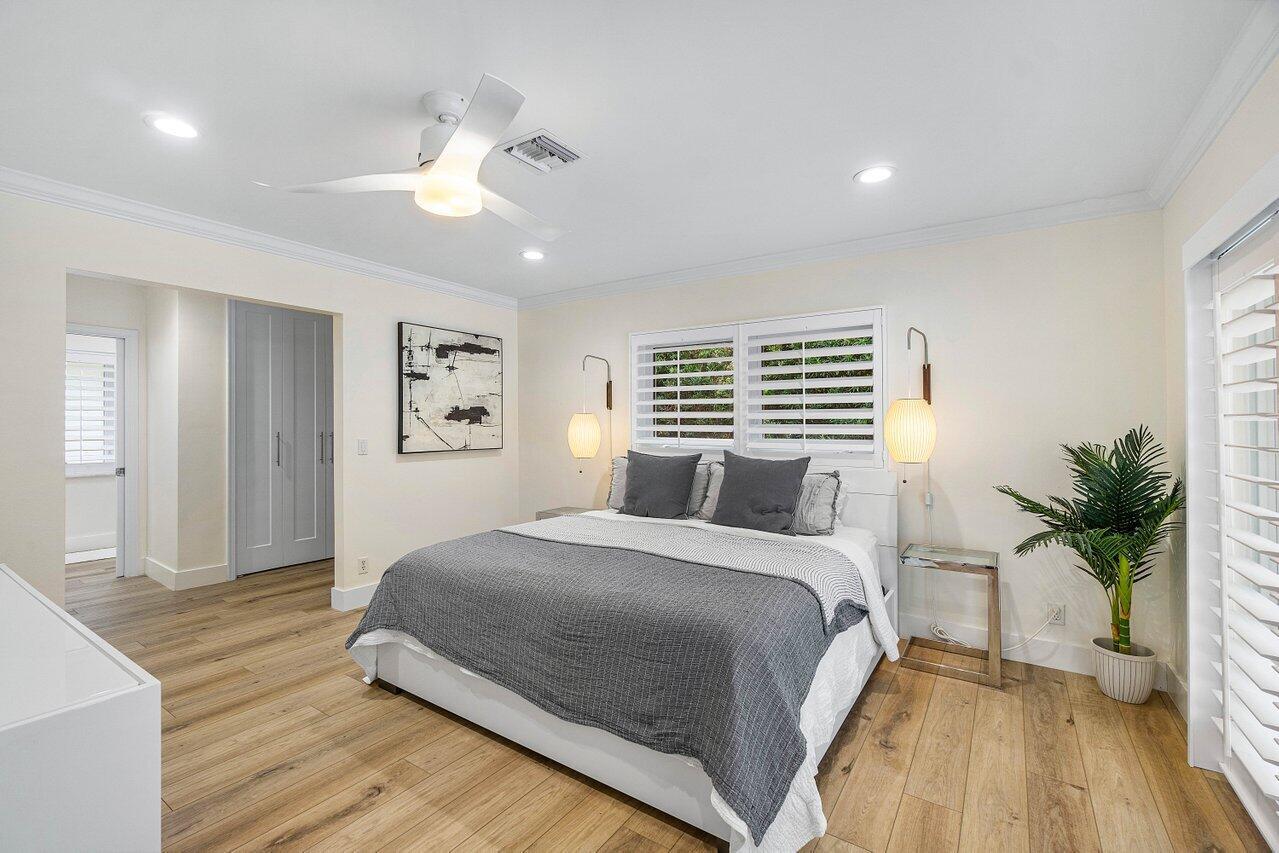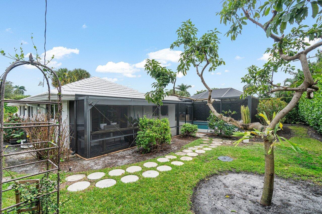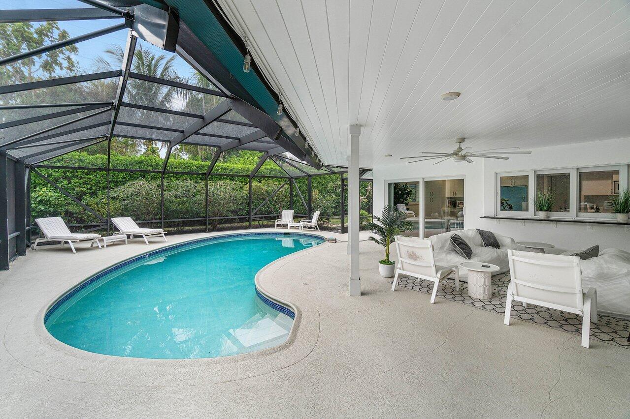 Welcome to this beautifully renovated mid-century modern gem, nestled in the highly sought-after Camino Gardens community of East Boca Raton. Thoughtfully designed and impeccably maintained, this home features a desirable split-bedroom floor plan and offers the perfect blend of timeless character and modern elegance. The light-filled interior includes a spacious great room, formal dining area, cozy breakfast nook, and an interior utility room equipped with a premium Asko washer and dryer. The chef's kitchen is a true showpiece, featuring white quartz countertops, Big Chill appliances including an induction cooktop, custom cabinetry, a sleek glass backsplash, and designer lighting that adds both function and flair. Peace of mind comes standard with full HURRICANE protection, including