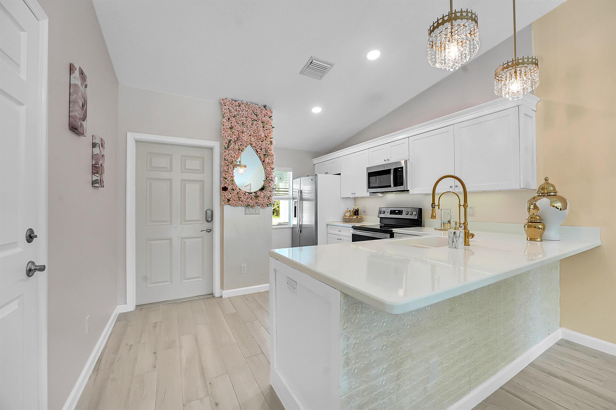 Well-maintained and move-in ready 3-bedroom, 2-bath home with 1-car garage in desirable South Stuart, just minutes from the water, US1, shopping, and dining. Built only a few years ago with impact windows for storm protection and low homeowners' insurance.Features include an open floor plan, light-filled living space, and a stylish kitchen with stainless steel appliances, updated faucets, countertops, and updated gold fixtures. Skylight in bathroom and updated fixtures adds natural light. Brand new carpet in bedrooms and newer interior paint. Updated light fixtures. Enjoy a private backyard with updated landscaping, charming front porch, & quiet surroundings. Easy access to i95, Port Salerno, restaurants, and entertainment. No HOA. Don't miss this solid home in a great location.
