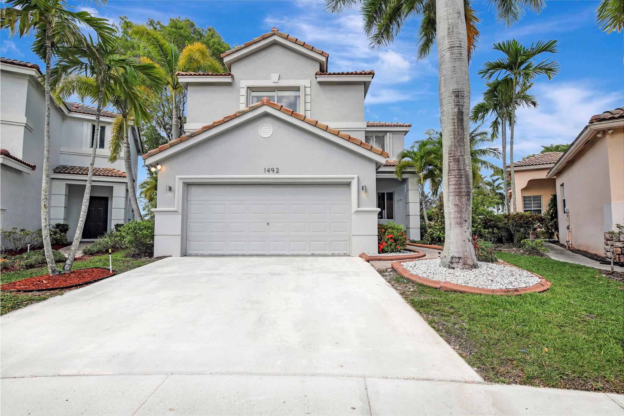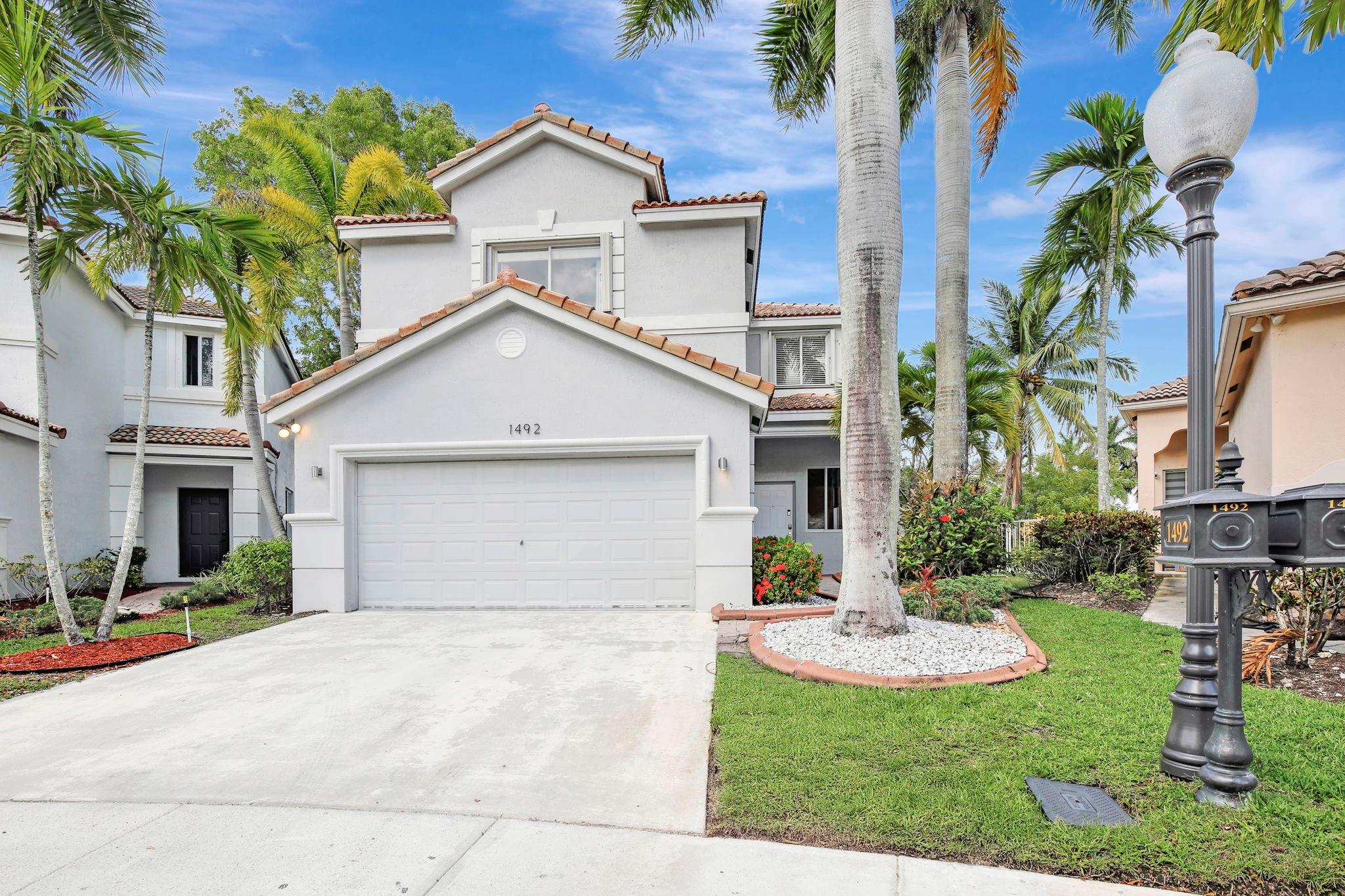 Former model home on model row! Amazing 4BD/3.5BA/2CG on a spectacular 10,648 sq ft huge fully fenced lakefront lot with stunning show-stopper pool with raised spa deck! Situated on a wide greenbelt cul-de-sac, centered by a charming tot-lot. Discover the ultimate backyard escape with an expansive garden, large covered paved patio & peaceful, private lake views. All incredibly generous sized bedrooms are upstairs, (one perfect as "mini master" w/ ensuite bathroom), all with walk-in closets! The kitchen features granite countertops, stainless appliances, wood cabinetry & pantry w/ample organized storage. Tile downstairs, wood laminate upstairs, LED lighting. Trendy touches throughout! Fabulous resort clubhouse down the road with amazing amenities, all covered by HOA. A+ school up the road!