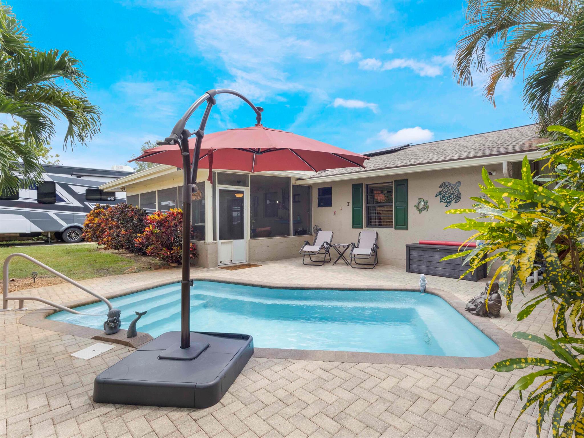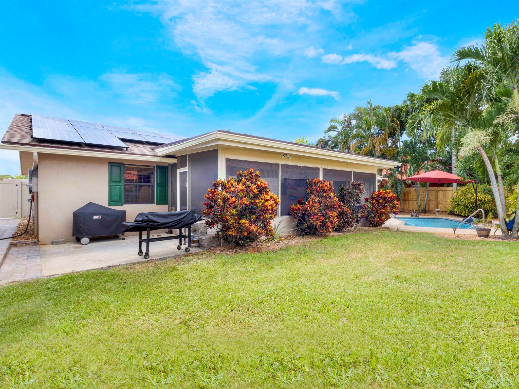 Everything has been done for you! NO HOA! Recent updates include NEW ROOF (2022), A/C (2024), HW heater (2025). RV Driveway/Boat Pad with 50AMP hookup (2024) for all your vehicles & toys. The kitchen features SS appliances (2023). Pool converted to Salt Water (2023) new filter (2025). Maytag washer and dryer (2023), Impact Glass, hurricane-rated garage door, and a full solar electrical panel system (2018) to help lower your electric bill. Engineered Hardwood Flooring (2024) in the main living area and kitchen (no carpet). Plantation shutters, and a Fenced Yard (2025) with an avocado tree and automatic sprinkler system. Centrally located between the Florida Turnpike and I-95, and just 8 minutes to the airport (PBIA). A great family home or investment property.
