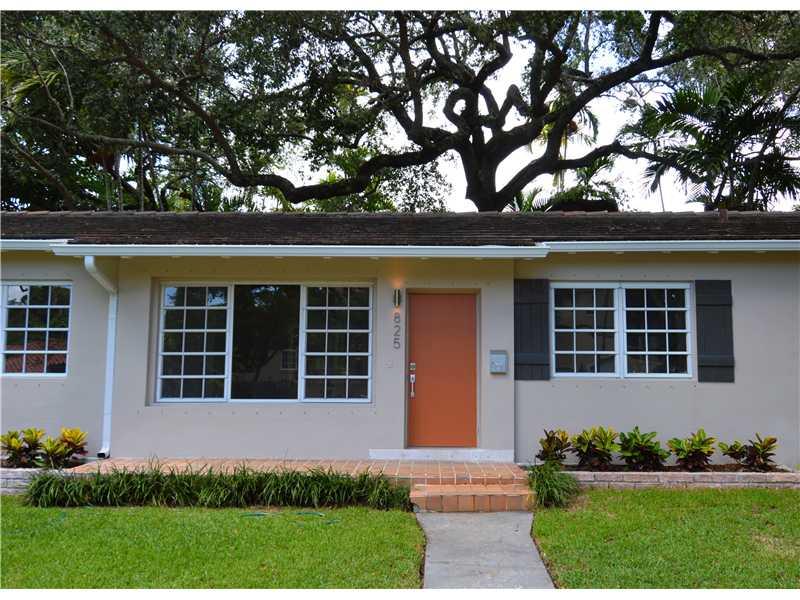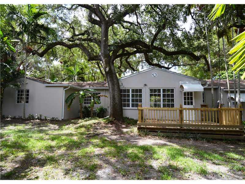 Mid-Century Modern 3/2 with 1854 sq ' on an oak laden 100'X100' lot on a beautiful, low traffic, leafy Gables street. Spacious, logical floor plan, big windows throughout for loads of natural light, dramatic cathedral ceiling in living room adds charm, la rge family room looks out to private, spacious yard with plenty of room for a pool. Original 40's baths have been preserved and the original white terrazzo floors are still there under the tile and carpet ready to restore for that Madmen retro look