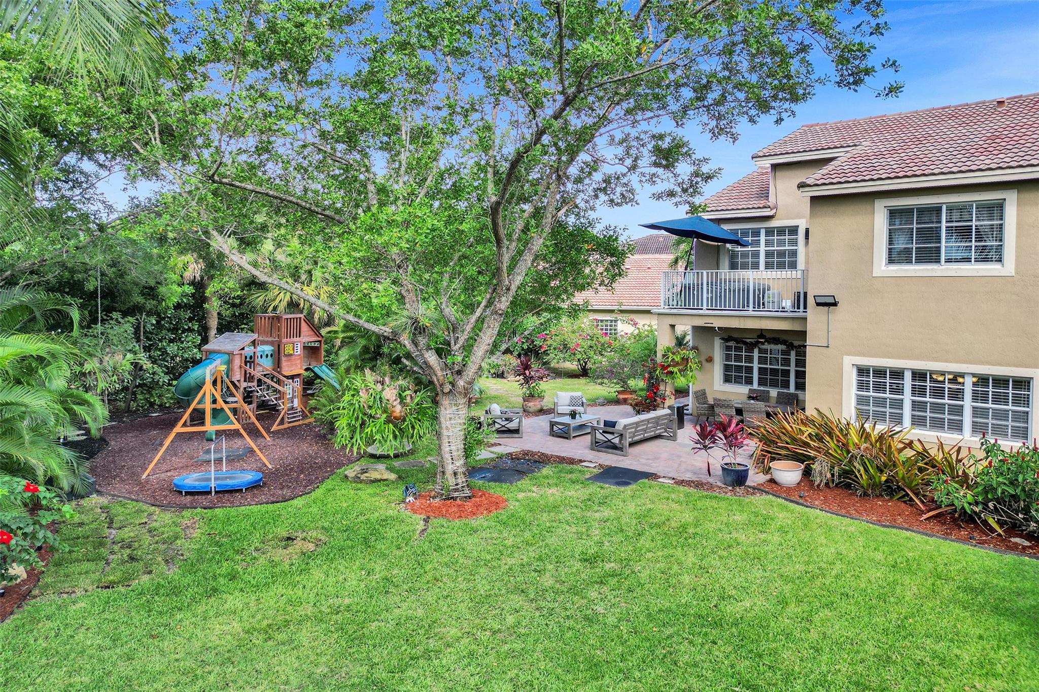 PRICE REDUCED $20K! Looks like a model home! Gorgeous 4 bedroom/ 3 full bath home in desirable gated community of Vizcaya in Coral Springs! Great floorplan with 1 bedroom + 1 full bathroom downstairs. Upstairs you'll find the primary bedroom plus 2 other bedrooms and a huge bonus room that is used as a family room/playroom/movie theater room or can be converted into a huge 5th bedroom. Fully renovated bathrooms! And what an AMAZING BIG TROPICAL PRIVATE BACKYARD with beautiful landscaping and lighting, mancave shed with electrical, playground and cozy firepit area. So many updates, front and back balconies, hurricane shutters. HOA is only $300/month and offer community gym, pool, hot tub and tennis courts! Subject to Probate court approval. Closing as soon as end of August. MOTIVATED SELLER