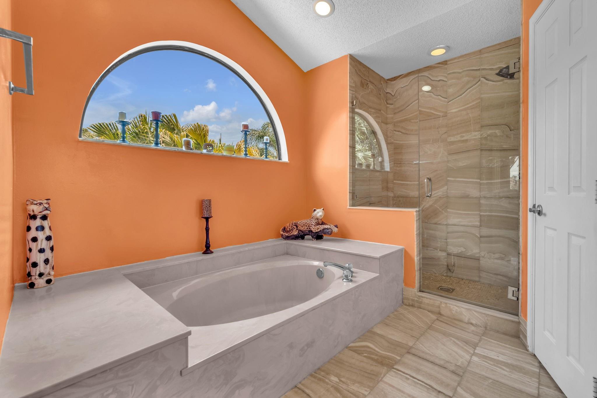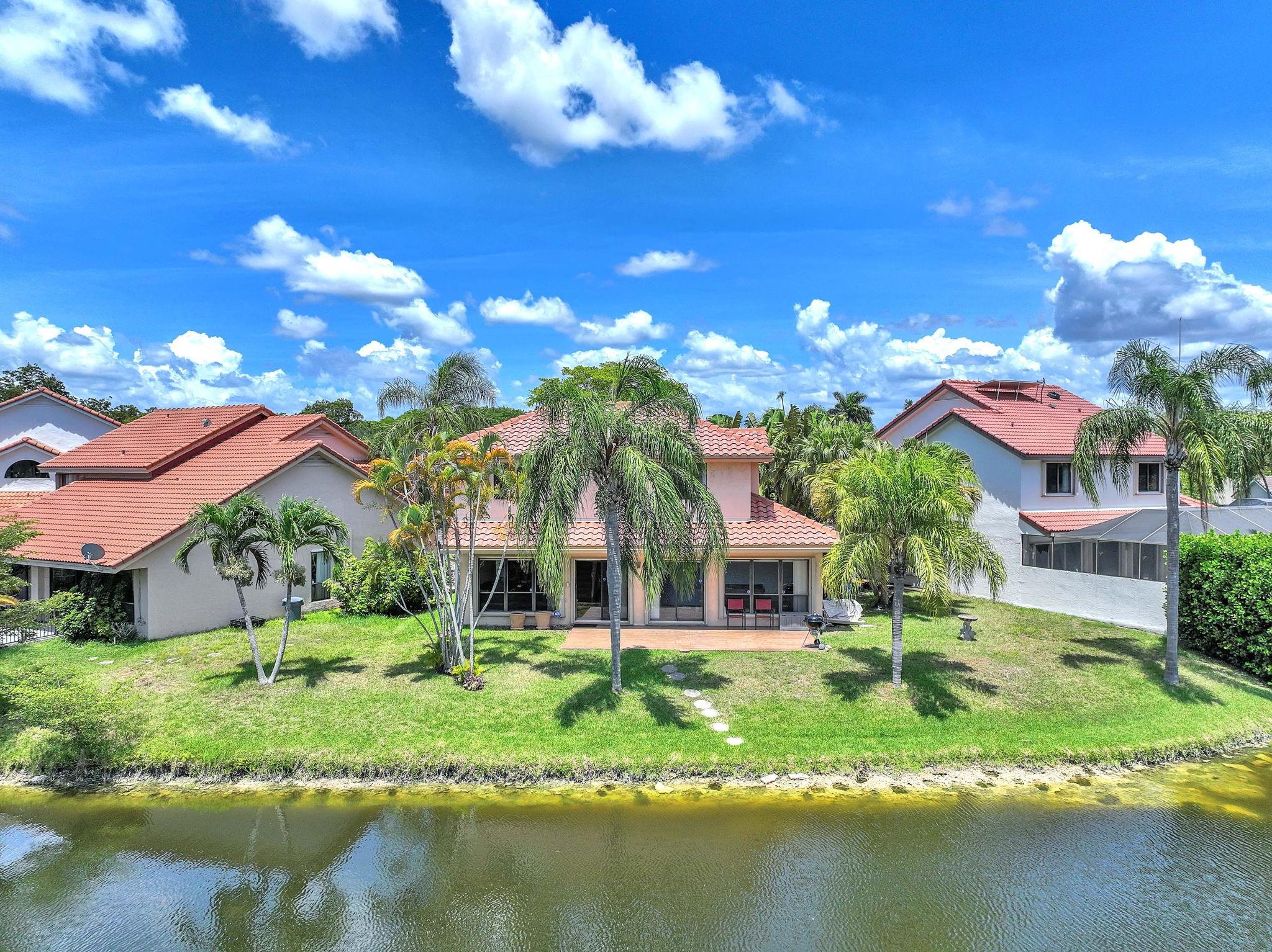 Spacious Lakefront culdesac 4/3 home with beautiful relaxing views on a pie shaped lot. This is a well cared for home with tile on first floor, open layout perfect for entertaining. Kitchen has newer appliances, cabinets, and granite countertops. A full bedroom and bath on the first floor/guest suite or office area. 3 bedrooms and 2 baths upstairs w/spacious rooms and walk in closets. Extra large stamped concrete patio perfect for sitting and enjoying the lovely water views. Larger lot with side yard w/room for a pool. Exterior features Gutters, Impact garage and front door, impact windows upstairs and accordians shutters down stairs. Gated low maintenance community in excellent convenient location.