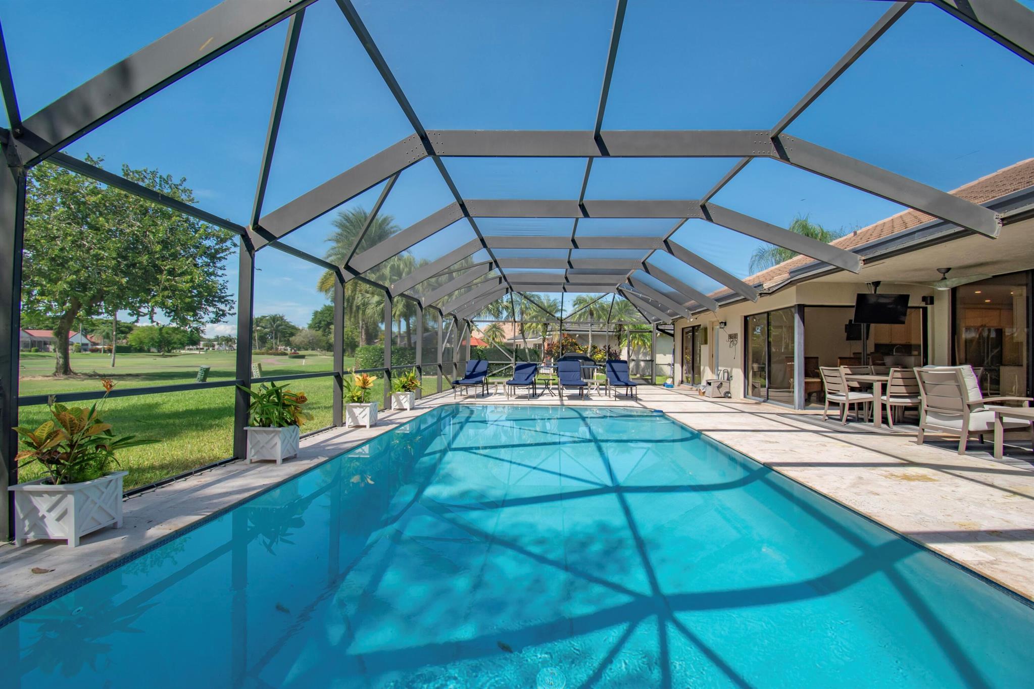 Country Club Living at its Finest! Boca Woods Country Club features 2 championship golf courses, tennis courts, pickle ball, bocce ball, community pool, and state of the art fitness center, a salt room, steam room, hair stylist, and nail care without leaving the Community! Full service dining room with valet parking. This tastefully updated 3 bedrooms, 3 bathrooms, comes with 2 golf carts. Interior is newly painted with an updated kitchen and updated bathrooms. The yard features an expanded patio with marble pavers and private pool with an exceptional lake and golf course view, not to mention the magnificent sunsets! Schedule your showings today!Mandatory membership $120,000.