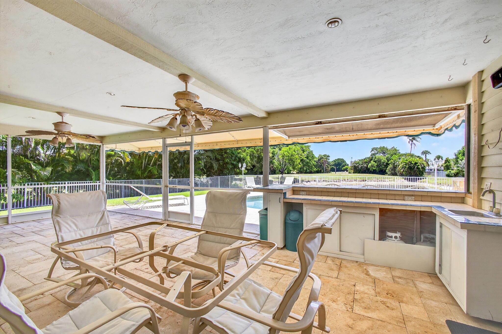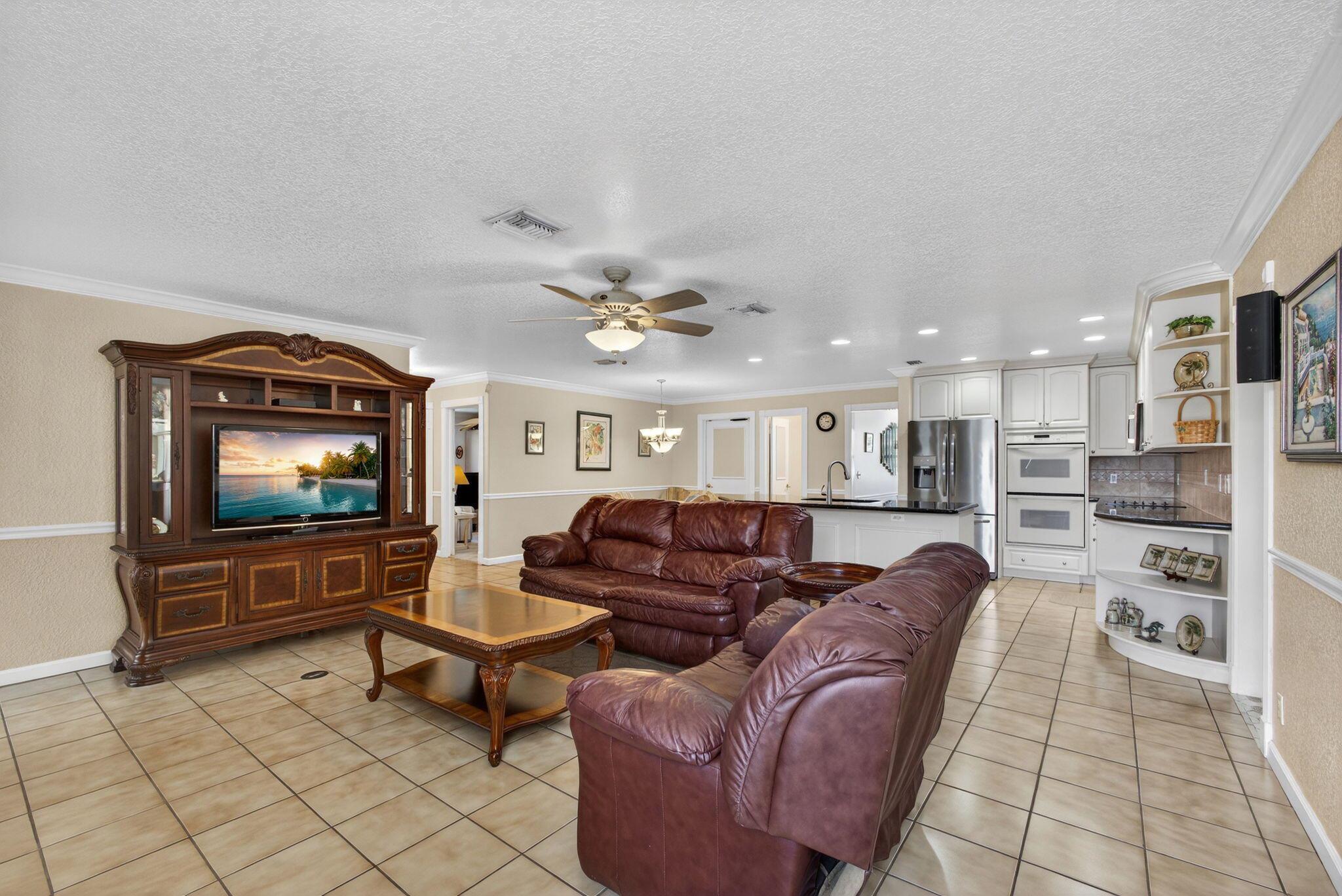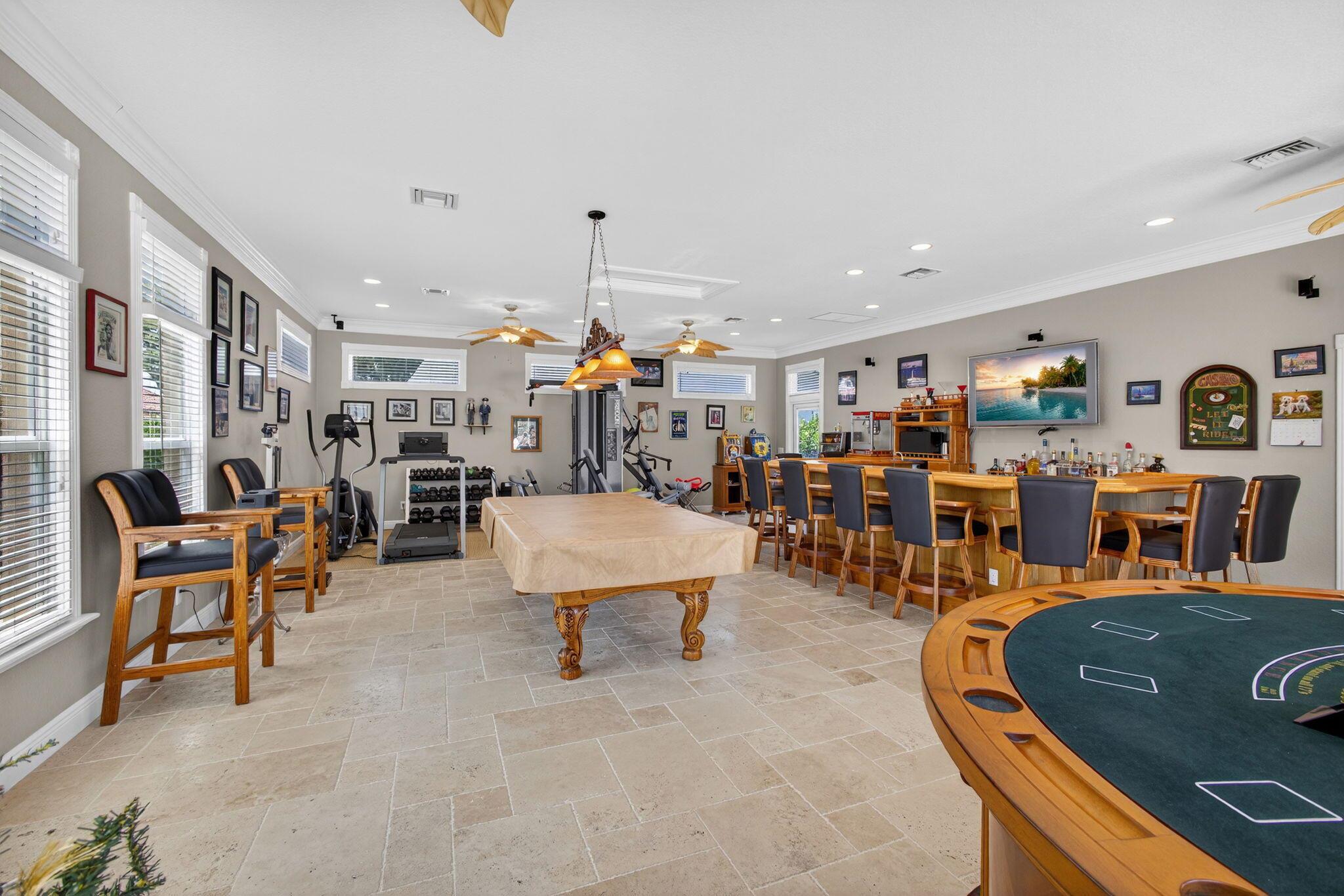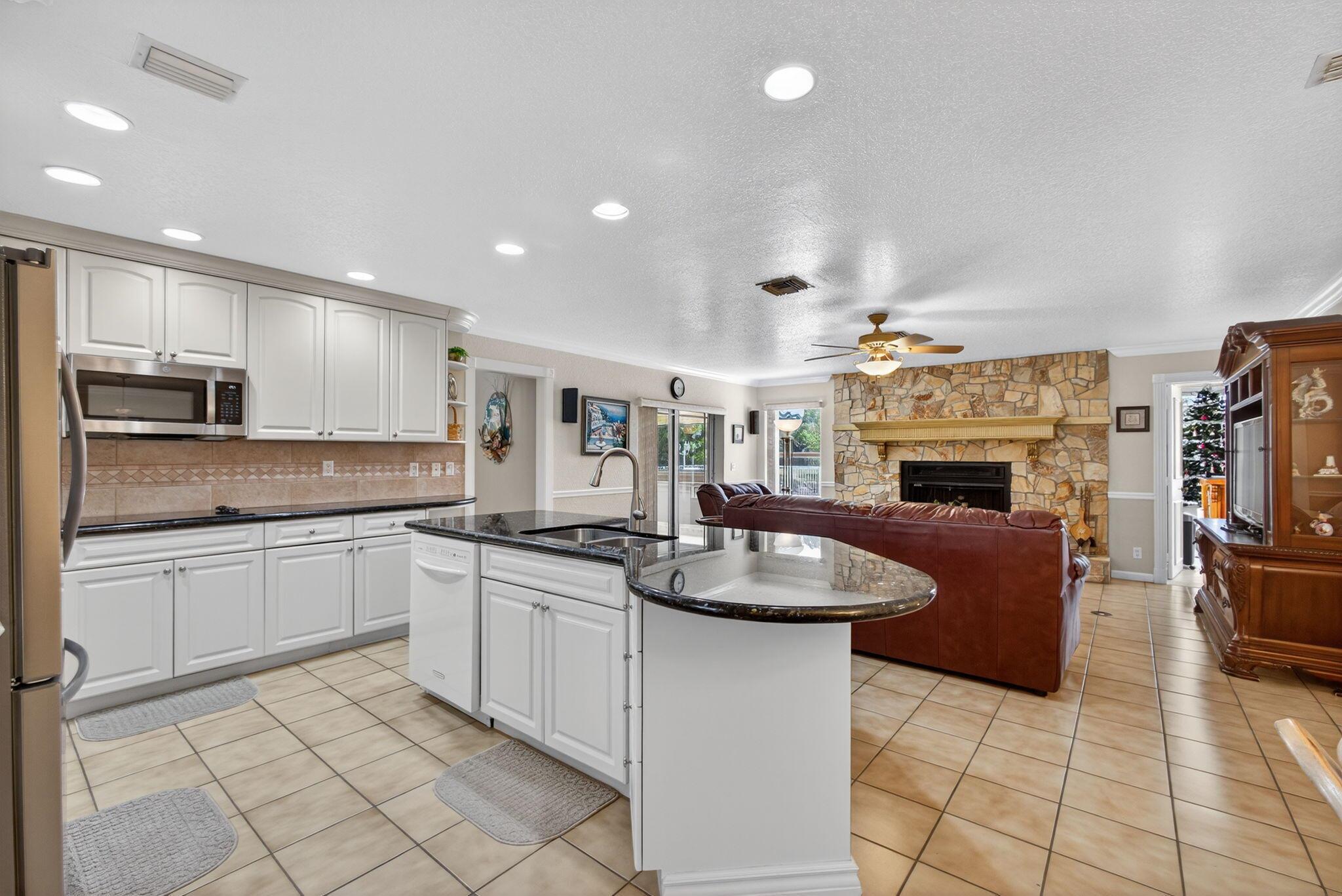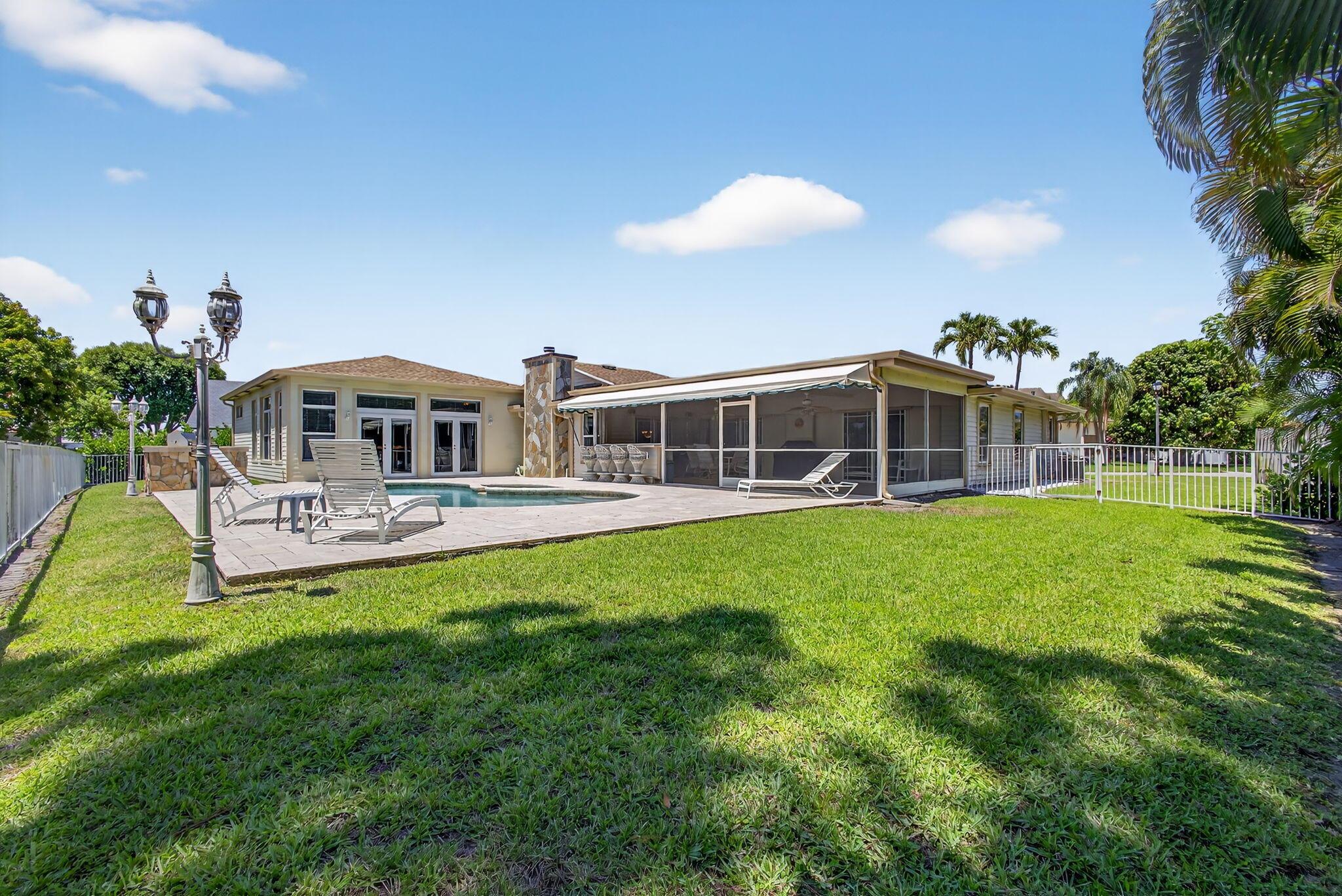 Spacious lakefront ranch home in a gated community with large, oversized rooms filled with abundant natural light The gourmet kitchen boasts granite counters and opens to a family room with a cozy fireplace. Conveniently located off the family room is a massive bonus/great room--perfect for entertaining. Enjoy serene water views, a sparkling pool, and a custom outdoor bar perfect for gatherings. Additional features include tons of large closets throughout and a circular driveway for added curb appeal. The ROOF was re-done in 2022 and the home is secure with impact windows and doors. This home has it all--comfort with space to live and entertain plus the low HOA dues make this home a rare find! CHECK OUT THE 3D WALK THRU.