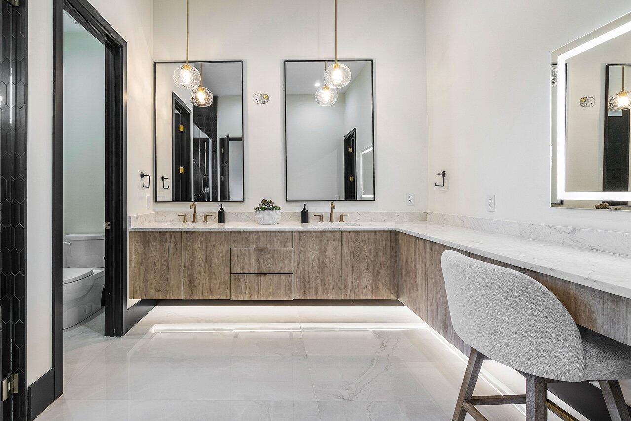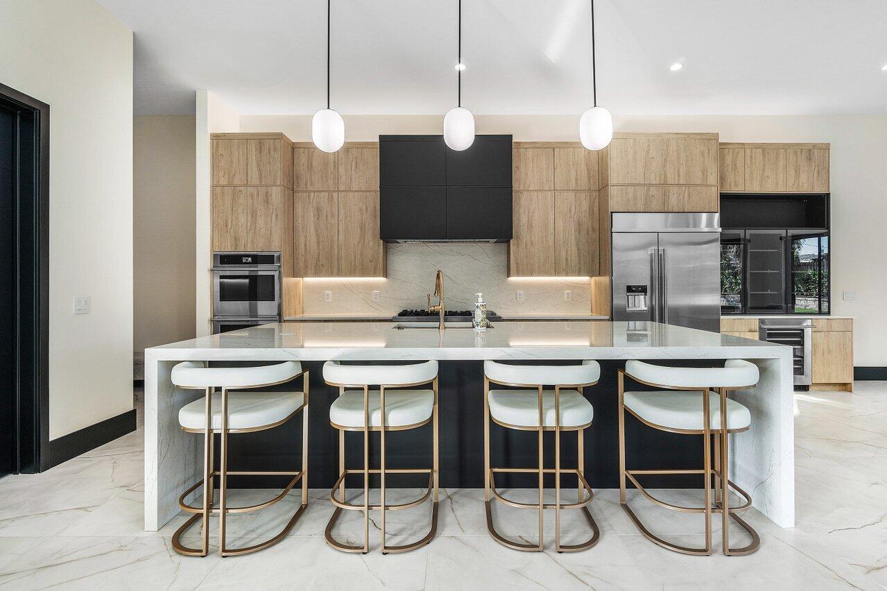 Your new lifestyle will exceed your expectations in this eloquently designed contemporary beach estate. Its offerings include; a grand gated entry with plenty of parking for friends and family, and 3 garage spaces with plenty of height to add lifts for more luxury car space. Upon entry of the oversized double custom doors you will be greeted with 25 foot ceilings boasting ample natural light, and highlighted by custom floating staircase and modern yet elegant fixtures. The north side of the estate features a meticulously designed custom kitchen with 12 foot ceilings, highest quality appliances and fixtures, thoughtfully designed to provide you with ease for entertainment and indoor outdoor Florida living. The south end of the main level includes an inviting in-law suite