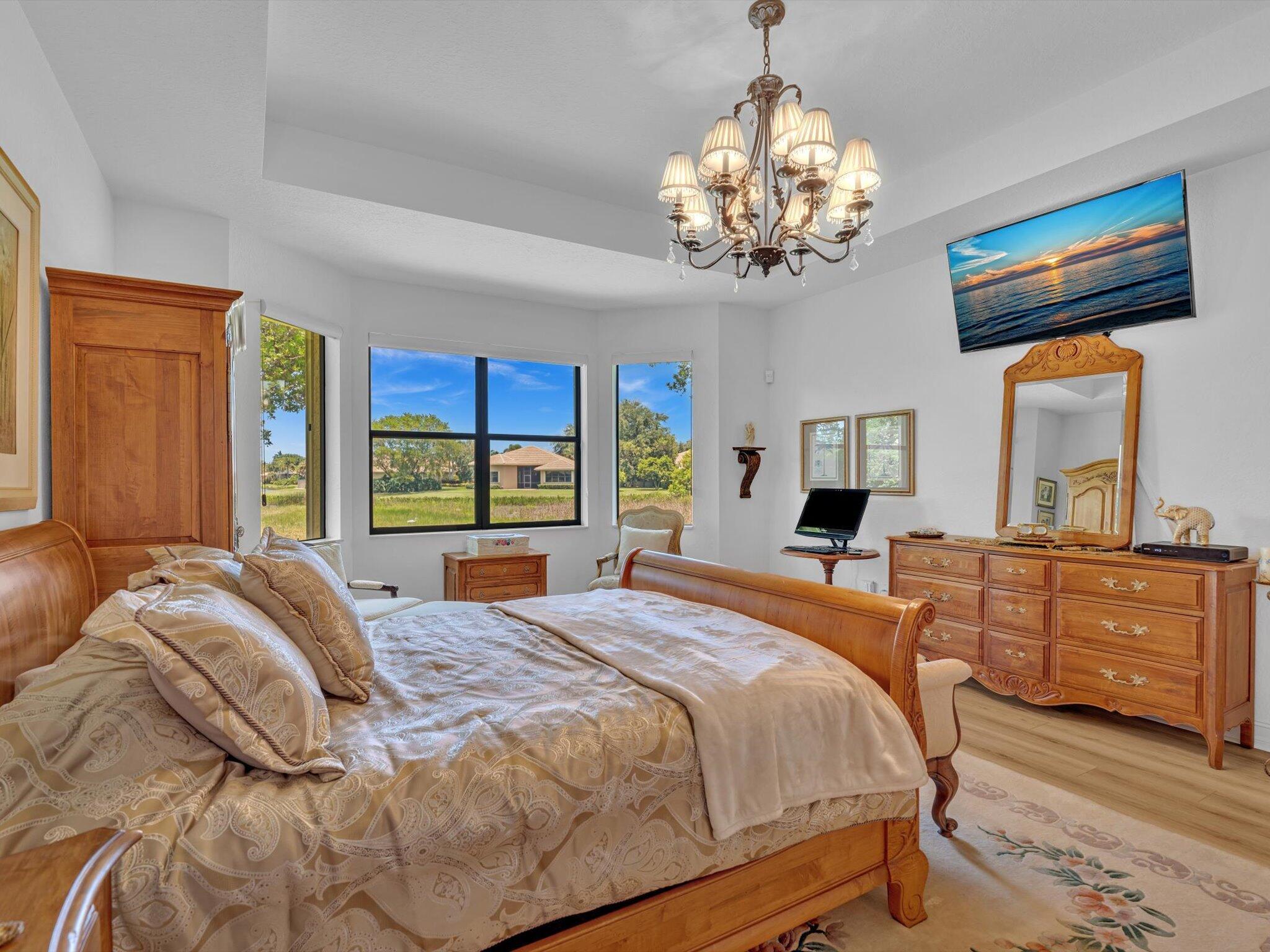 Situated on one of Tivoli Reserves exclusive & unique long-lake lots that provides the most breathtaking views enjoyed only by a select few residents of the community, the ''Milano'' model boasts a split floor plan and 2,621 sq ft of luxurious living with 3 bedrooms, 2 full baths & 1 half bath. A screened & covered Lanai with brick paver deck facilitates outdoor living 12-months per year. The spacious primary suite features 2 walk-in closets with custom built-ins and a lavishly appointed bathroom with dual vanities, soaking tub and separate shower. Some of the many upgrades & improvements include a granite kitchen with 42''cabinetry & travertine backsplashes, upgraded flooring throughout, motorized window shades, tankless water heater & complete accordion storm protection!