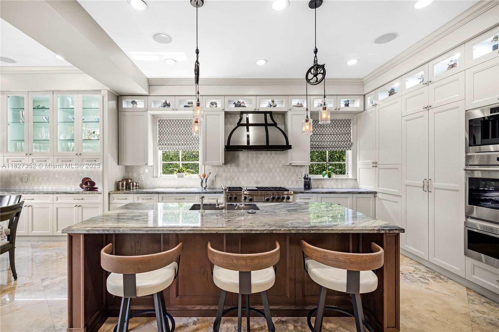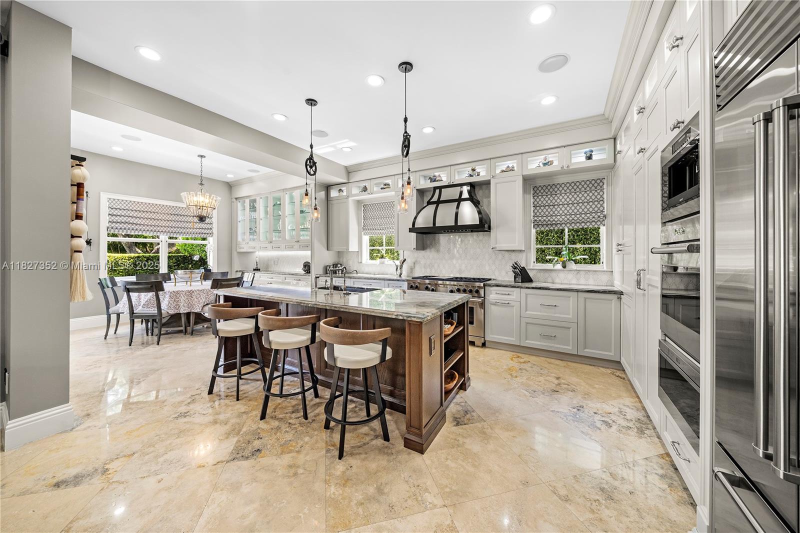 This exquisitely updated 5BD/6BA home on the Biltmore Golf Course offers beautiful views and refined living at its best. Enter through a grand foyer w/dramatic staircase, soaring coffered ceilings, and elegant formal living and dining rooms. New kitchen & bathrooms feature high-end appliances, custom cabinetry, wood & marble floors, and modern finishes throughout. Impact windows/doors, fireplace, and large French doors create a bright, inviting feel. The open kitchen, breakfast area & family room flow seamlessly for easy entertaining. A stately primary suite opens onto a balcony shared by two additional bedrooms. The gracious exterior includes a serene patio w/black-bottom pool, spa & unparalleled views of the Biltmore Hotel. A true Coral Gables gem in a premier location.