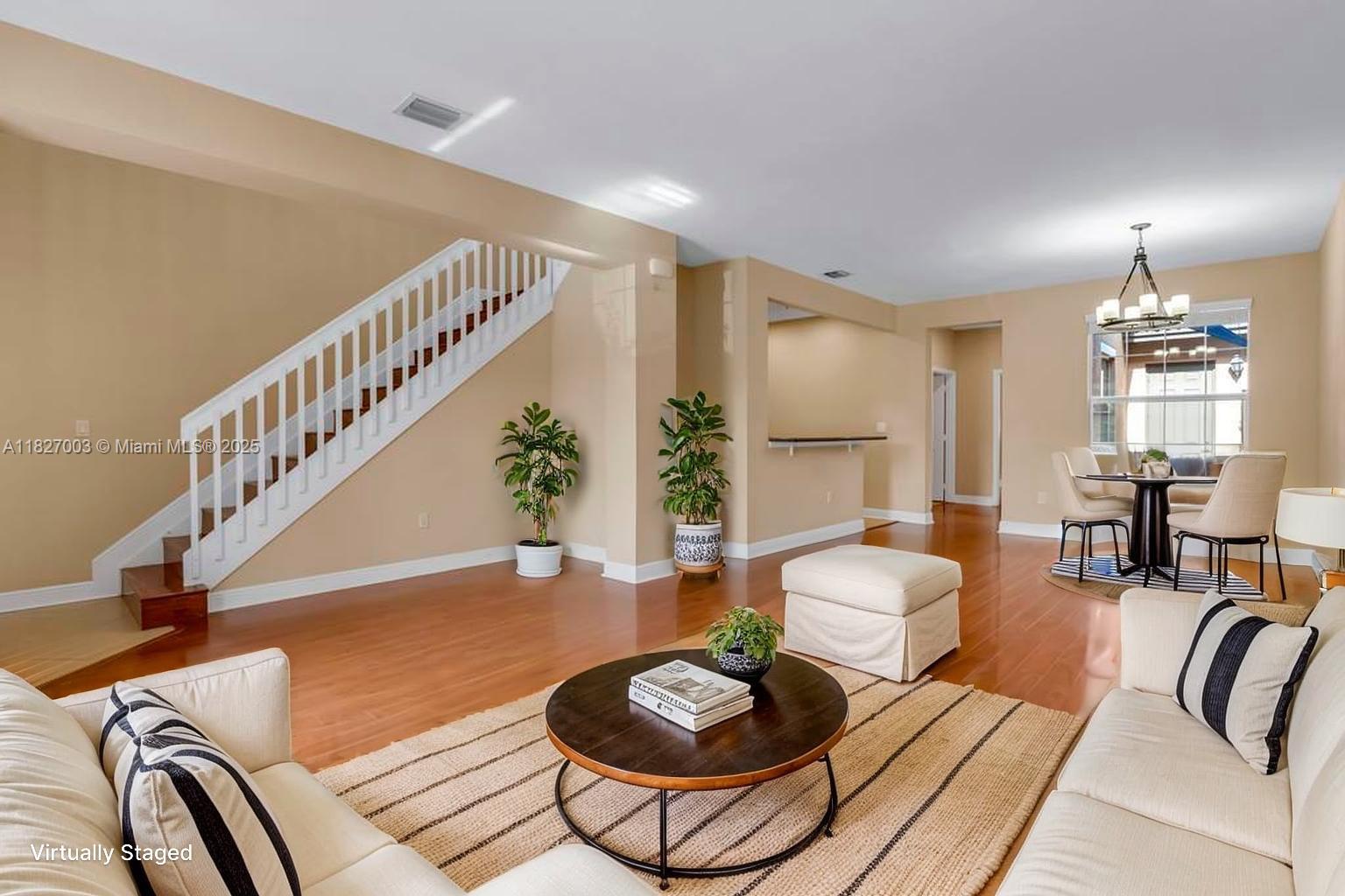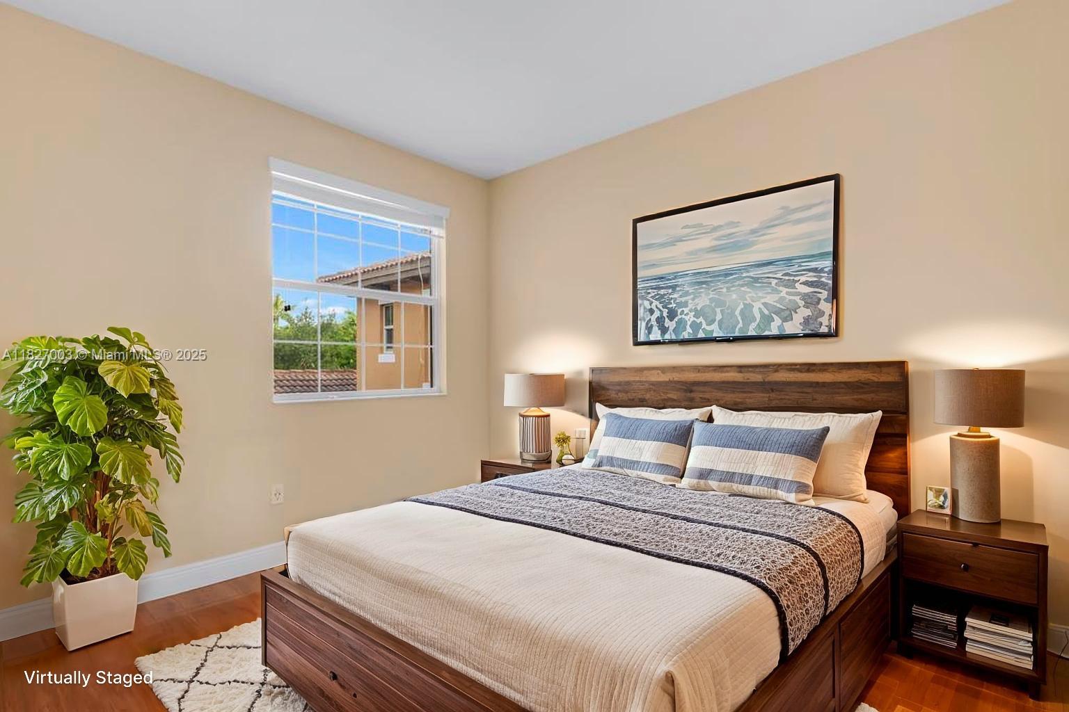 Beautiful 3 bed, 3 bath townhome with a 2-car garage and loft in a 24-hour gated community. One bedroom and full bath on the main level, ideal for guests or home office. Features include stunning wood flooring throughout and a bright, open layout. Located directly across from a park, offering lovely views and added green space. Enjoy resort-style amenities including a clubhouse, gym, pool, tennis and basketball courts, fitness center, walking trails, and more. A rare find in a prime location!