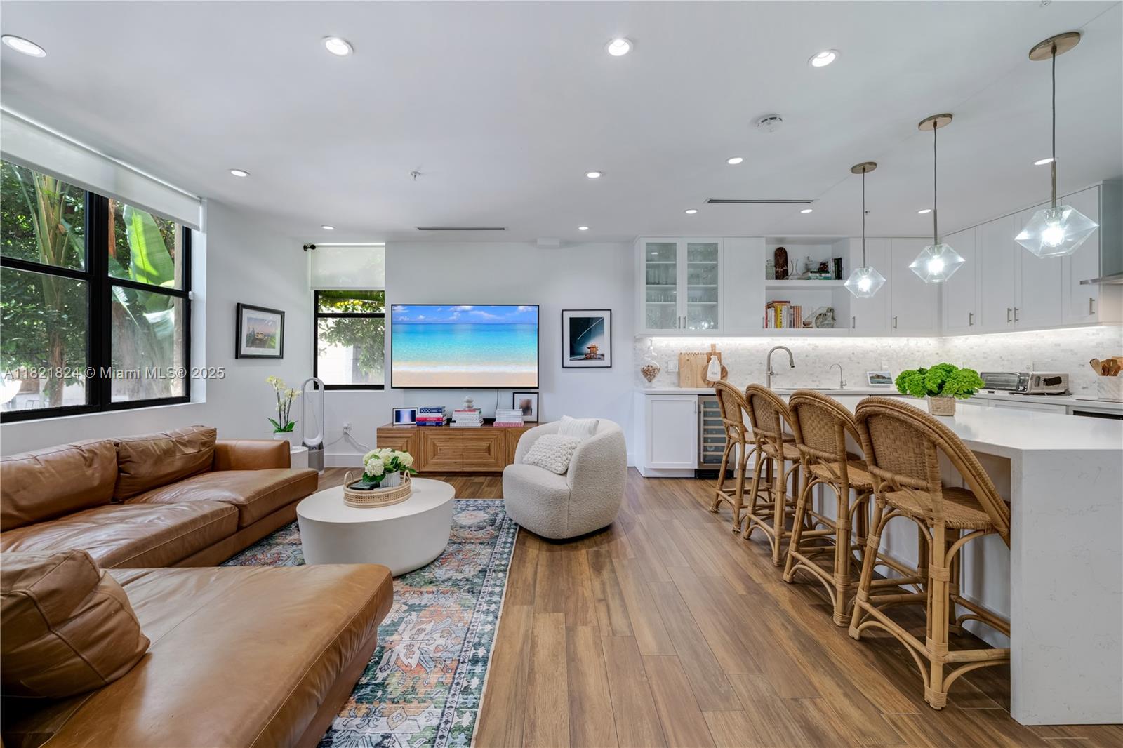 Beautifully updated townhouse in the heart of the Gables! This stylish 1-bedroom, 1.5-bath home features a modern, crisp design with sleek finishes throughout. The contemporary glass stair railing and custom glass partition upstairs enhance both light and space, offering added privacy and versatility—currently used as a charming nursery. An ideal blend of function and design, this move-in-ready gem is perfect for anyone seeking sophisticated urban living just steps from the best of Coral Gables.