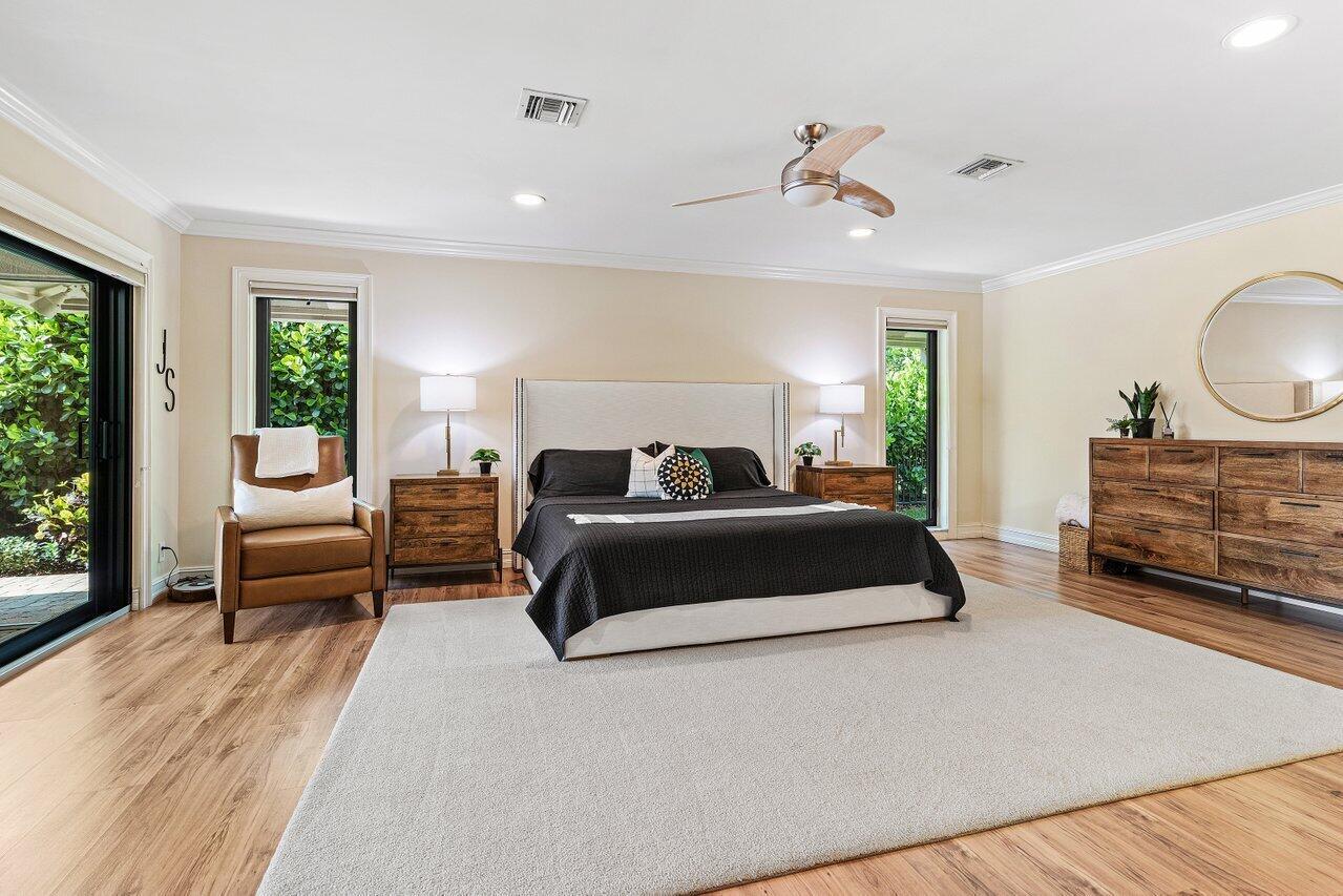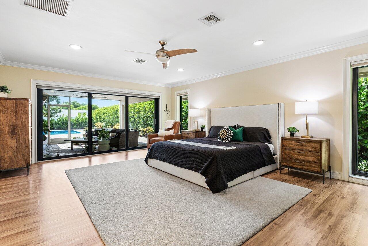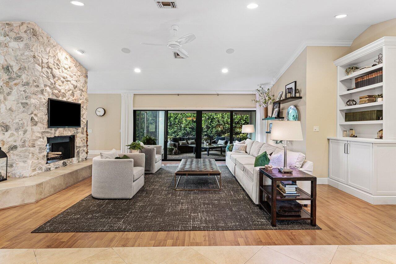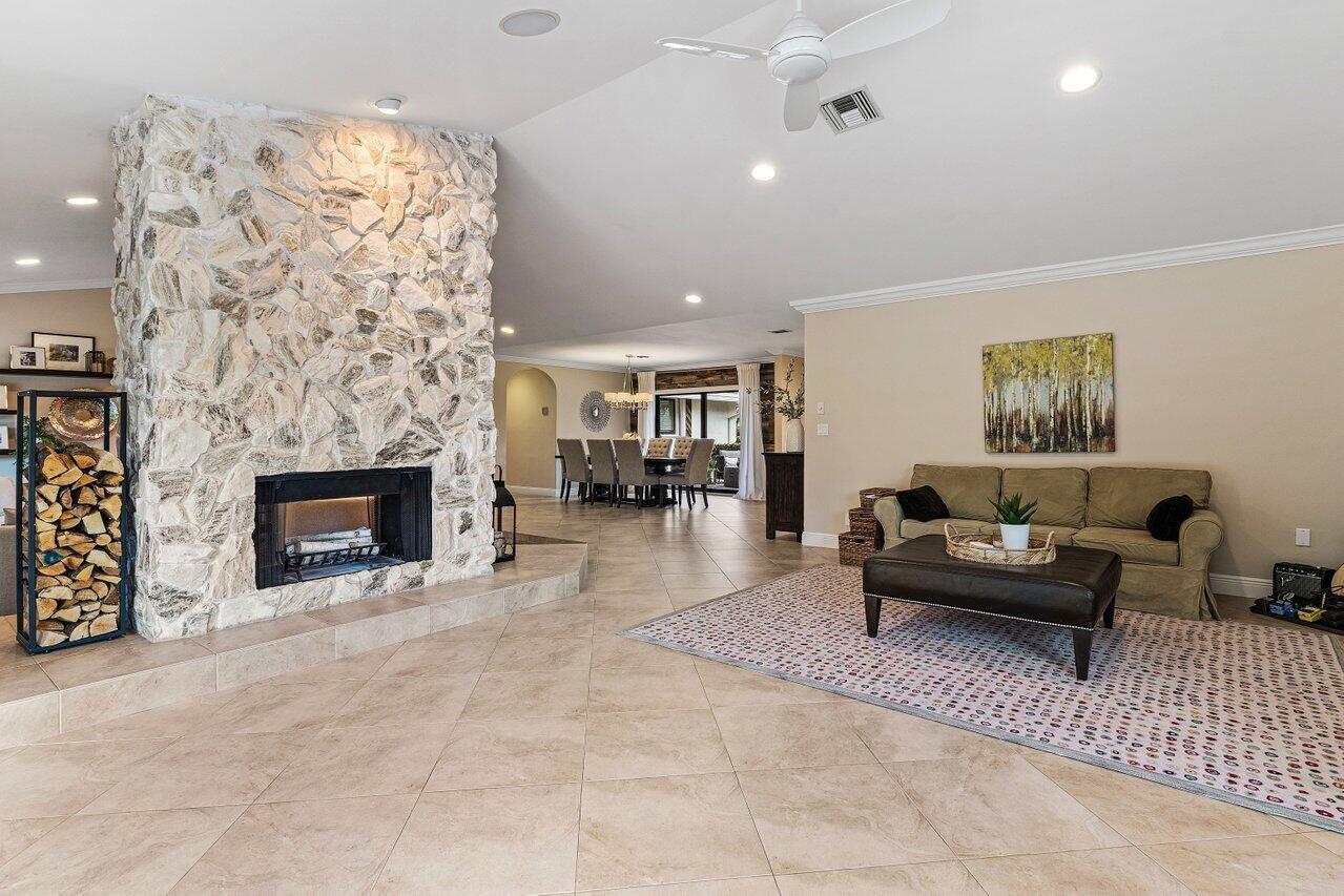 Welcome to Woodfield Hunt Club-one of Boca Raton's most prestigious gated communities, where timeless elegance meets modern sophistication.This beautifully renovated 4-bedroom, 3-bathroom estate sits on an expansive corner lot and offers a thoughtfully designed split floor plan with spacious living areas, a cozy wood-burning fireplace, and refined finishes throughout. The light-filled primary suite, living room, and family room all open to the pool and yard, flooding the home with natural light and providing effortless access to the outdoor living spaces. Enjoy a designer kitchen with a generous breakfast area, along with formal and casual dining spaces and oversized secondary bedrooms. Outdoors, the separate pool and entertaining areas create the perfect setting for both relaxed
