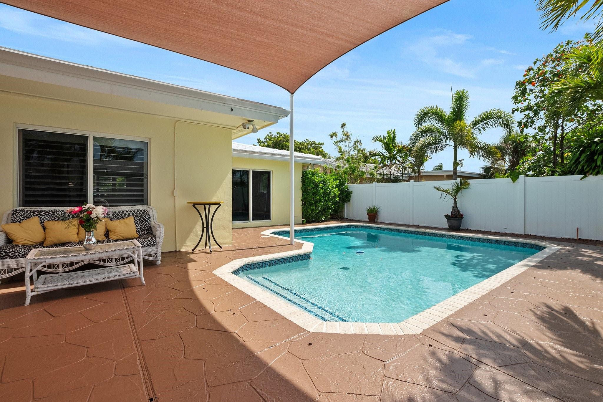 This charming 3/2 with pool and garage is one of the best maintained properties on the market. The fortunate buyer will benefit from an endless list of upgrades providing peace of mind home ownership. Gloat at the charming curb appeal then step inside to a massive living/dining combination, open to the generous kitchen with bar area. The appliances are all recent additions including the commercial W/D located in the huge laundry room with excellent storage. The backyard is ready for summer fun with an offset pool allowing for plenty of room for kids and pets to run. It is low maintenance/low cost with the sprinkler on a well, new AC, new variable speed pool pump, NO flood insurance, impact glass, new water heater & much more. It is situated close to the beach, shopping and dining.