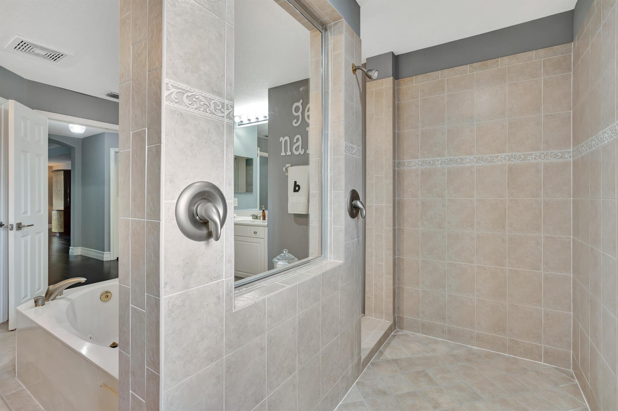 Beautifully Upgraded Spacious 5BR/4BA Home in Briar Bay - A Must-See! Gourmet kitchen with Quartzite Countertops and stainless-steel appliances. Custom wet bar -perfect for entertaining. Elegant iron staircase railing and textured walls. Upgraded lighting fixtures and ceiling fans throughout. Plantation shutters and tinted windows for style and energy efficiency. Luxurious master suite with Jacuzzi tub and walk-in closet. All bedrooms feature walk-in closets Private backyard with 20x9 custom pool featuring stunning mosaics.