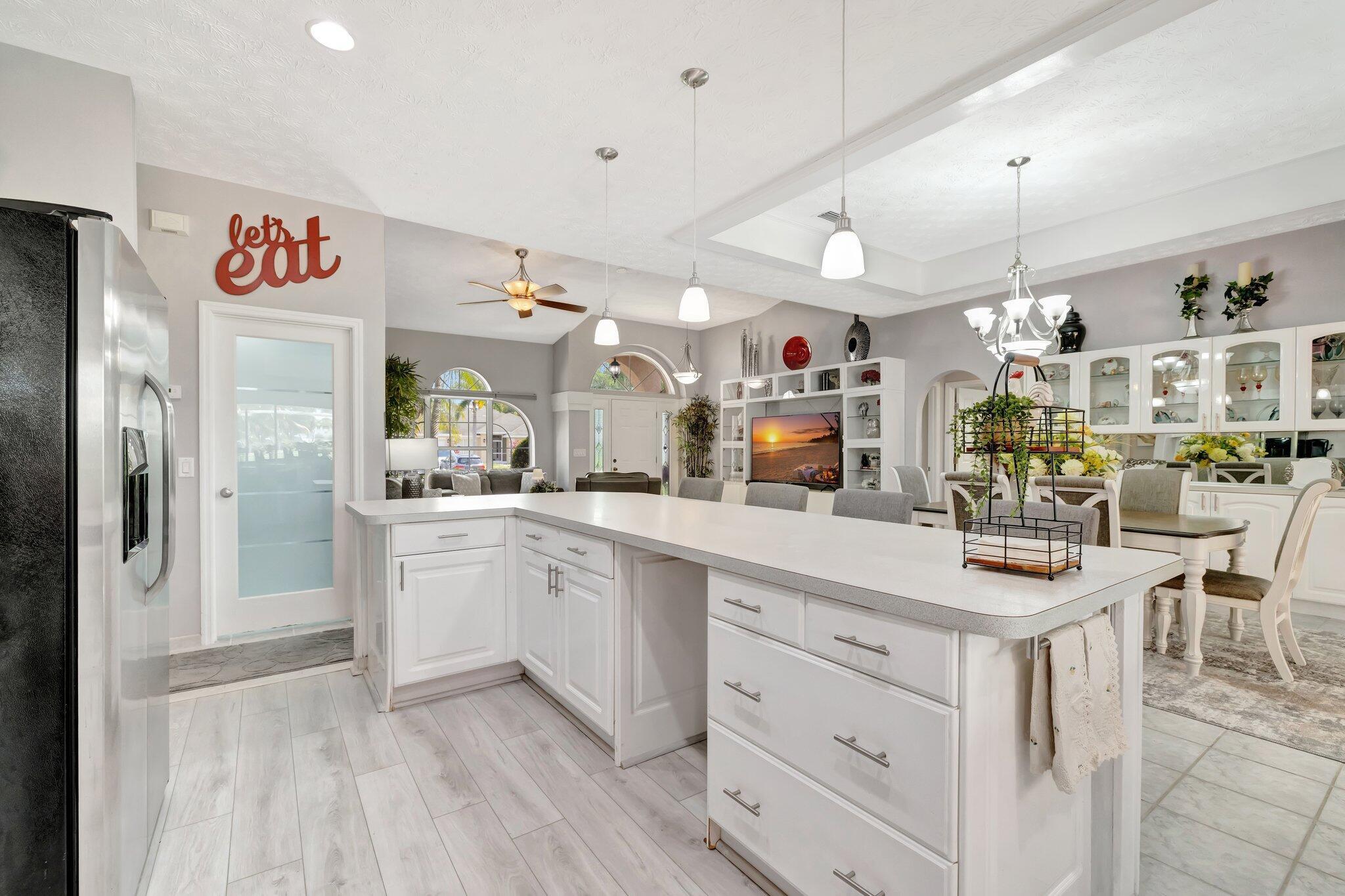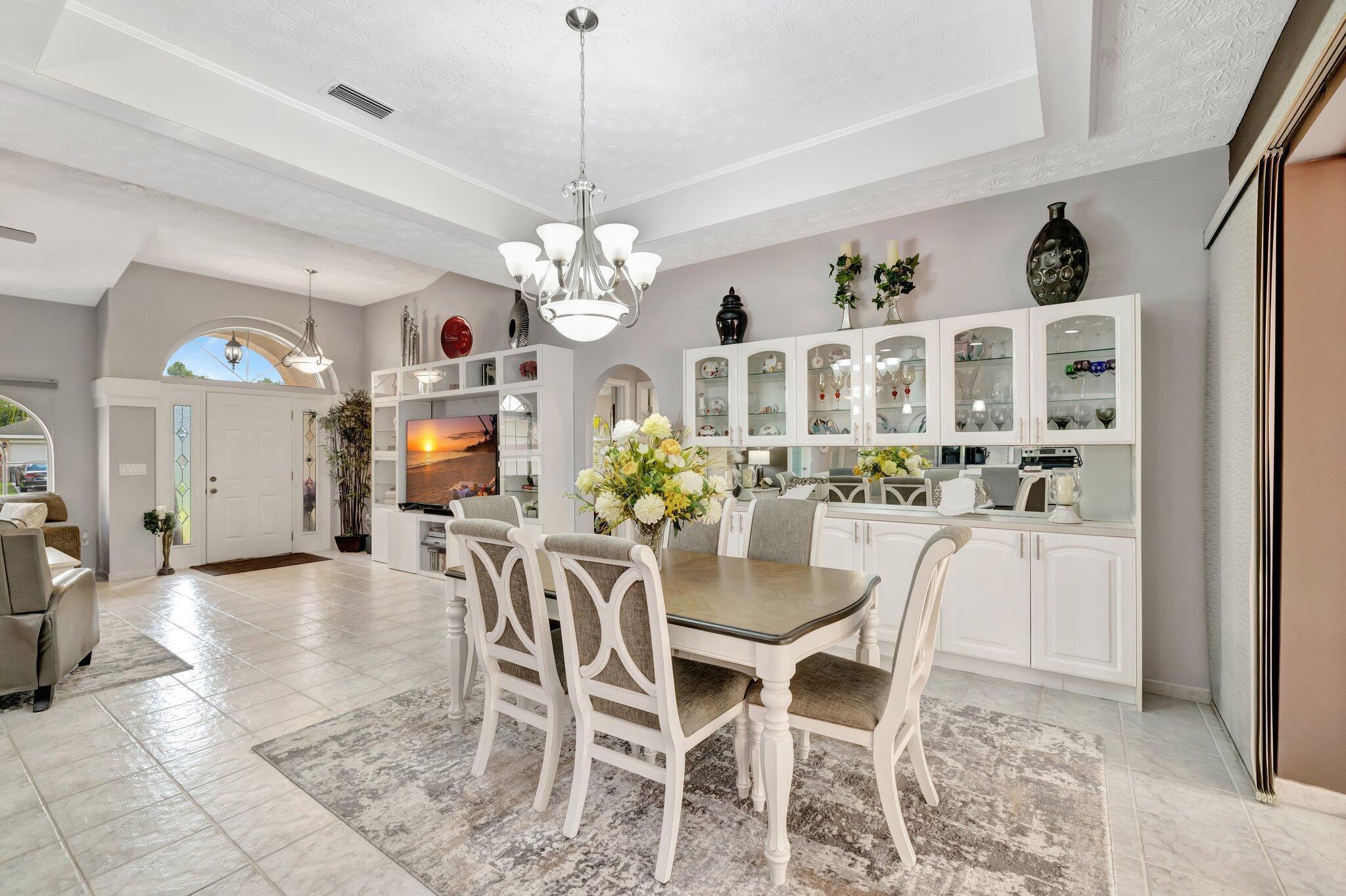 Welcome to your private paradise! This beautifully maintained 3-bedroom, 3-bathroom home offers the perfect blend of comfort, style, and Florida outdoor living--all with NO HOA restrictions.Step inside to a freshly painted interior featuring volume ceilings with elegant tray accents in the primary bedroom and bathroom. The open layout showcases tile flooring throughout the main living areas, brand new carpet in the bedrooms, and a spacious great room with a custom built-in wall unit that stays with the home. A formal dining area includes a built-in buffet, ideal for entertaining. The extra-large walk-in pantry and generously sized laundry room provide plenty of storage and functionality.
