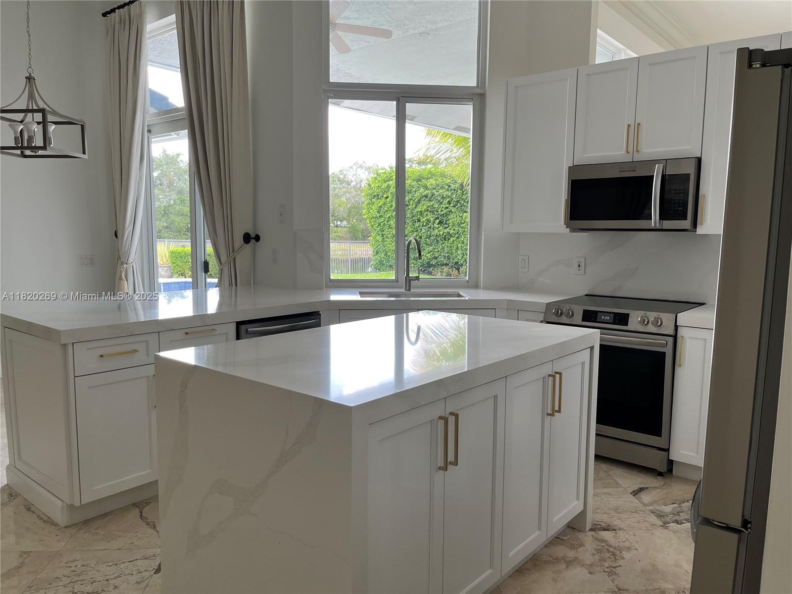 This home is located in a unique, gated community in Weston. The kitchen has been newly remodeled combining modern and luxury into one. Roof was done in 2013, Impact windows and doors throughout the house installed in 2018, and pool has a motor from 2019. The marble floors of the home have been recently polished, giving the home a renovated and elegant look. Large master bedroom and huge, elegant master bathroom. Kitchen provides view to the backyard and lake. This home has high ceilings throughout, adding to the elegance of this home. The backyard of this home is entirely unique with a fully fenced, and spacious aspect, along with the luxurious touch of complete privacy with no neighbors across the lake.