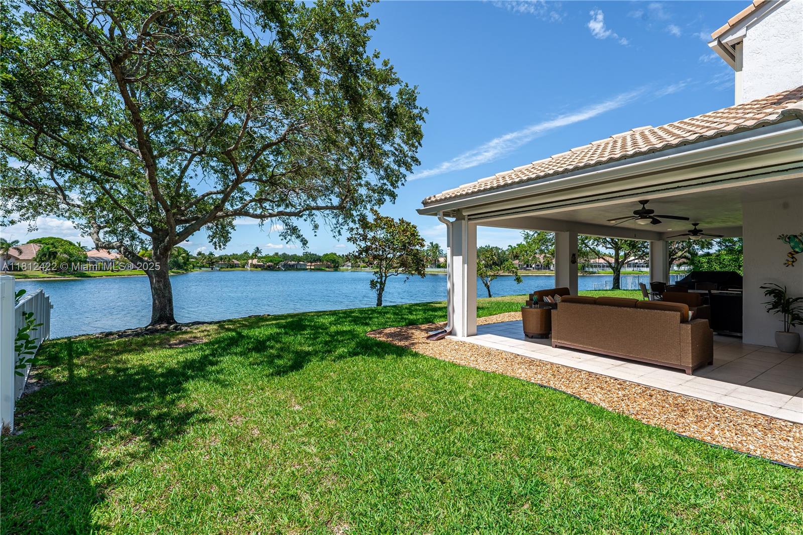 DISCOVER THE JOY OF COMING HOME TO SWEEPING LAKE VIEWS IN PEMBROKE FALLS * THIS GRAND CAYMAN MODEL WITH 5 BED, 4 BATH SITS ON A PIE-SHAPED LOT WITH 120 FT OF WATER FRONTAGE—A RARE FIND! RELAX UNDER YOUR CUSTOM EXTENDED COVERED PATIO WITH RETRACTABLE SCREENS - PERFECT FOR ENTERTAINING * ENJOY PEACE OF MIND DURING ANY STORM WITH A WHOLE HOME GENERATOR, PARTIAL IMPACT WINDOWS & ACCORDION SHUTTERS * THE SOARING 20-FOOT CEILINGS FILL THE OPEN CONCEPT KITCHEN & FAMILY ROOM WITH NATURAL LIGHT & ENERGY * THE OVERSIZED PRIMARY SUITE OFFERS A SITTING AREA, 2 WALK-IN CALIFORNIA CLOSETS & AN ADDITIONAL 3RD CLOSET * A SECONDARY BEDROOM & BATHROOM LOCATED ON THE FIRST FLOOR * COMMUNITY AMENITIES INCLUDE A RESORT-STYLE CLUBHOUSE, NATURAL GAS & MORE * HOA INCLUDES CABLE, INTERNET, 24HR SECURITY & MORE!
