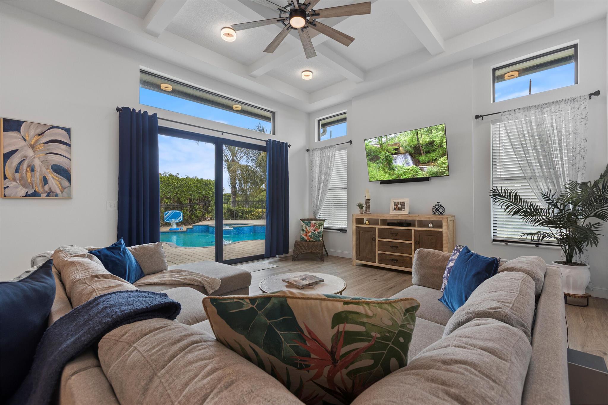 Welcome to 1340 SW Squire Johns lane, a beautifully remodeled 4 bedroom, 3- Bath single family home located in one of Palm City's most desirable neighborhoods. Set on a spacious half acre lot, this 3876 sf ( under air 2704 sf) residence offers the perfect combination of timeless architecture, modern luxury, and Florida lifestyle. This open concept home features a gourmet kitchen with oversized quartz island, high-end finishes, & LVF. Soaring ceilings with coffered/tray details, new electric & plumbing in the home, & custom baths. Major upgrades include new metal tile roof, impact windows & sliders, hurricane rated garage doors, new well and water system, spray in insulation, and more. Enjoy a private backyard oasis with an in ground pool/spa with fencing and lush privacy. A must see!