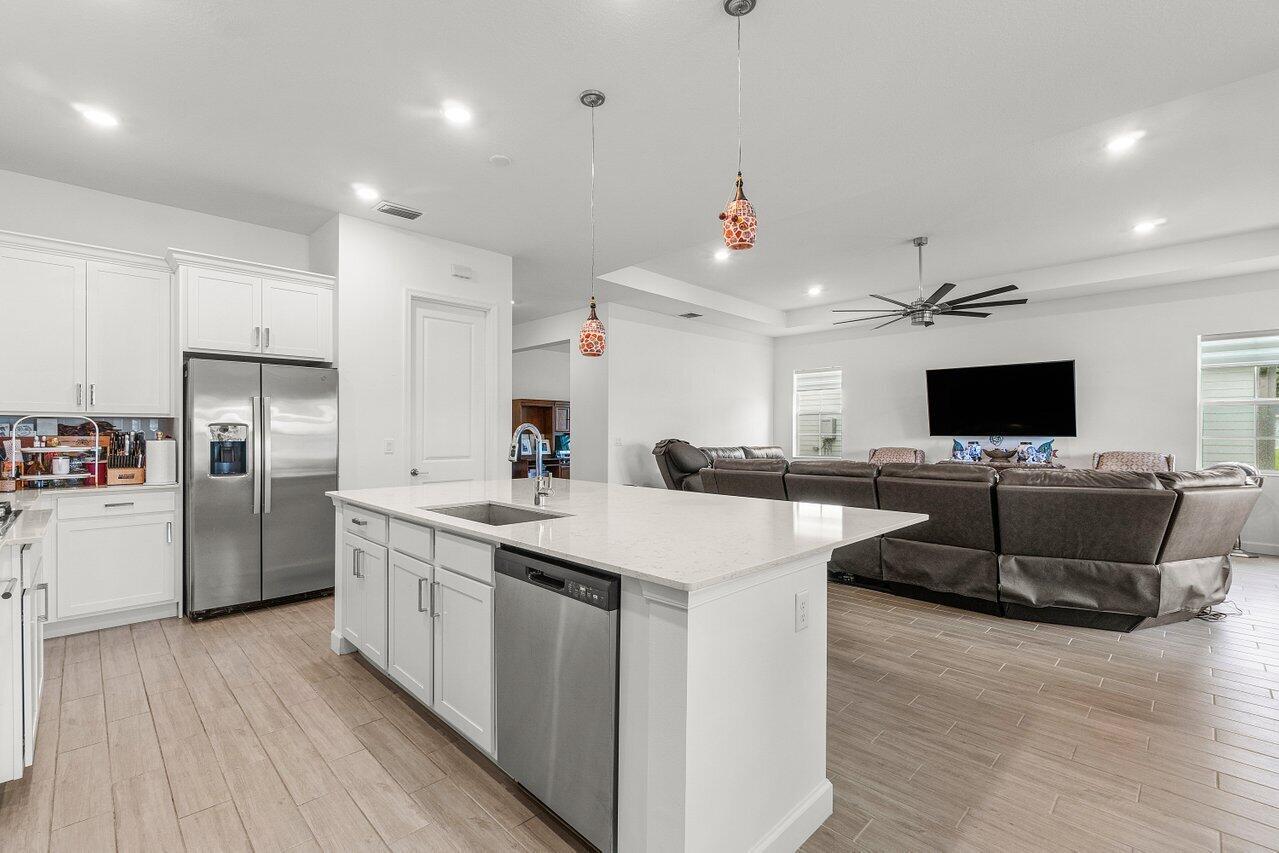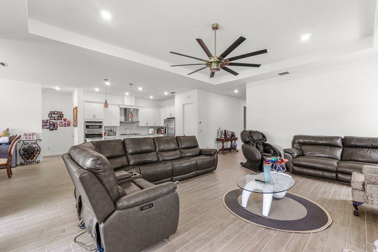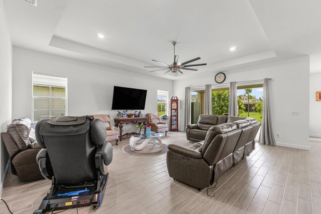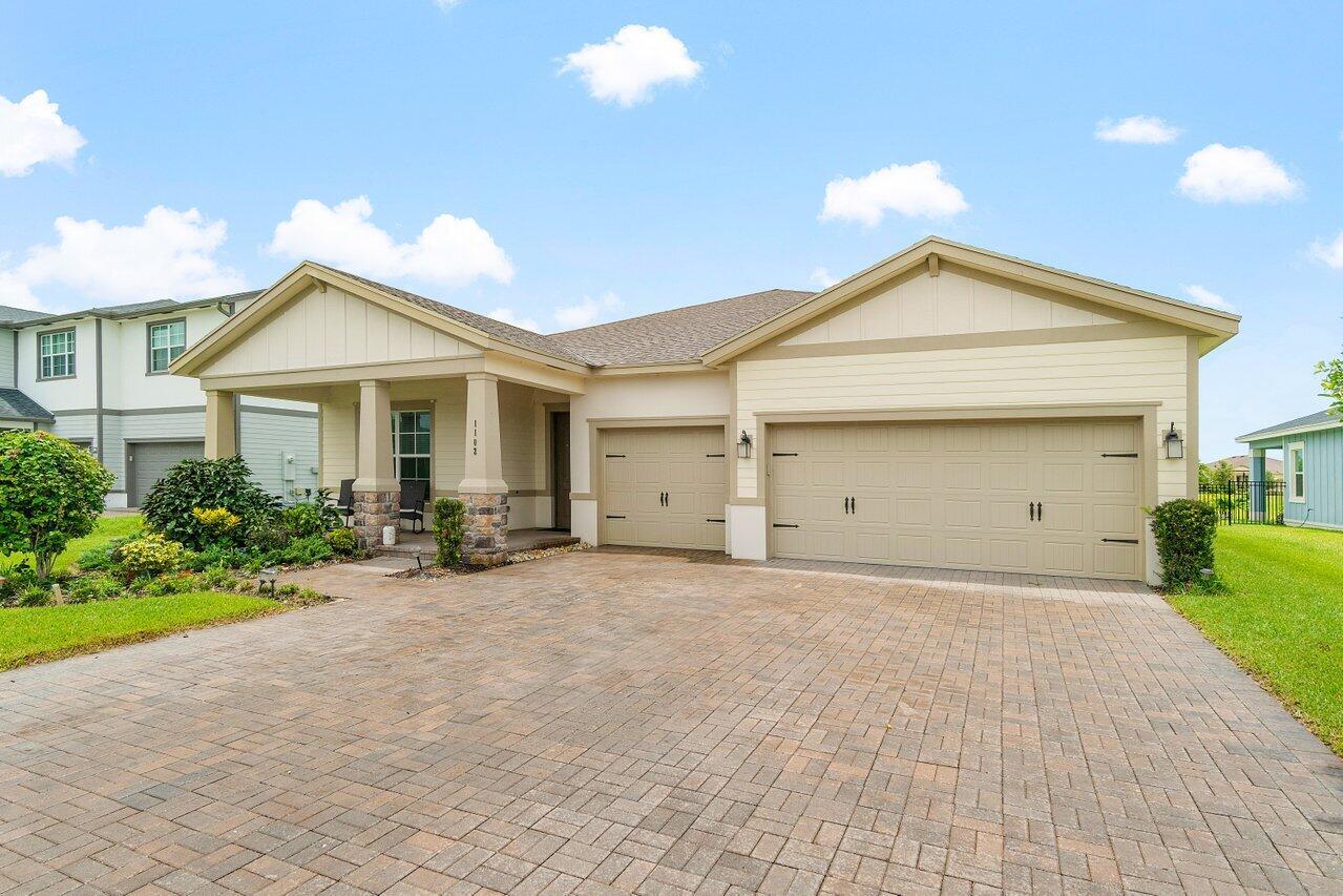 Discover this beautifully maintained 4-bed, 3-bath single-story home in the sought-after Arden community. Featuring high ceilings, impact windows, and a spacious backyard with a covered patio, it's ideal for entertaining. The upgraded kitchen with stainless steel appliances, walk-in closets, and dual sinks in the primary bath add luxury and convenience. Enjoy a 3-car garage, home warranty, and a layout designed for comfort. Live the resort-style life with a manned guard gate, clubhouse, resort pool, fitness center, tennis and pickleball courts, and nature trails. Top-rated schools nearby.