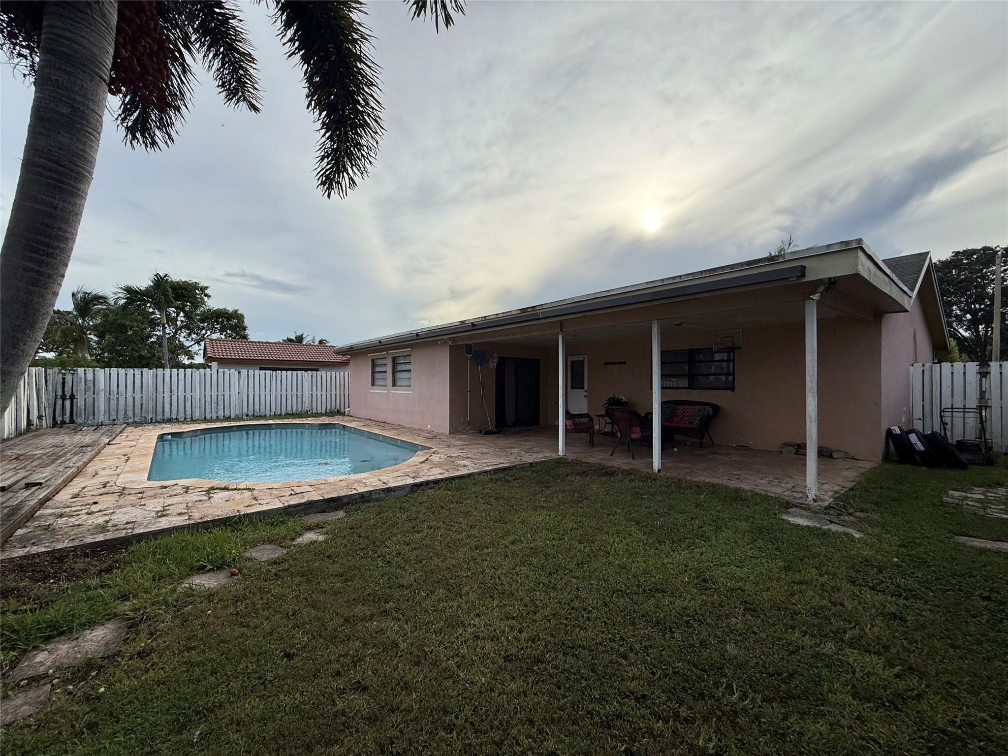 REDUCED TO SELL!! SELLER MOTIVATED!!Look no further! Enoy this 3 Bedroom 2 Bath +Family Room Pool home located in a family-friendly neighborhood in the heart of Sunrise. Enjoy the Florida sunshine swimming in the sparkling pool with friends and family. Kitchen features granite countertop and butcher block, ideal for prepping delicious meals. Excellent location, close to highways, shopping, and restaurants. NO HOA! Bring your boat or RV. Inside Laundry Room. The 1-car garage has been converted to another useable room, such as an office or game room.