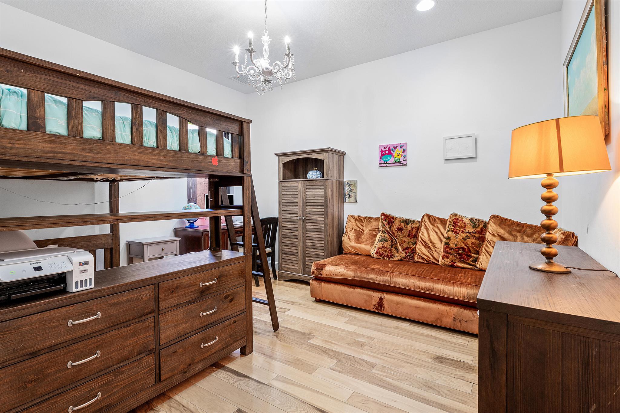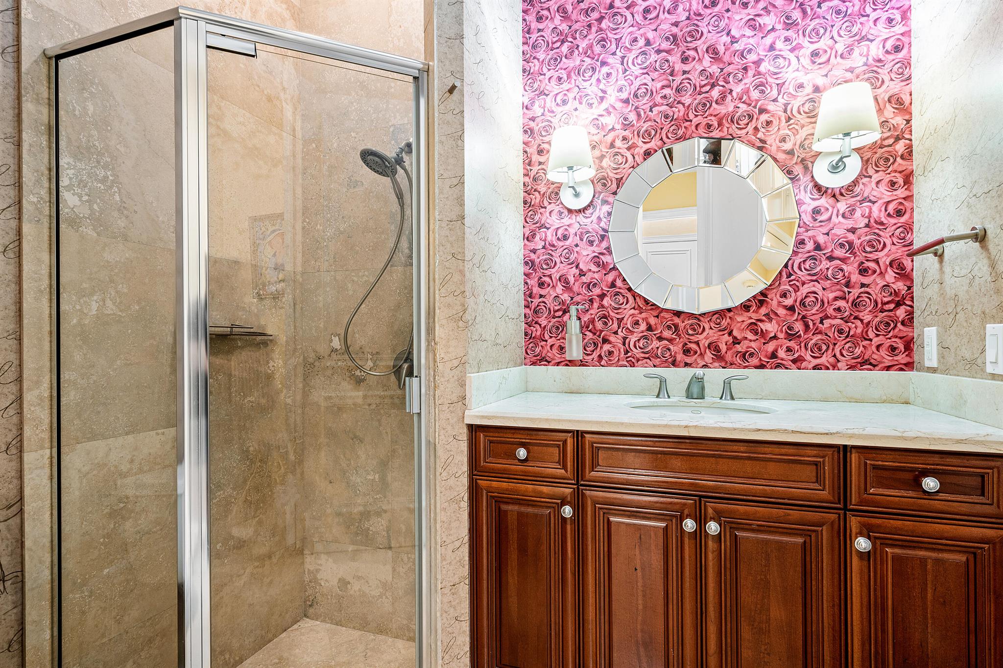 Lowest Price in the Oaks!! Amazing value! charming Martinique is on a prime private lake lot and features 3 en-suite bedrooms plus a library/4th bedroom, 3 full and 1 half baths - all on one single level, w/ a triple-split floor plan including a private guest house. Highlights include marble floors thru-out the main living areas, wood floors in the office, a gourmet chef's kitchen with wood cabinetry, granite countertops, & is open to a spacious family room. Designer appointments include architectural millwork, light fixtures, and artistic details. The primary features dual walk-in closets, and a luxurious primary bath w/ separate vanities including a makeup vanity. With a heated pool surrounded by tropical landscaping, enjoy unmatched privacy and style in this lakefront gem