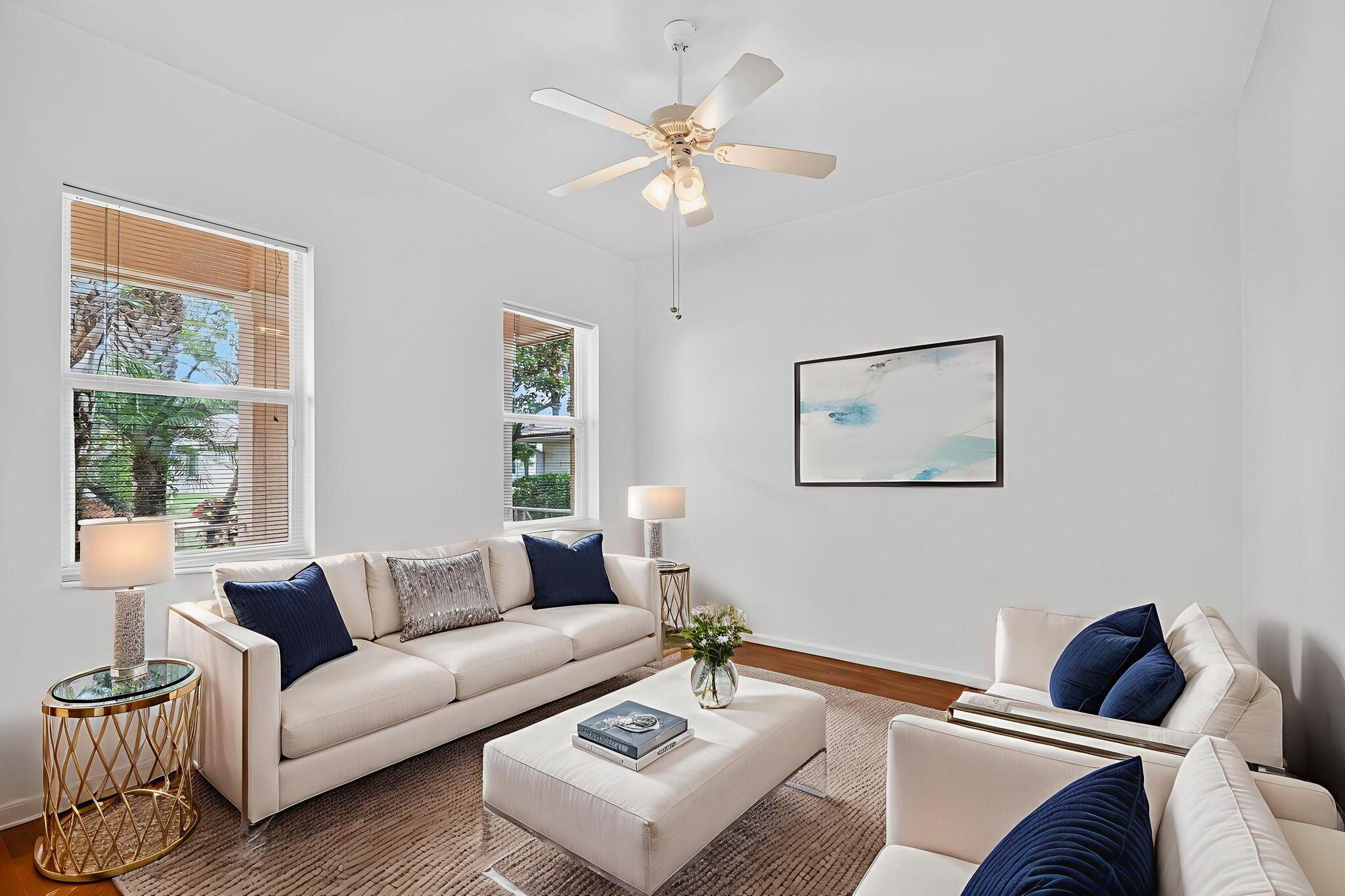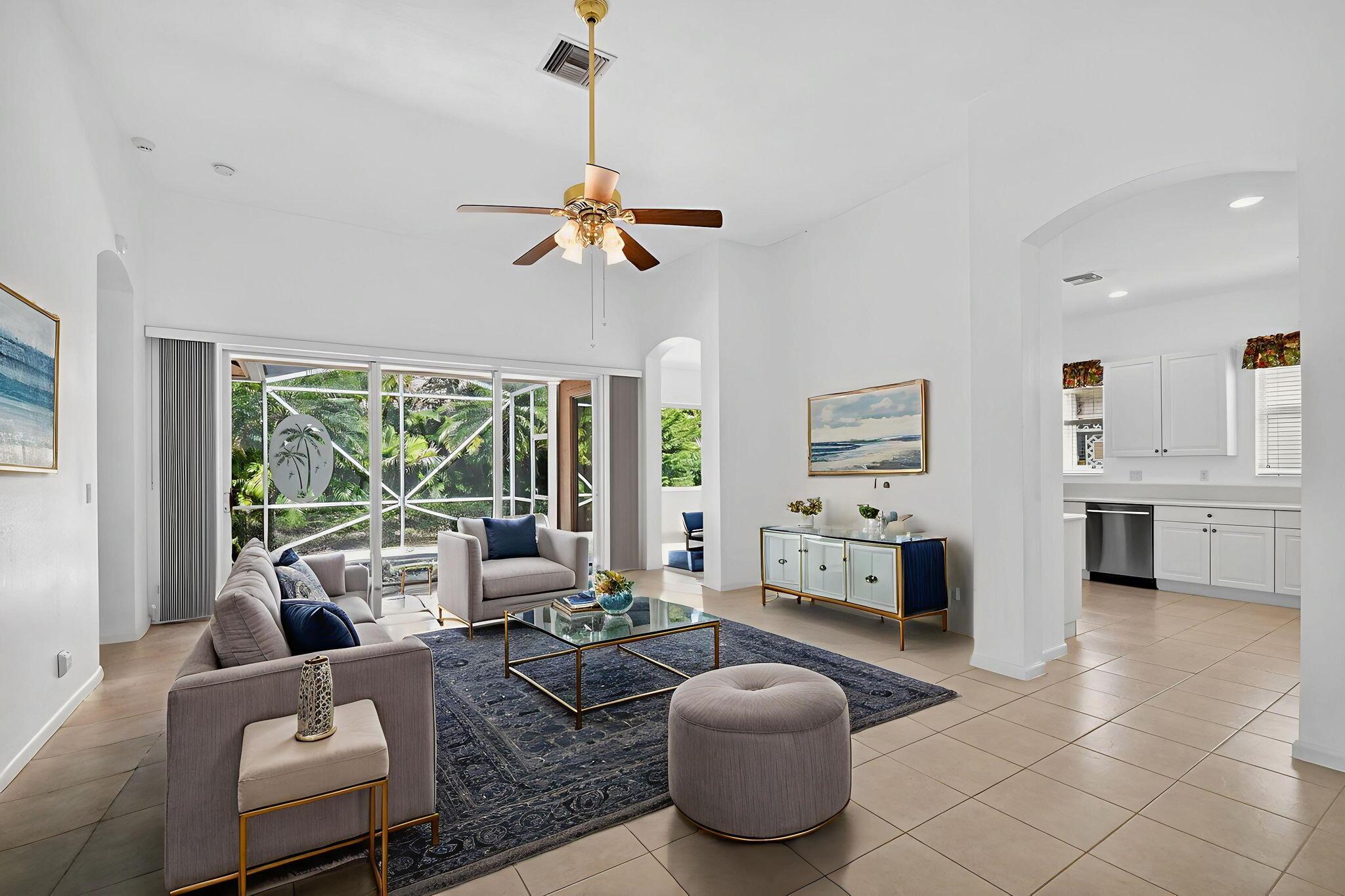 Welcome to this beautifully maintained home in the sought-after 55+ resort-style community of Baywinds! As you approach, you'll be greeted by a charming front porch--perfect for enjoying Florida's stunning sunsets. This spacious and inviting home offers 2 bedrooms, a den (easily convertible to a 3rd bedroom), and an open layout ideal for both relaxation and entertaining.The family room overlooks a lush, tropical backyard and opens to a covered, screened-in lanai--ideal for outdoor living. The kitchen is a chef's dream with ample counter space, newer stainless steel appliances, and a cozy breakfast nook that flows seamlessly into the dining area for easy entertaining.Enjoy the privacy of a split-bedroom floor plan. The expansive primary suite is tucked away in its own wing and features