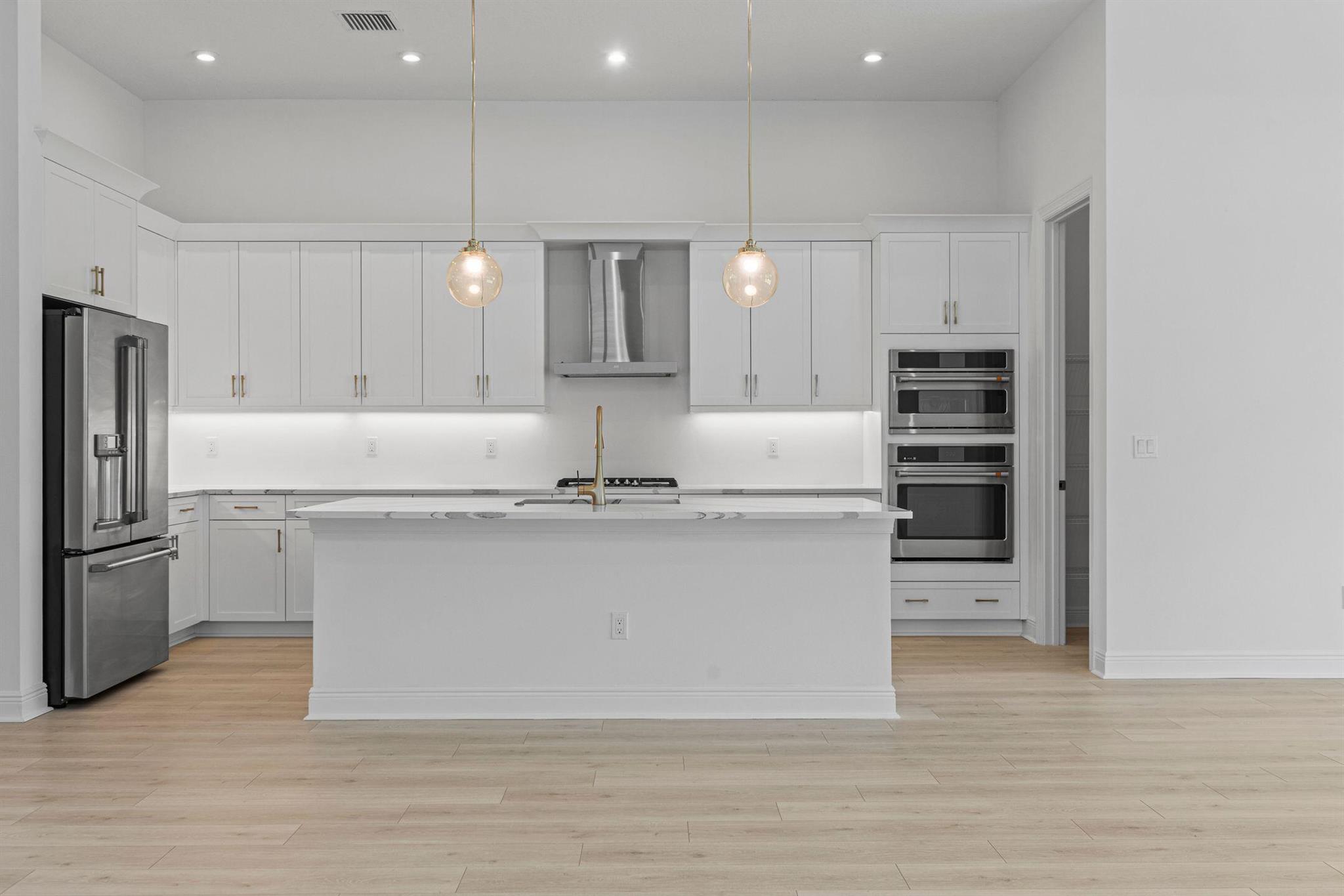 This Coastal Madison home at Mosaic, offers 4 bedrooms, 3 bathrooms with a modern, open concept living on an oversized, south-facing home site, with sun all day long. The gourmet style kitchen features GE Cafe appliances with a gas cooktop, Cambria quartz countertops, under-cabinet LED lighting, and elegant pendant lighting over the island bar. Enjoy Mohawk laminate flooring throughout, high end tile bathrooms, a privacy wall with plumbing for a future summer kitchen, and a laundry room with cabinetry and counters. Located within the gated Mosaic community, residents enjoy resort-style pool, fitness center, and pickleball.
