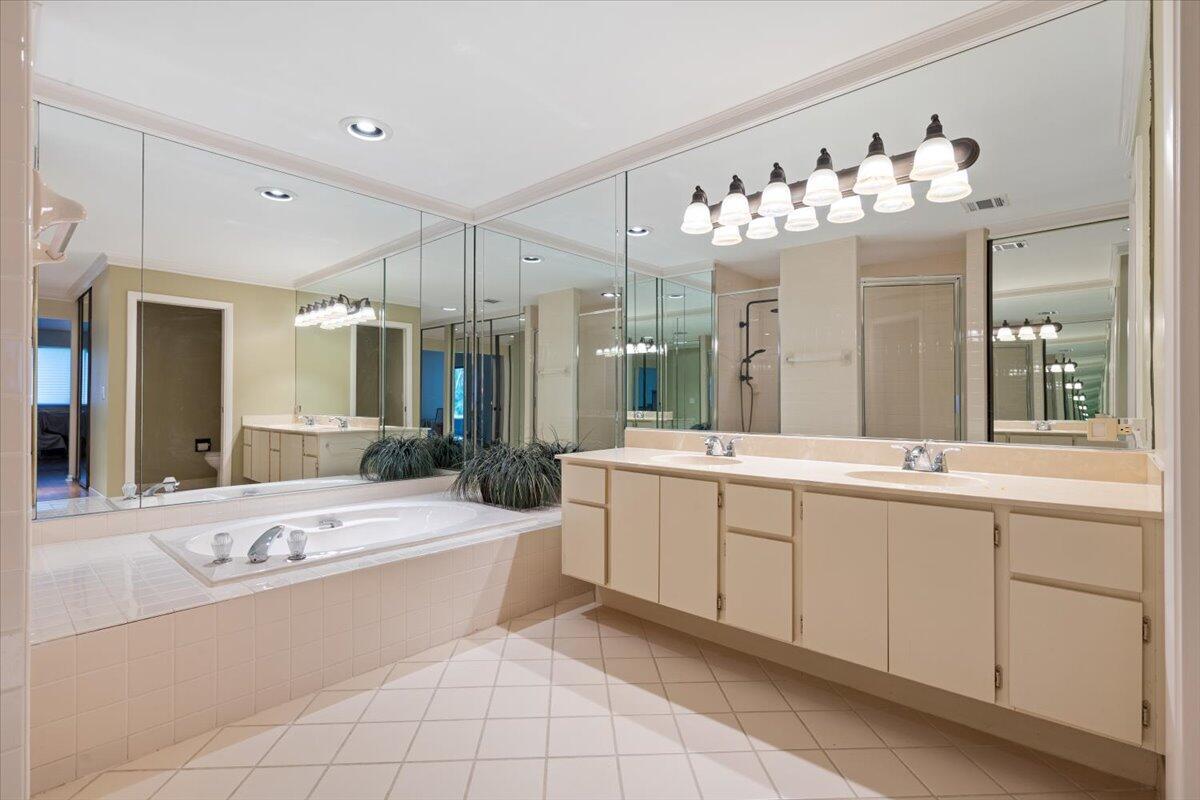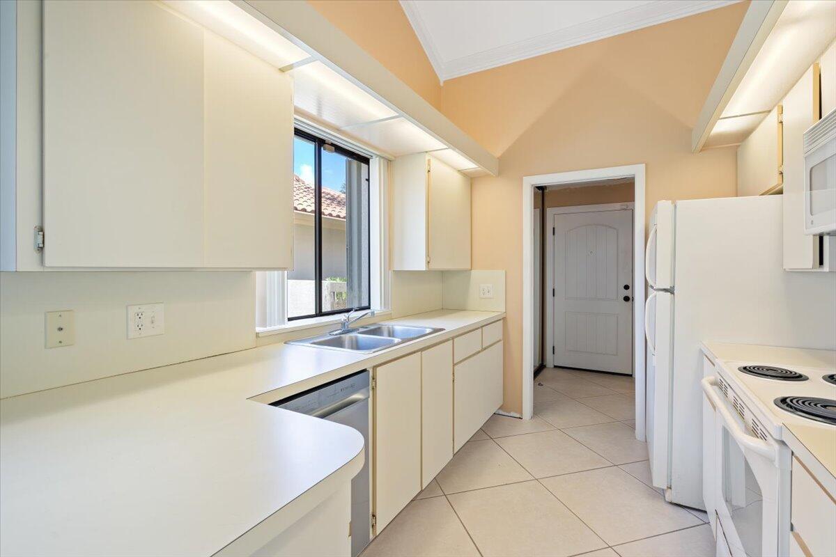 Step into comfort and convenience in this solid 3BD/2BA home in the Villages of West Palm Beach. Features include high ceilings, crown molding, solid wood doors, and accordion shutters throughout. Spacious rooms, large closets, and tons of storage offer plenty of space to live and grow. The primary suite boasts fresh paint, a sunken tub, double sinks, large closets, and separate shower. Enjoy a private backyard, covered/screened patio, and a renovated laundry room with new washer. Kitchen has a new dishwasher. 2013 roof, 2017 A/C & 2013 water heater. Gated community with pool, tennis, basketball & more--close to downtown, I-95, dining, and Palm beach outlets!