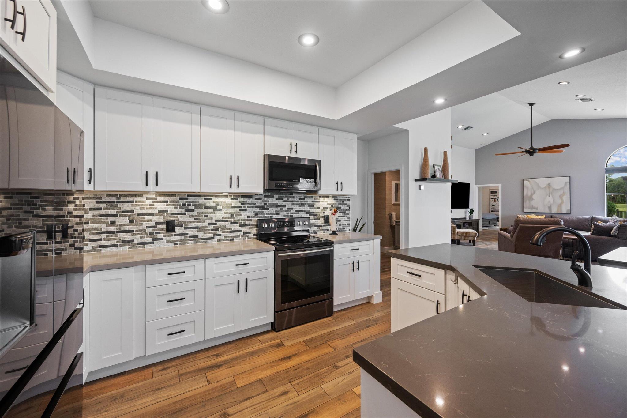Looking for the BEST location in Breakers West with easy maintenance and the ability to ''lock and leave''? Then this home in Fairway Villas in Breakers West is for you! Renovated 2 BED, 2.5 BATH and 2 CAR GARAGE single family home is ideal for someone looking for convenience and the security of guard gated golf community but NO mandatory club memberships. With gorgeous porcelain tile floors throughout, the open kitchen with Shaker-style cabinets, quartz countertops and Samsung appliances compliment the warm tones of the floors. 3 fully renovated baths feature new tile, new plumbing fixtures, new lighting and shower enclosures. Spacious ceiling height along with 8 ft sliding doors provide for plenty of natural light. With both a roofed patio and open patio, there are several areas for