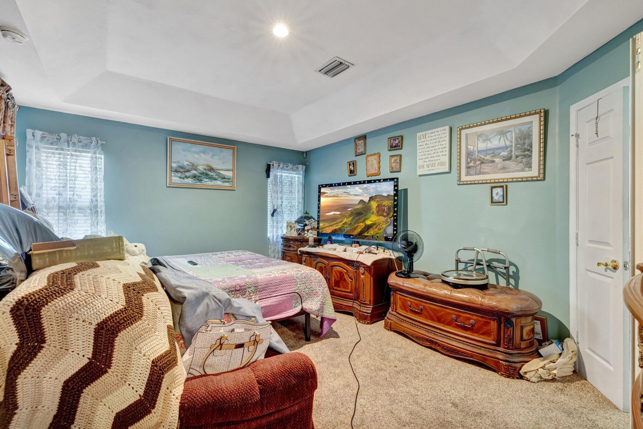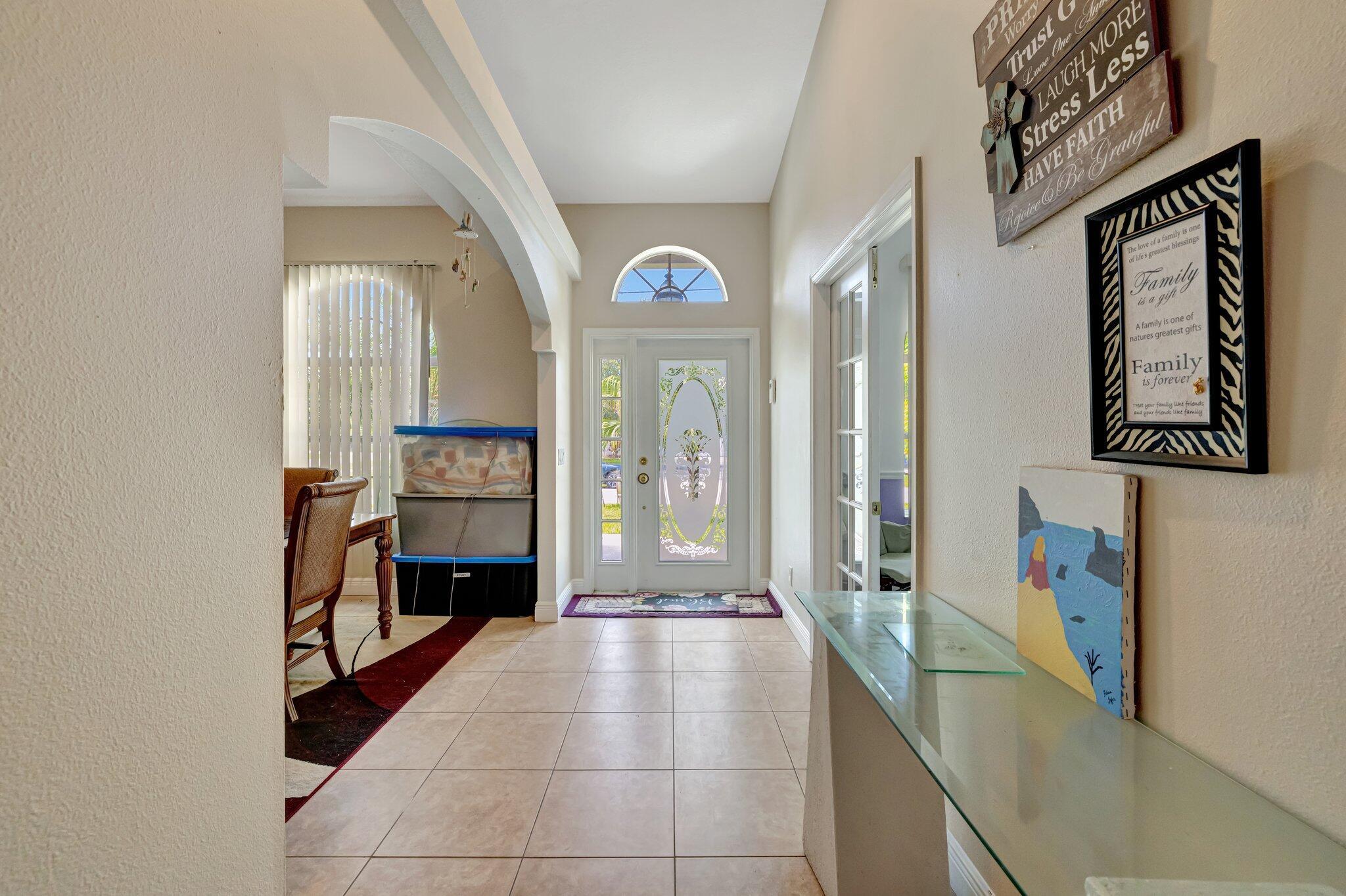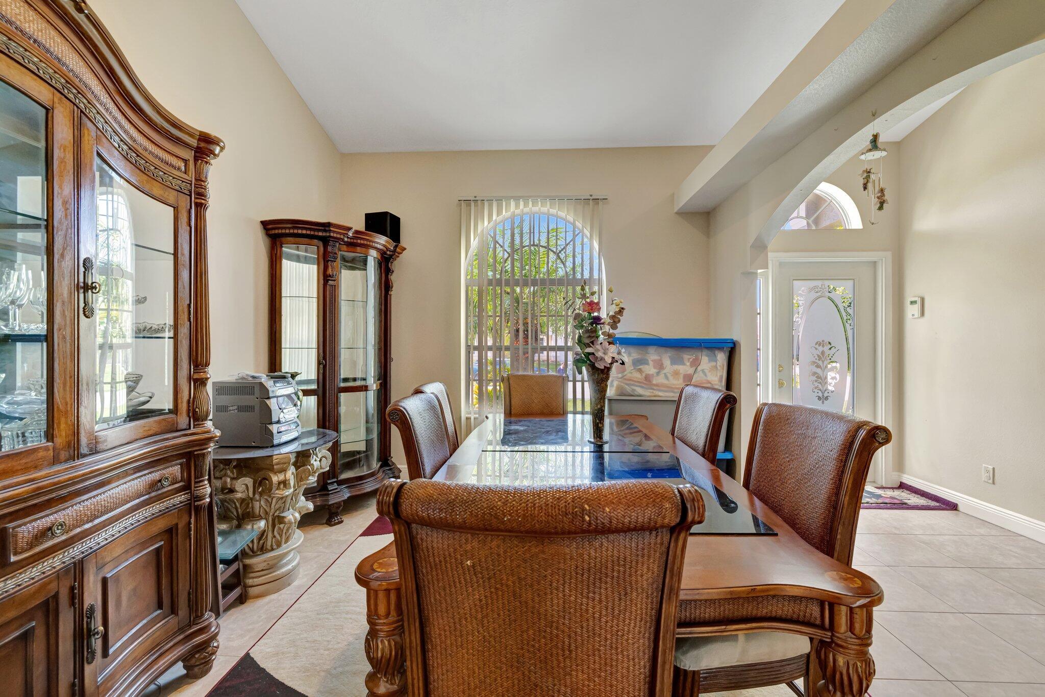 Take a look at this lovely Pool Home 4 bedroom 3 bath 2 car garage with a den home located in the Treasure Coast community. New roof, newer AC and water heater, The primary suite features high ceiling, sliding doors leading to enclosed patio which can be used as an office., walk-in closets. Primary bathroom includes a large wall in shower, new soaking jacuzzi tub, and dual vanity sinks. Large bedroom in the back which gives you privacy with a pocket door enclosure including bathroom. This home also offers a formal dining area, The kitchen included stainless steel appliances, new cabinets, granite counter tops, separate laundry room, shed in yard for storage
