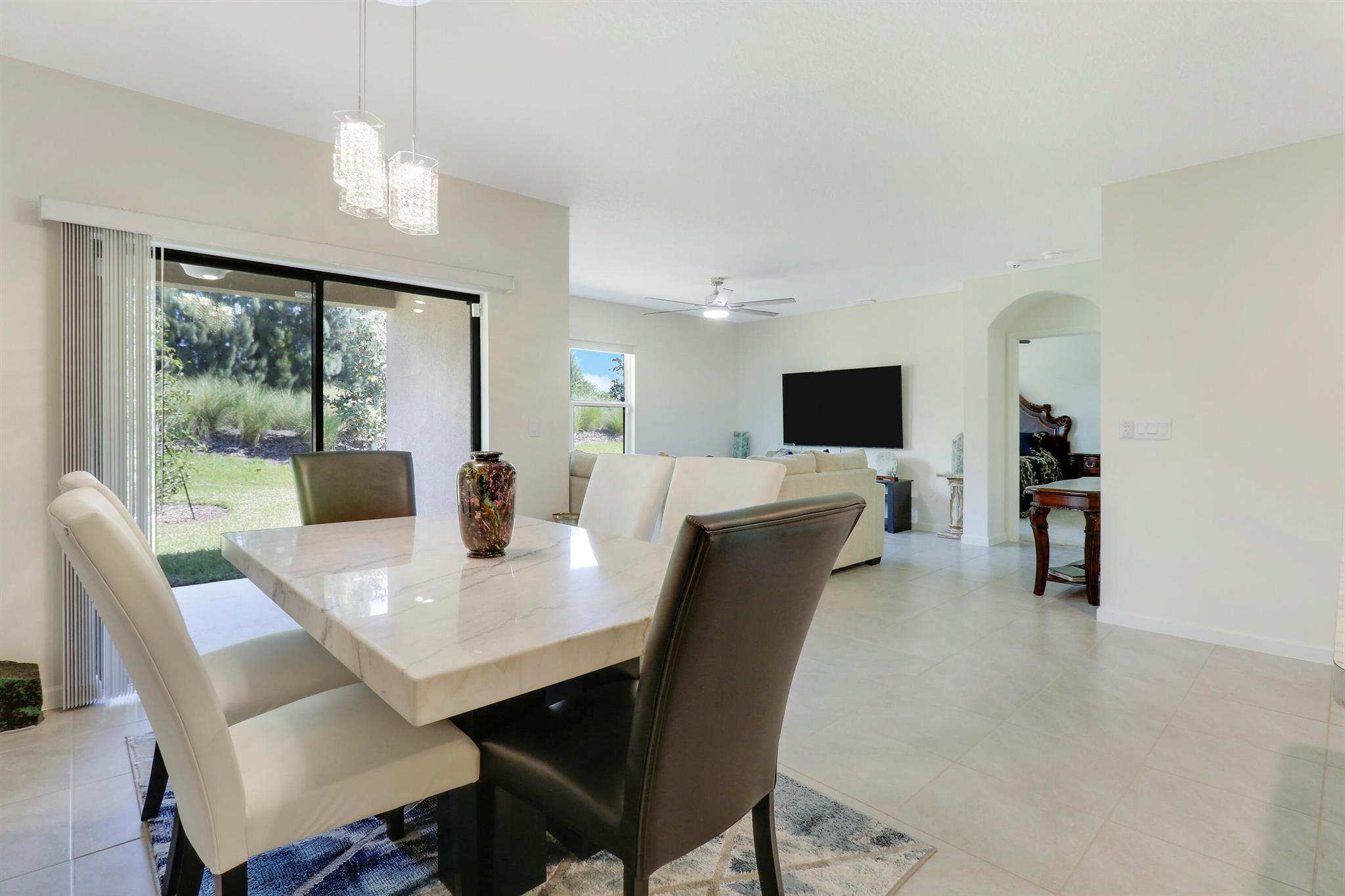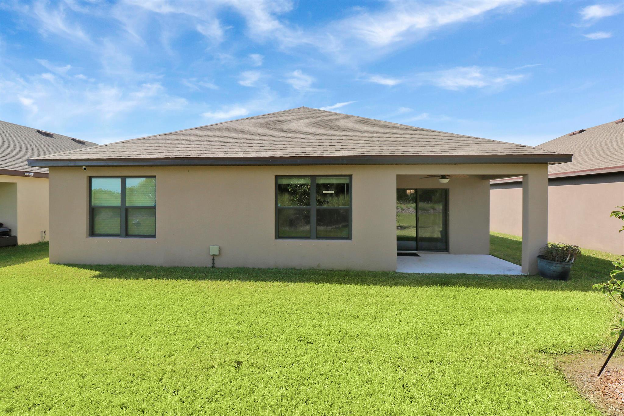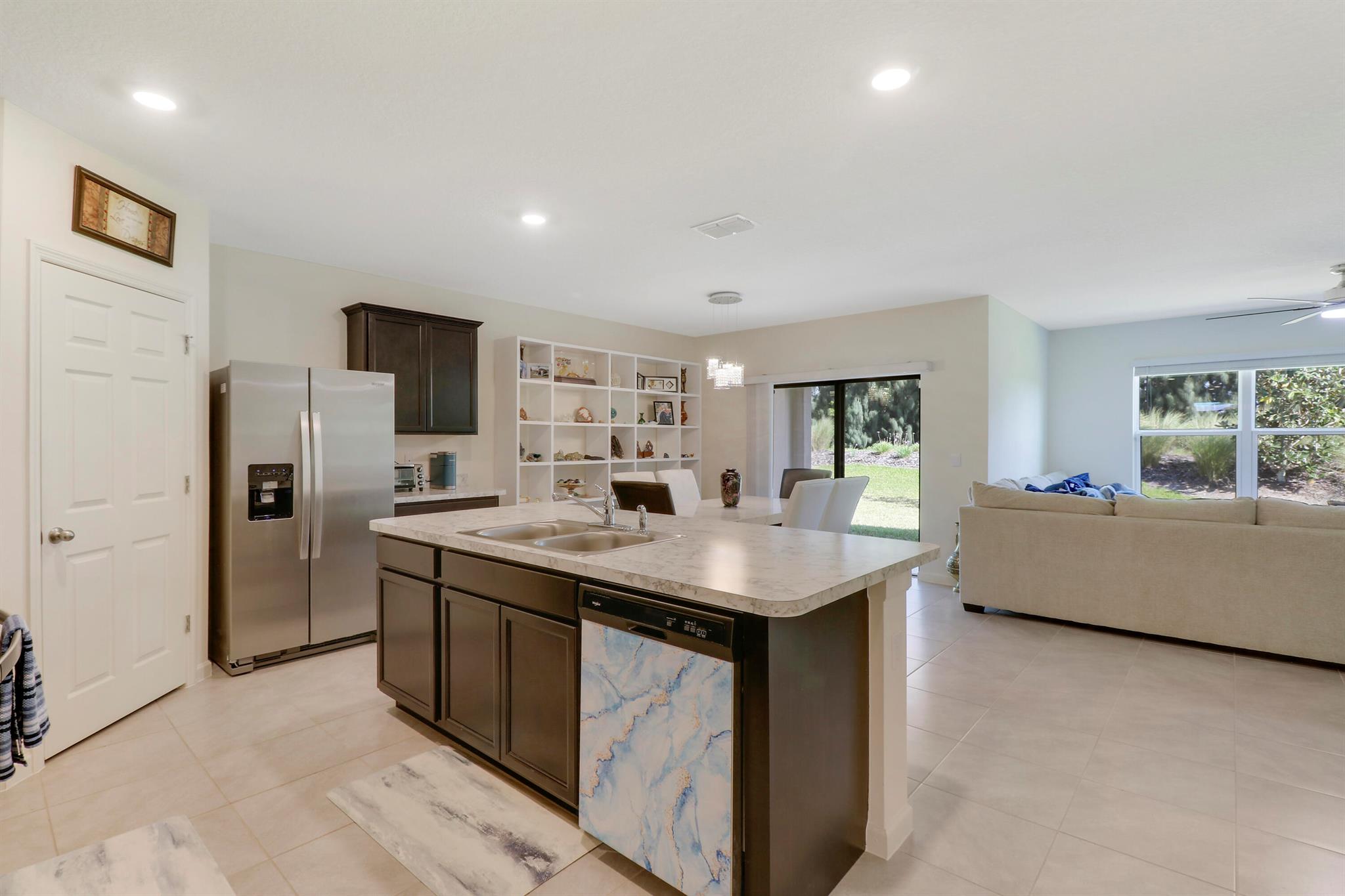 Spacious, immaculate 4 bedroom 2 bath home situated on a beautiful private lot with no homes behind it just off I-95 and the Florida Turnpike, and JUST a hair north of Port St Lucie in the new community of Celebration Pointe...a commuters dream! This like-new home was built in 2022 by DR Horton and has been meticulously maintained. It includes a structural warranty that is transferrable to the new owners as well as a termite treatment warranty that is transferrable to the new owners.. The open floor plan makes this home ideal for entertaining by day, and the split bedroom design offers separation and privacy by night. Additional features and upgrades include stainless steel appliances, a large kitchen island and pantry, large tile in the main living areas, a generously sized owners