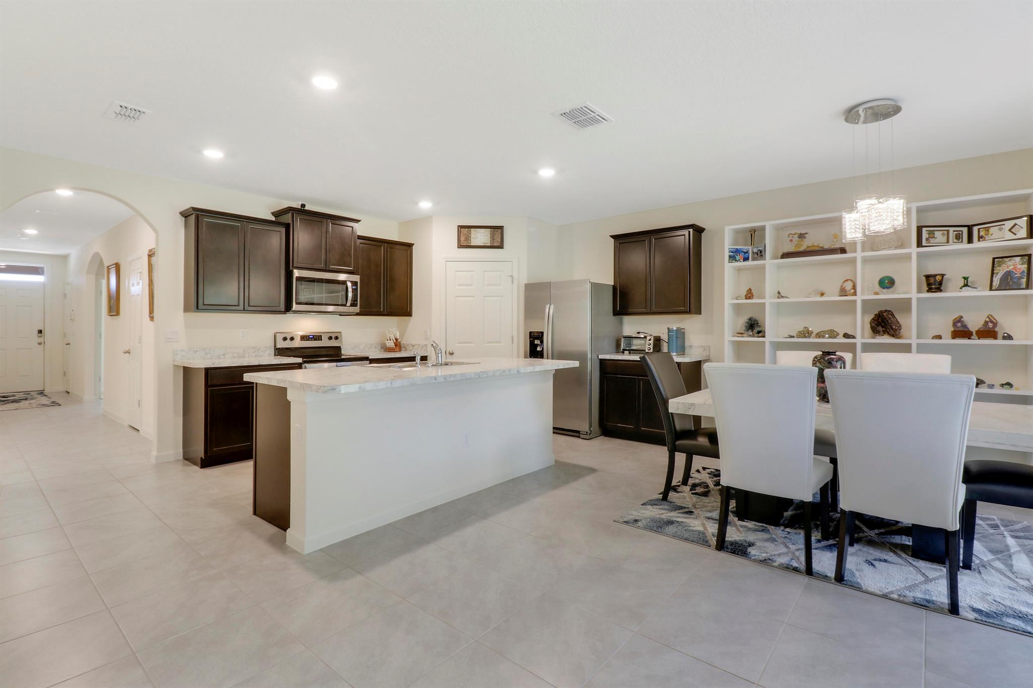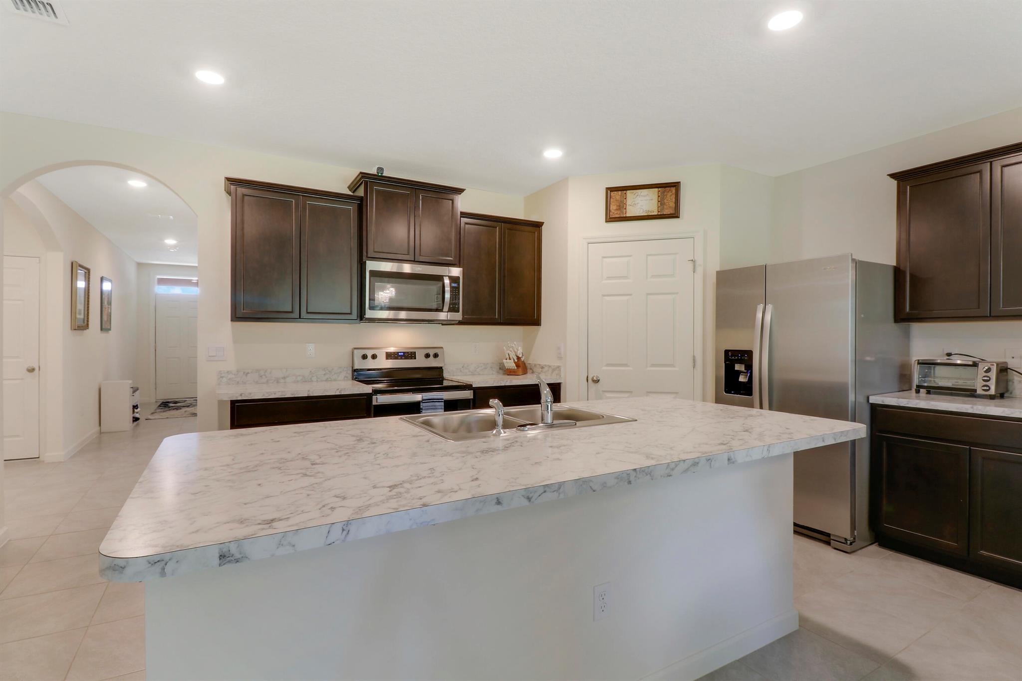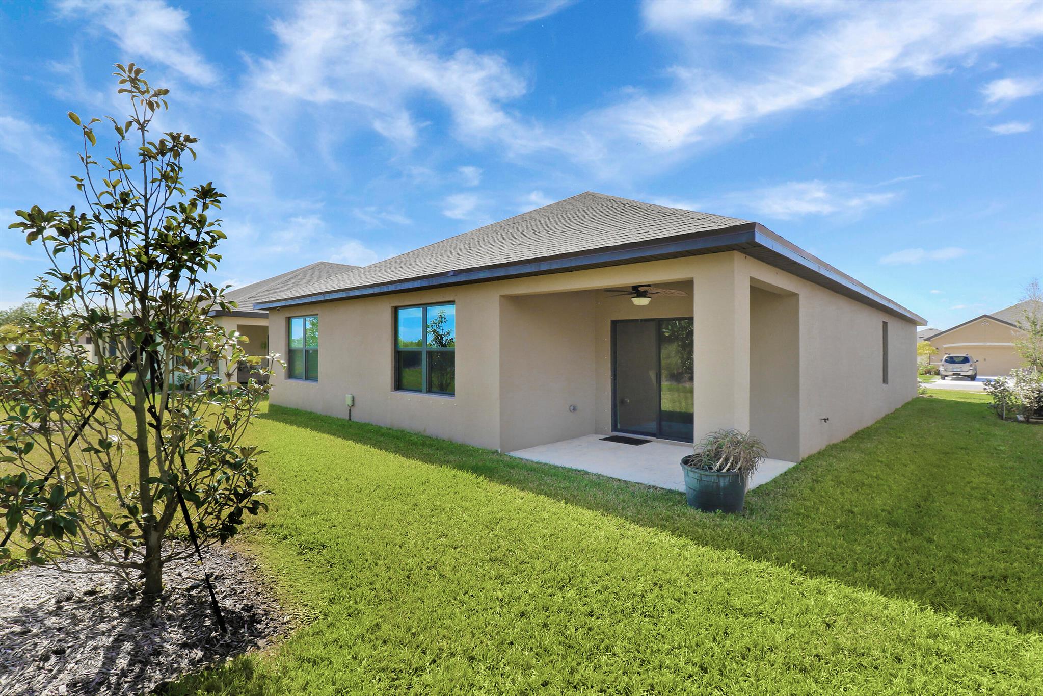 Spacious, immaculate 4 bedroom 2 bath home situated on a beautiful private lot with no homes behind it just off I-95 and the Florida Turnpike, and JUST a hair north of Port St Lucie in the new community of Celebration Pointe...a commuters dream! This like-new home was built in 2022 by DR Horton and has been meticulously maintained. It includes a structural warranty that is transferrable to the new owners as well as a termite treatment warranty that is transferrable to the new owners.. The open floor plan makes this home ideal for entertaining by day, and the split bedroom design offers separation and privacy by night. Additional features and upgrades include stainless steel appliances, a large kitchen island and pantry, large tile in the main living areas, a generously sized owners