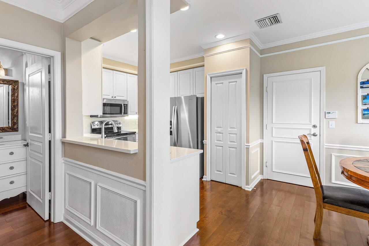 One of the Best Locations within the Community, Stylishly Updated 3 bedroom Corner Townhome w/ Southern Exposure, located just minutes from Town Center Mall, Dining, and Walking Distance to the Boca Raton Swim and Racquet Community Center. Features a Spacious 2-Car Garage with EV Charger, a Renovated Kitchen w/ Quartz Countertops, Engineered Wood Flooring throughout. The Primary Bedroom offers Vaulted Ceilings, and the Spa Inspired Bath includes a Double Vanity with Soaking Tub. Renovated Guest Bath & Powder Room, Enjoy the Covered Screened Patio with No Rear Neighbors Desirable Southern Exposure, Perfect for Entertaining. Situated in a Quiet, Gated Community and Zoned for Top-Rated Boca Raton Schools. This Townhouse Offers the Ideal blend of Style, Function, and Unbeatable Location