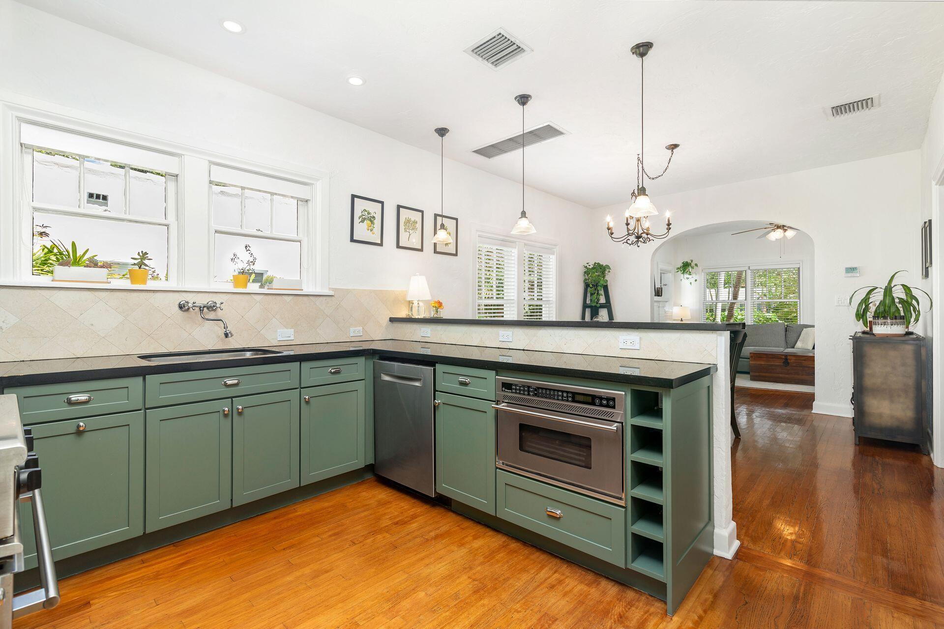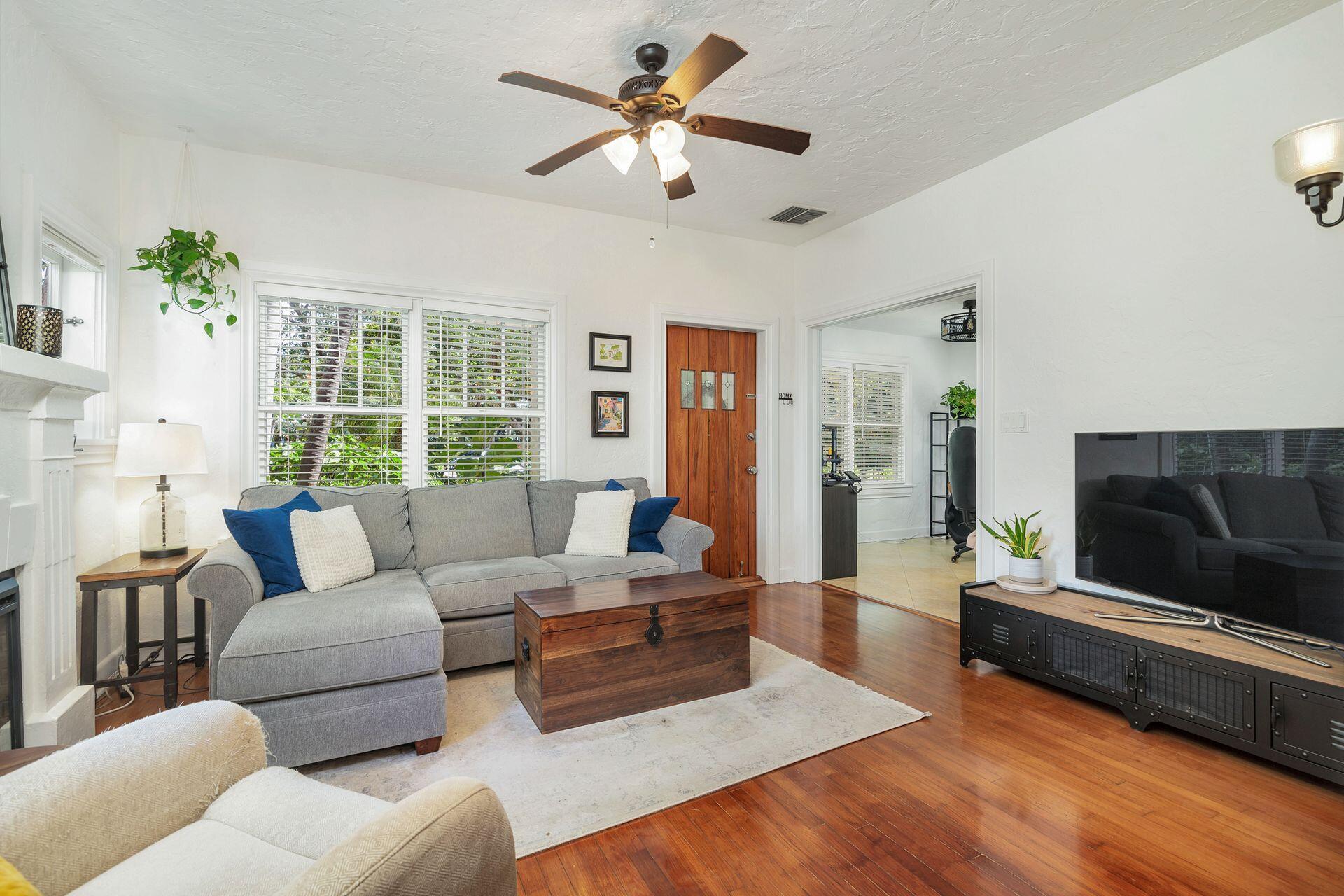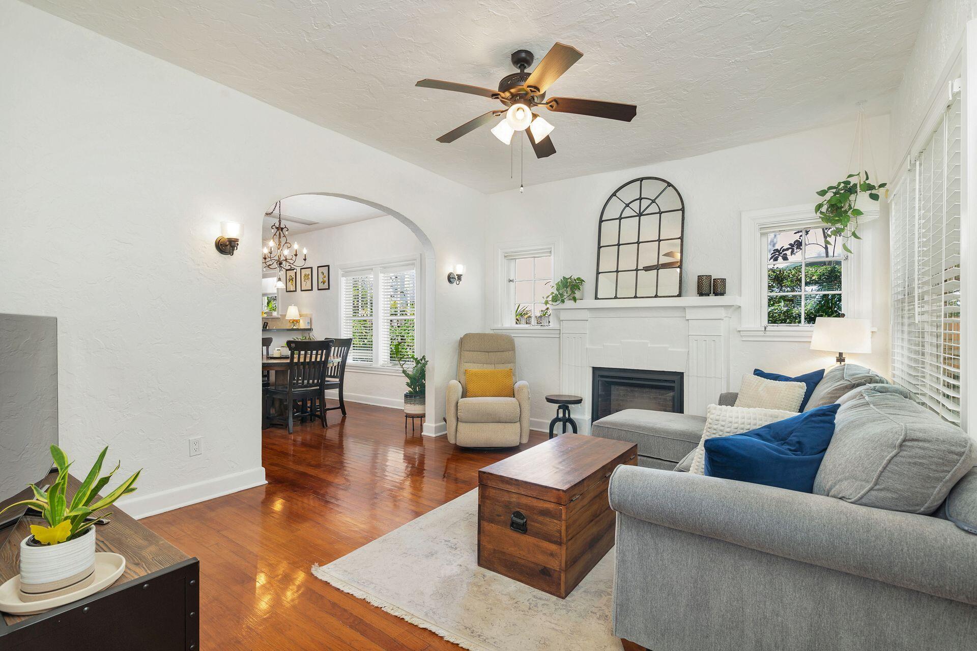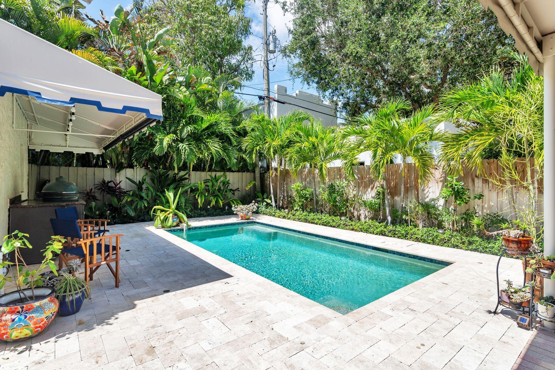 Located in the heart of Historic Flamingo Park on a beautiful tree canopied street. Spanish Mission style 2BR/1BTH pool home. Beautiful original details & stunning upgrades make this a perfect South Florida retreat. Surrounded by swaying palm trees, butterfly garden & mature landscaping. Covered front porch accented with barrel tiles and a cypress door. Bright living room with original fireplace mantle & hardwood floors flowing throughout. Formal dining room opens to incredible kitchen featuring breakfast counter, granite countertops, gas range, stainless steel appliances, gorgeous cabinetry & lots of windows. Split bedrooms with 1920's style bathroom. Sunroom perfect for an office. Tropical pool area with fountains, BBQ grill, outdoor shower, plus 2 car garage currently used as a gym.