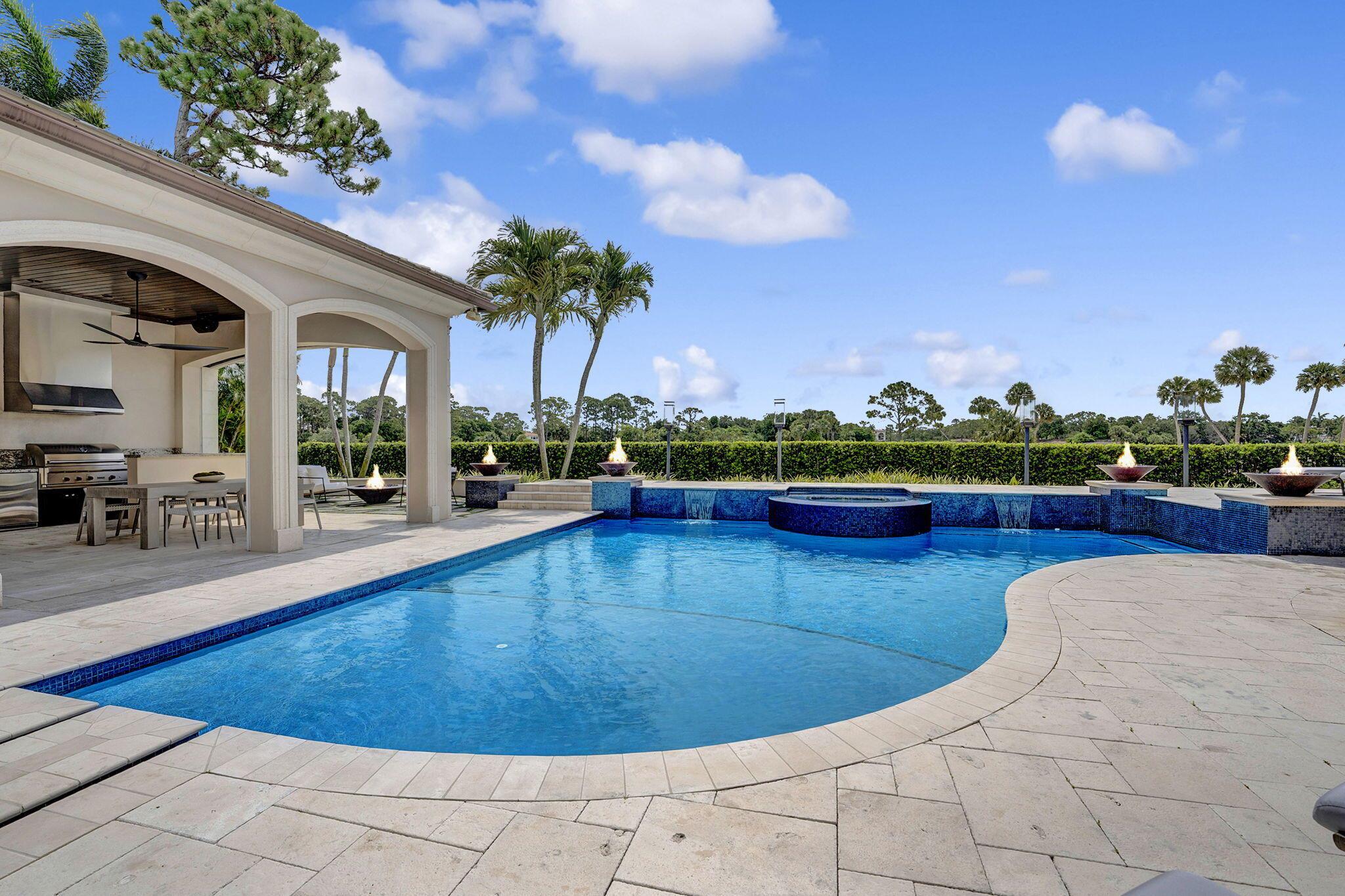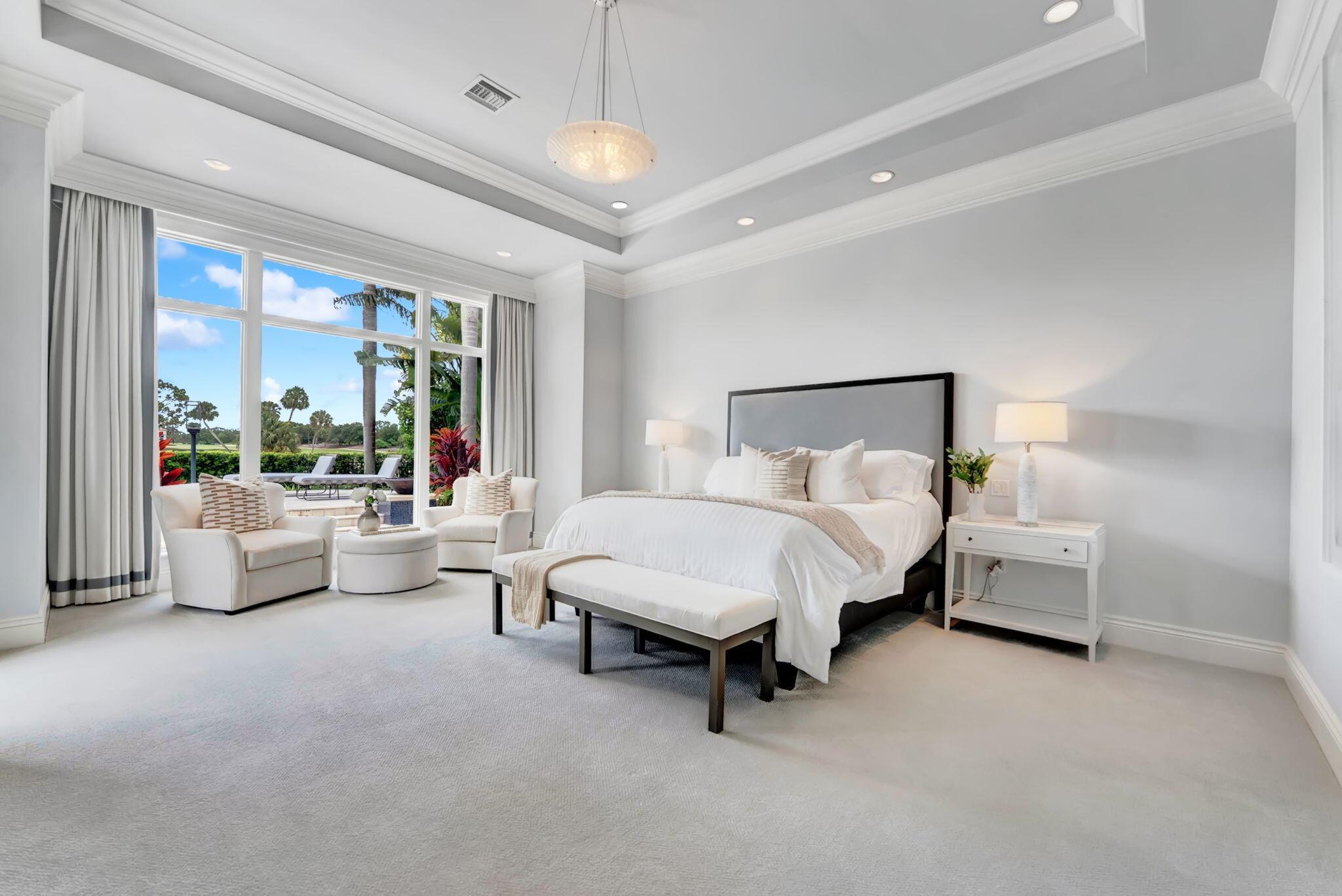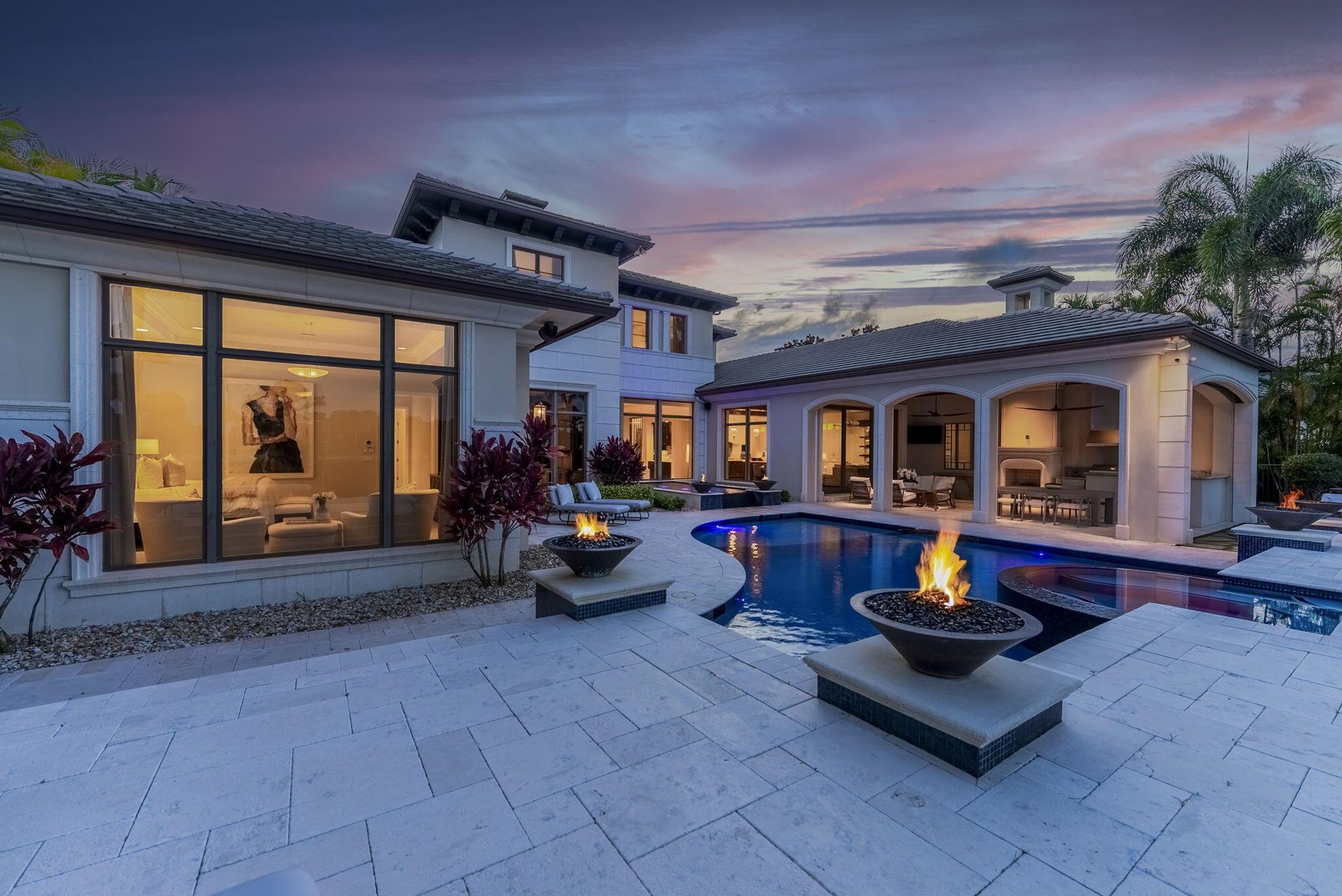 Welcome to a rare offering in Old Palm Golf Club. This exquisite custom residence blends timeless architecture with modern elegance & a rarely available unobstructed golf view with total privacy. This magnificent residence is equipped with a gourmet chef's kitchen, custom walnut cabinetry & double islands, formal dining room, wine room, office, club room/gym, elevator, primary suite with spa inspired his/her bathrooms, & large walk in closets. Plenty of storage in the climate controlled 4.5 car garage with lifts. Second floor spacious en-suite bedrooms with walk in closets. Resort-style outdoor living area with covered patio & phantom screens, salt water pool, & summer kitchen. Enjoy luxury living & a lifestyle defined by sophistication & privacy. This is golf course living, re-imagined.