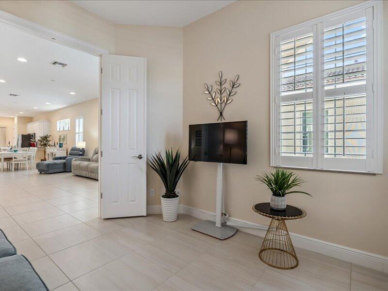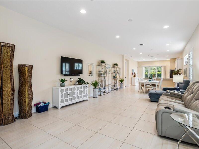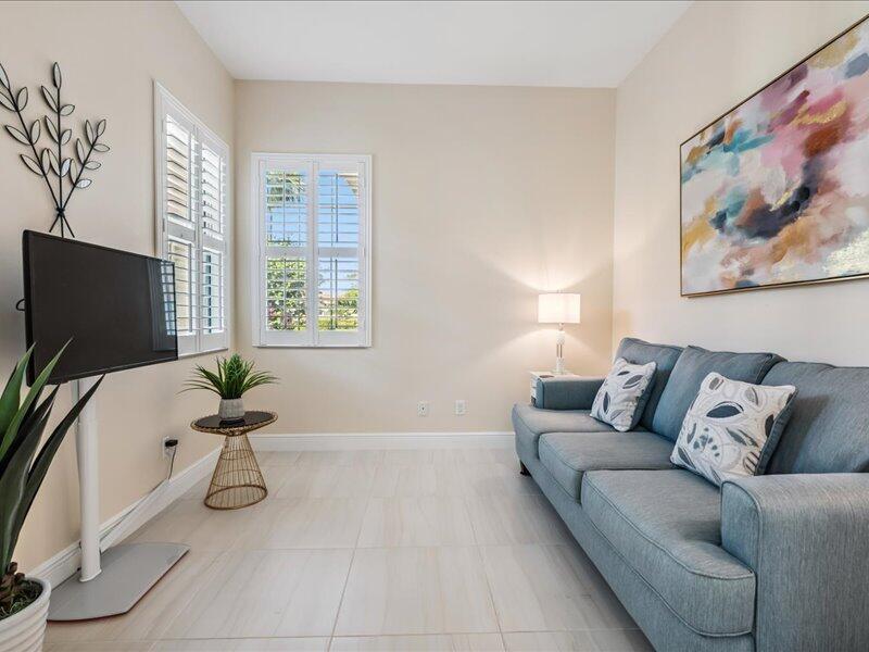 Beautifully maintained 2BR + den, 2BA home located in the gated community of PGA Verano. This open floor plan features tile flooring throughout main living areas, high ceilings and abundant natural light. The kitchen offers quartz countertops, stainless steel appliances, and a large island - perfect for entertaining. Spacious primary suite includes walk in closet, dual vanities, and a walk-in shower. Enjoy outdoor living on the extended screen lanai with a private backyard view. Additional features include impact glass, 2 car garage and energy efficient construction. Resort-style amenities include clubhouse, indoor/outdoor pools, fitness center, tennis, pickleball and a full social calendar. Convenient to I-95, shopping, dining and golf.