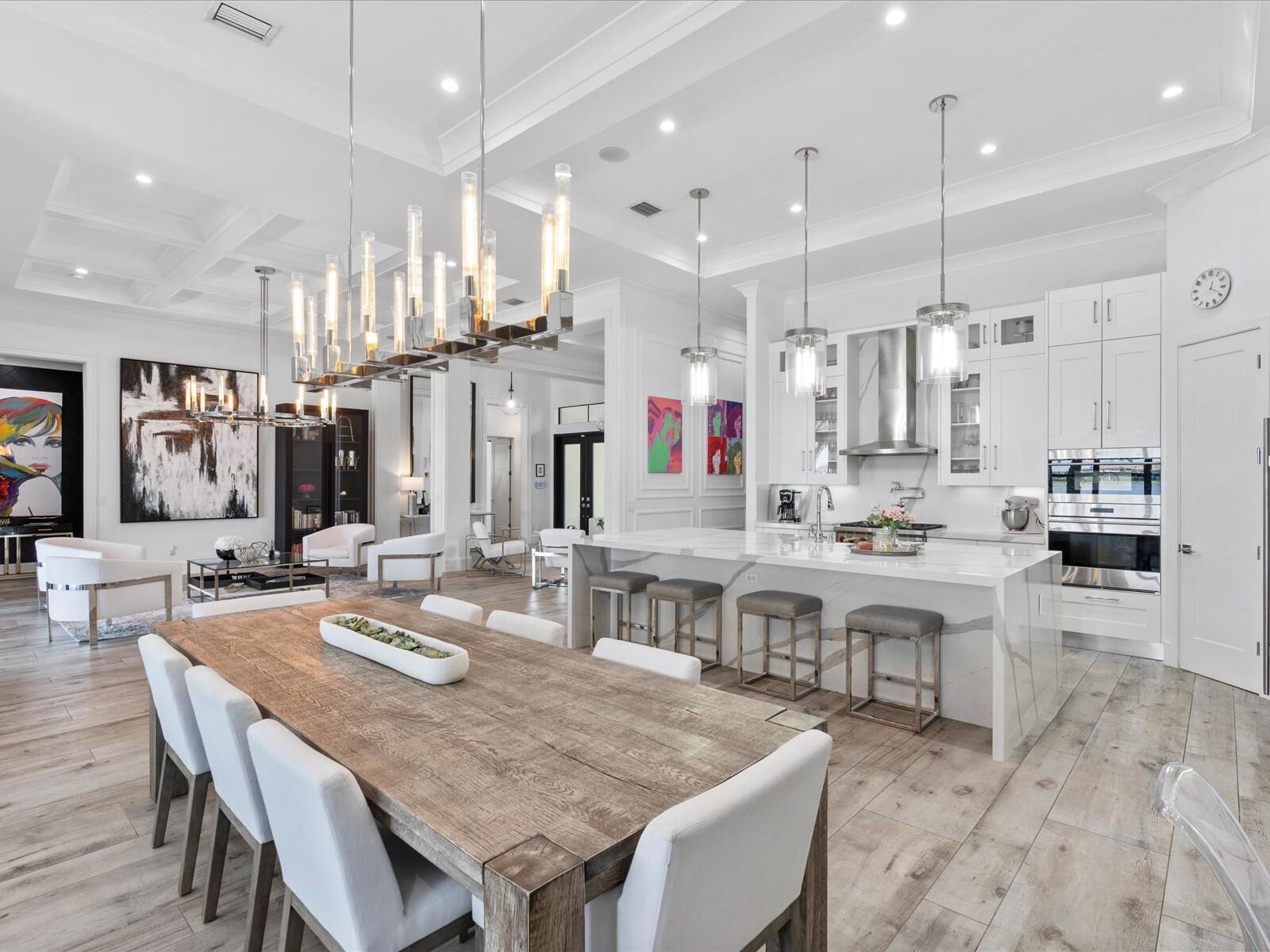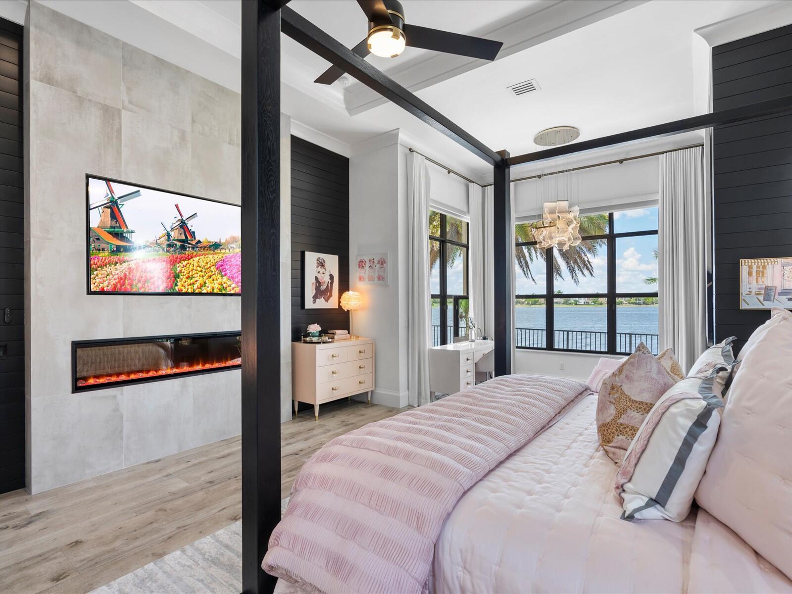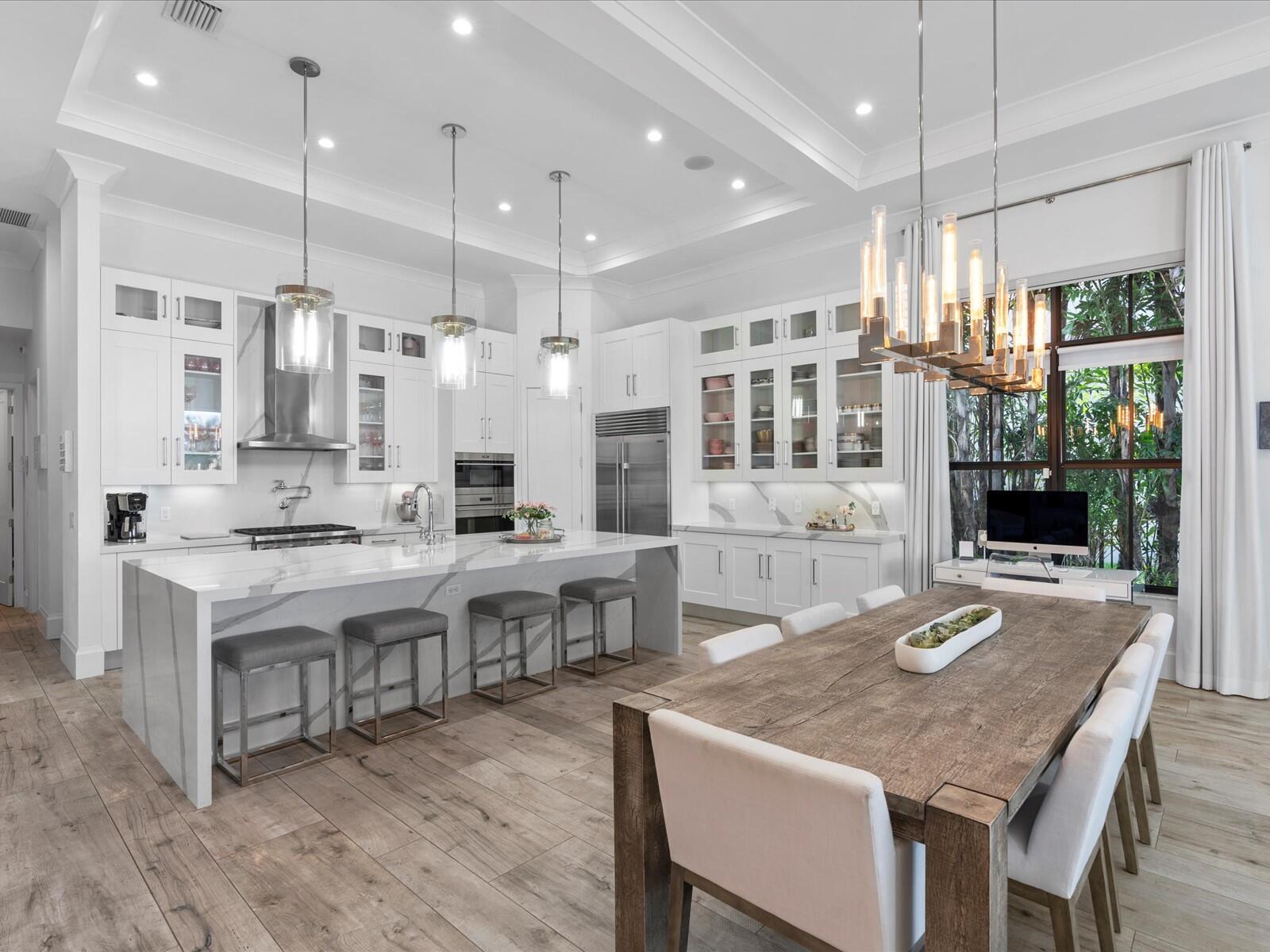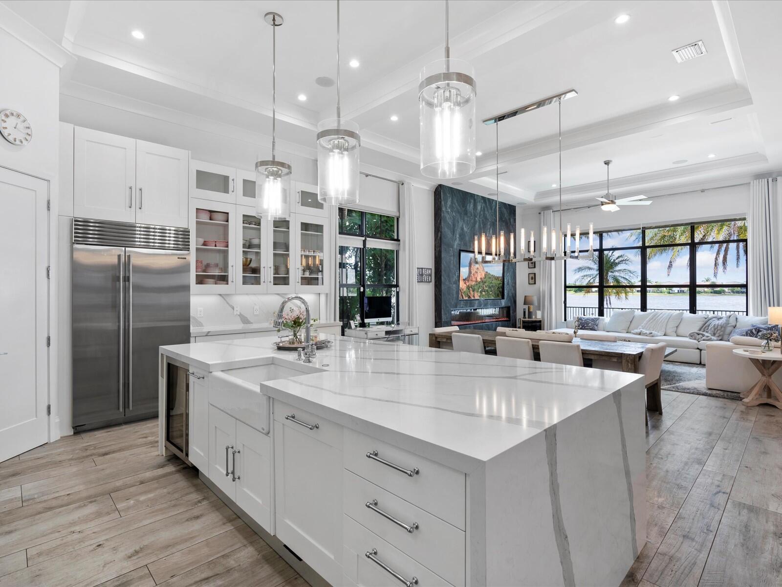 A rare opportunity to own a designer-upgraded 5-bedroom, 4.5-bath estate with breathtaking wide lake views of the 240-acre Lake Majesty, located in the prestigious gated community of MiraLago. This beautifully appointed single-story residence blends timeless elegance with modern luxury, showcasing meticulous craftsmanship and thoughtful enhancements throughout.Step inside to discover crown molding, custom electric blinds, and designer drapery. The family room and primary suite each feature elegant fireplaces that add warmth and sophistication.The heart of the home is a chef's kitchen outfitted with premium Sub-Zero & Wolf appliances and anchored by a large waterfall island, ideal for entertaining or casual dining. Throughout the home, Restoration Hardware lighting and fixtures