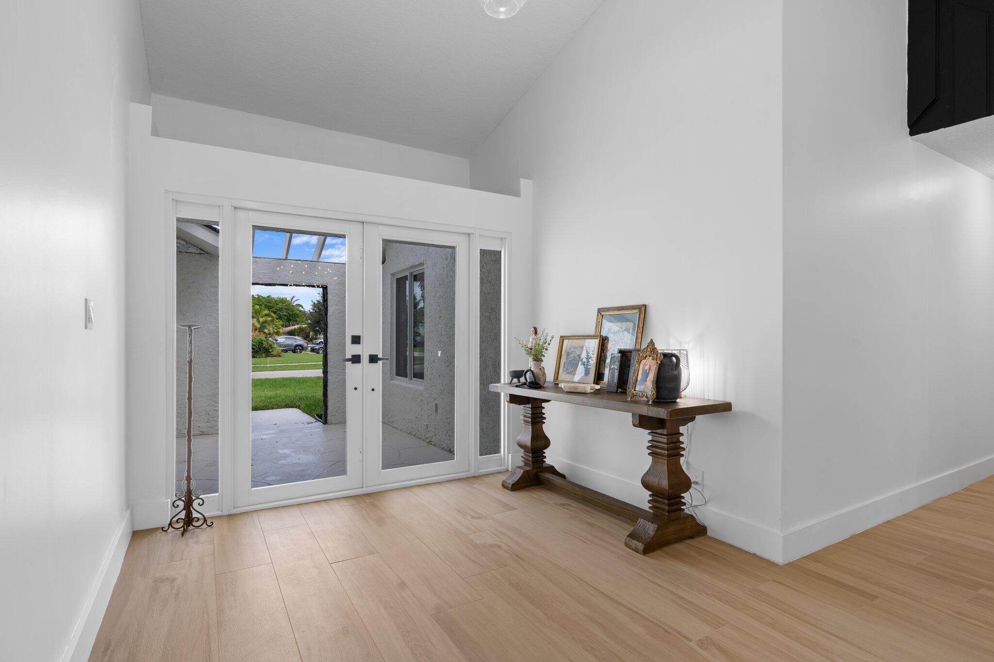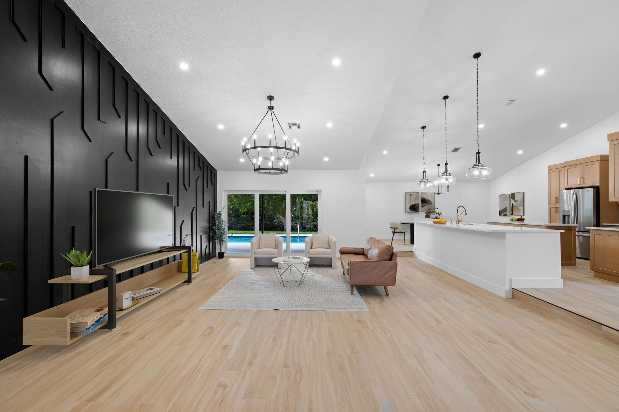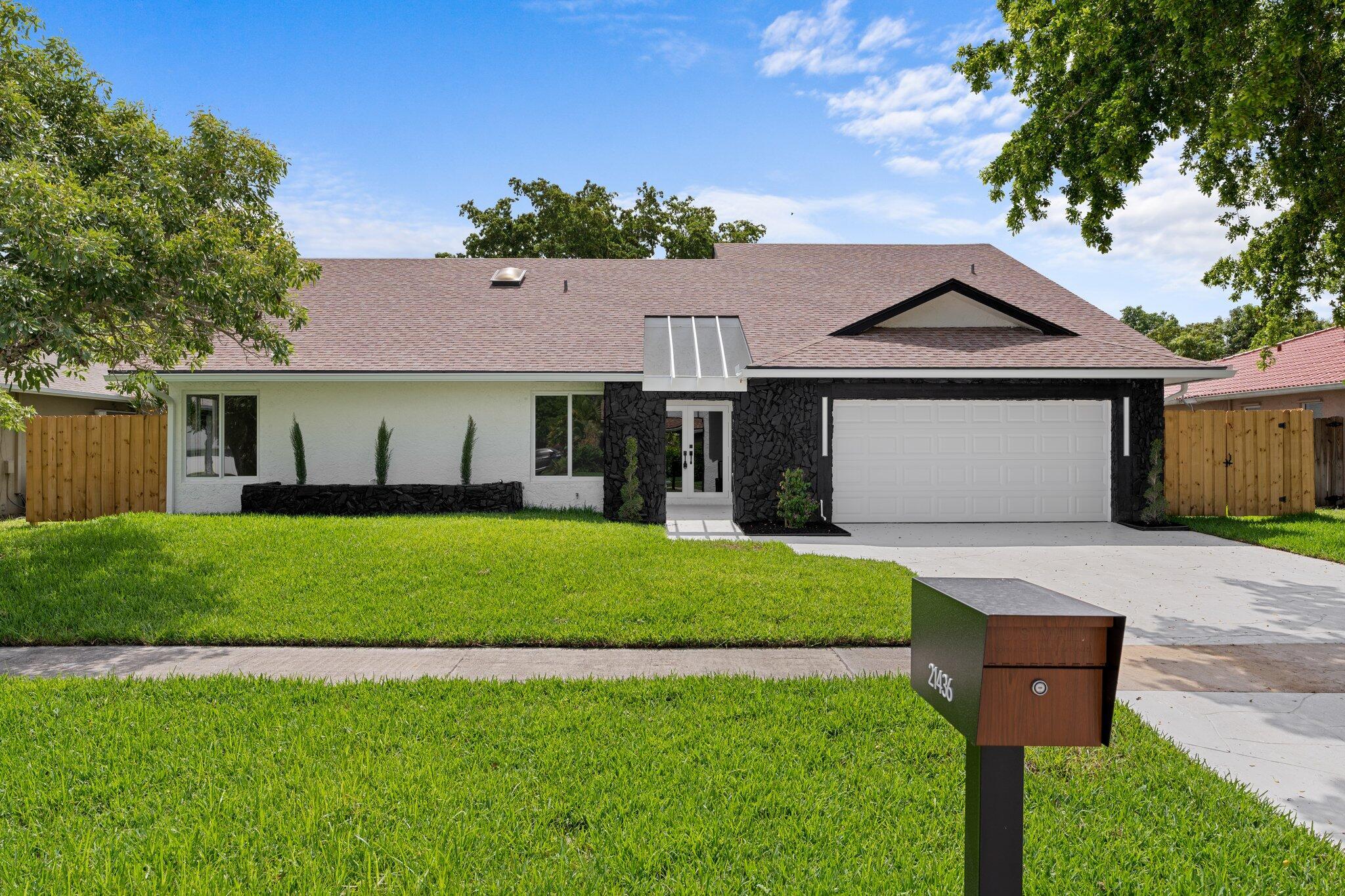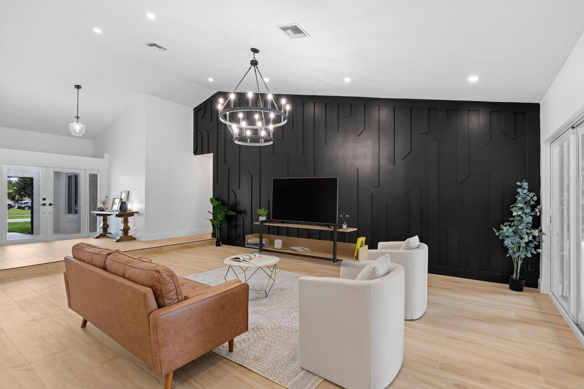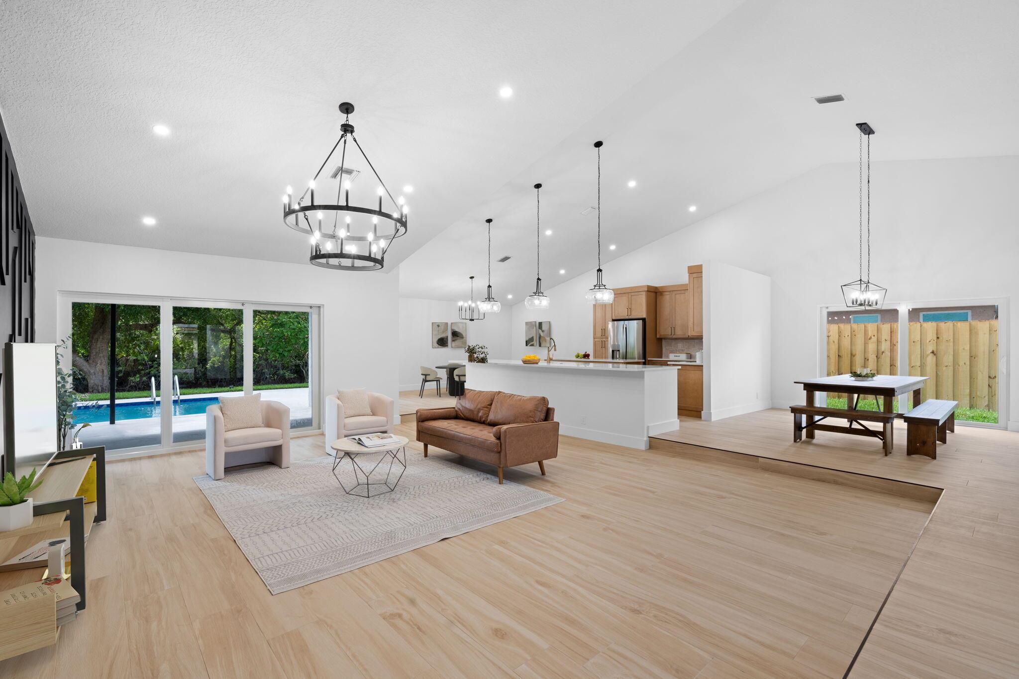 Step into elevated living with this stunning designer home in the sought-after Loggers Run community of West Boca Raton. This beautifully remodeled residence features vaulted ceilings, wide plank porcelain tile, a custom pine accent wall, and an abundance of natural light that creates a warm and inviting atmosphere.Enjoy peace of mind with FULL impact windows and sliders, a newer roof (2018), brand-new AC (2025), new water heater (2025), and a resurfaced pool (2025)--perfect for relaxing or entertaining. The show-stopping kitchen boasts custom cabinetry, quartz countertops, an Italian stone backsplash, and solid wood doors throughout the home.Both bathrooms have been fully renovated with elegant, designer finishes.